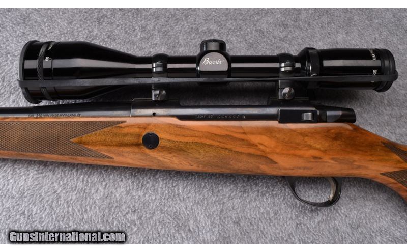 Description: This Sako AV was manufactured in Finland in 1979 / 1980. Wood shows light use and handling marks but remains solid and in very good condition. Metal shows some light blue loss and wear on high places. Bore is excellent! Complete with Burris 4.5-14x Fullfield scope and controlled round feed action. .270 Winchester SOLD Metal Condition: Very Good Wood Condition: Very Good Bore Condition: Excellent Barrels: 23 Triggers: Factory Stock Dimensions: 13 5/8" LOP Fore End: Checkered High Grade Walnut Pistol Grip with Rosedwood Pistol Grip Cap - Checkered High Grade Walnut Forend Butt Pad: Sako Red Rubber Butt Pad Weight: 9 lb 12 oz Sights: Burris Fullfield 4.5-14x Item Location: Wheeling |