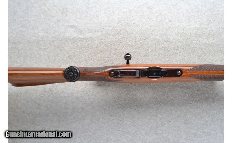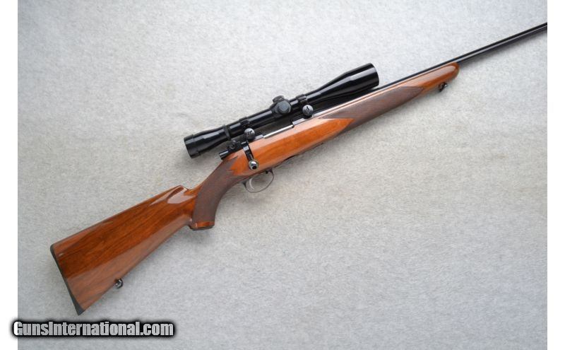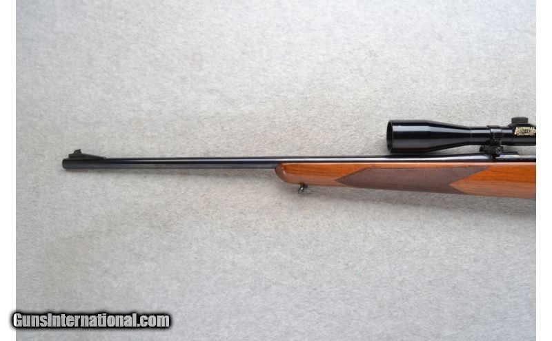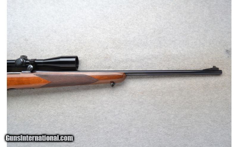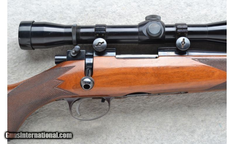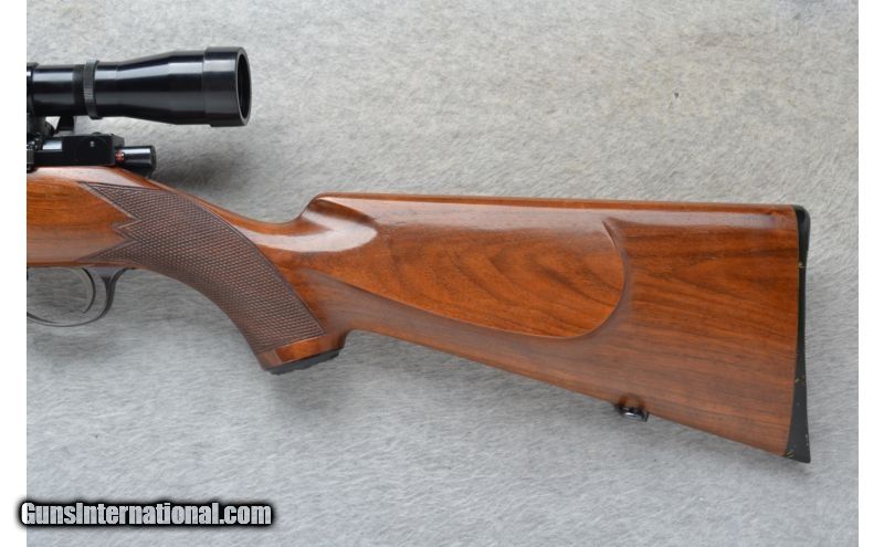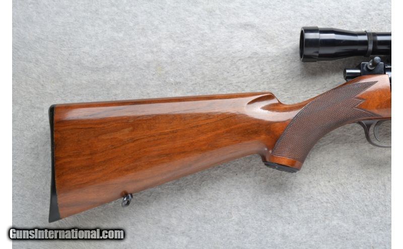 Description: This Sako is a right hand bolt action rifle in .222 Rem. Cal. It has a 23.5 inch barrel. A raised blade front sight and an All-American 6X Perma Center Lyman Scope. The stock is a checkered walnut pistol grip butt with a raised cheekpiece and black cap along with a checkered grip walnut forearm. It has checkered bolt handle. SOLD Caliber Info: .222 Rem. Chambers: Bolt Action 4 round detachable magazine. Metal Condition: Excellent. Wood Condition: Very good. Light handling marks. Bore Condition: Excellent. Barrels: 23.5 inch blued. Triggers: Stainless steel. Stock: Checkered grip walnut pistol grip with a raised cheekpeice and black cap. Stock Dimensions: LOP 13 7/8 inches. Fore End: Checkered grip walnut. Butt Pad: Sako grooved black plate. Weight: 7 lbs. 8 oz. with Scope mounted. Sights: All-American 6X Perma Center Lyman Scope. Raised blade front. Extras: Comes with a scope and sling swivels. Item Location: Richfield, WI |