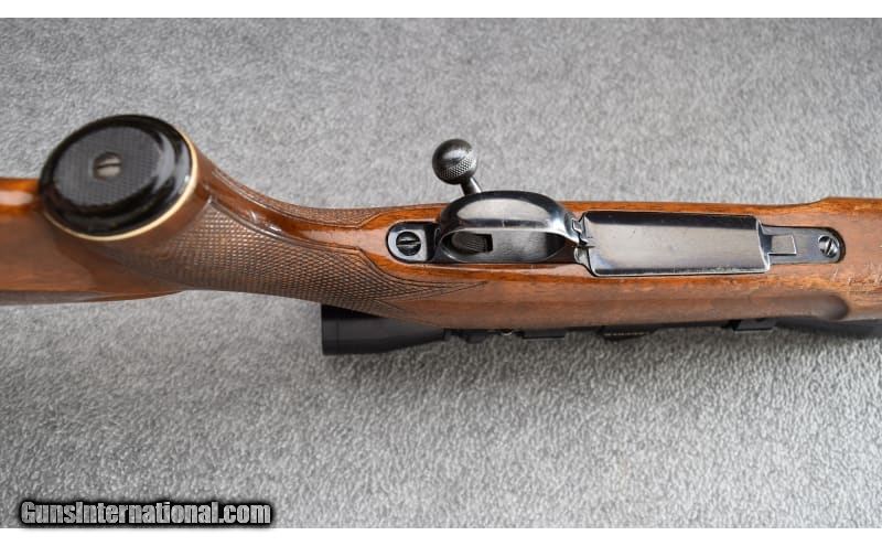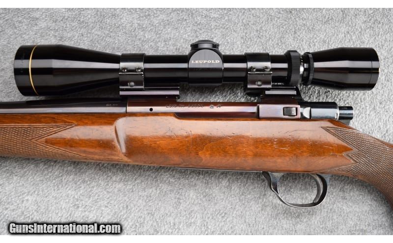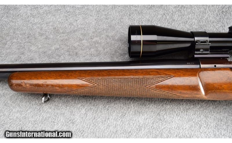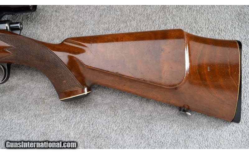 Description: This Custom gun was built on a 1960 Sako Forester L579 action with an unknown barrel and stock. Wood is solid but has dings, scratches and finish loss all over. Heavy sling swivels are attached. Sako buttplate has lost most of white spacer from age. Barrel has good blue with a couple small spots of blue loss, also on bolt, muzzle and crown. Receiver has turned plum color from age. This is a Controlled Round Feed action. Bore is bright and excellent. Gun is complete with a Leupold VX-1 4-12x40 scope with Duplex Reticle in Weaver rings. If you don't mind the custom work it should be a great shooter! .243 Winchester SOLD Metal Condition: Very Good Wood Condition: Good Bore Condition: Excellent Barrels: 24" Heavy Barrel Stock Dimensions: 13 3/4" LOP Fore End: Checkered Walnut Pistol Grip with Black Pistol Grip Cap & Monte Carlo Cheekpiece - Checkered Walnut Forend Butt Pad: Sako Black Plastic Butt Plate Weight: 9 lb Sights: Leupold VX-1 4-12x40 with Duplex Reticle in Weaver Rings Item Location: Wheeling |