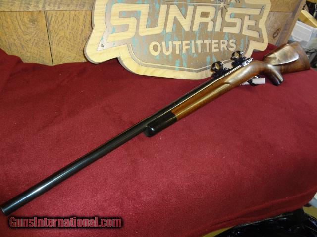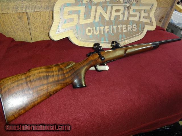 Description: This is a target shooters dream come true. 24" heavy barrel, Sako rings, and one of the most impressive pieces of wood to be found on a rifle. Has a checkered metal buttplate with ebony forearm and grip cap. The overall condition is about 99% with only a slight thinning of blue at muzzle probably from going in and out of a case. SOLD |
