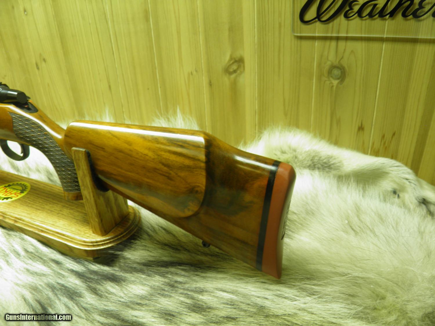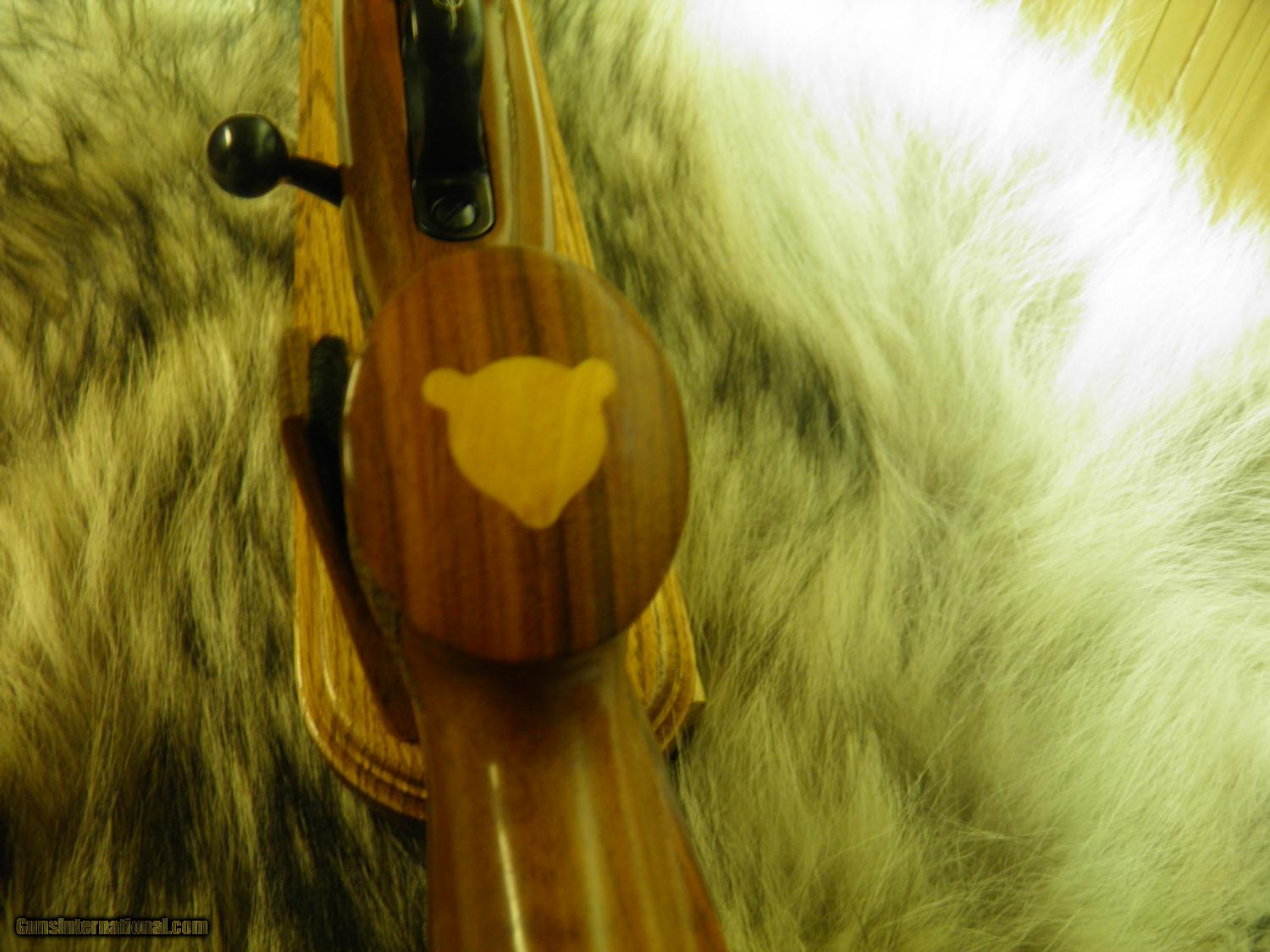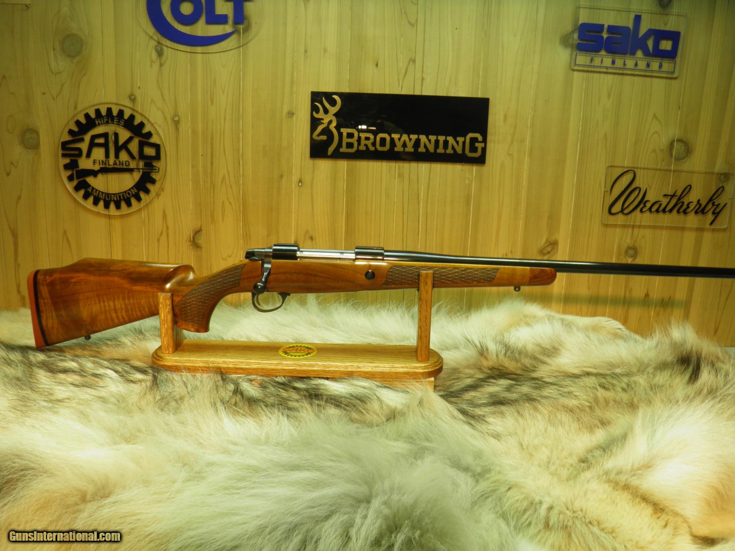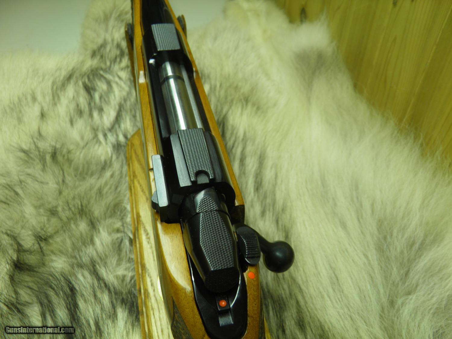 Description: SAKO DELUXE GRADE LIGHTWEIGHT FINNBEAR CAL: 25/06 MFG: 1986, BARREL LENGTH 22 1/2" TWIST 1 - 10", OVERALL LENGTH 43 1/2", APPROX: WEIGHT 7 1/4 LBS, LENGTH OF PULL 14", MAGAZINE CAPACITY 4 ROUNDS, RECEIVER HAS INTEGRAL DOVETAIL RAILS FOR SCOPE RING MOUNTING, CLEAN AND CRISP ADJUSTABLE TRIGGER WITH THUMB SAFTEY, BEAUTIFUL DELUXE GRADE EUROPEAN WALNUT WITH EXOTIC WOOD FOREND TIP AND GRIP CAP WITH BEARS HEAD INLAY, MONTE-CARLO STYLE COMB, WITH CHEECK-PIECE, BEAUTIFUL HAND-CUT SKIP-LINE DIAMOND CUT CHECKERING, ATTACHED SWIVEL STUDS, WOOD FINISHED IN A HIGH QUALITY HIGH GLOSS, BOLT BODY AND GUIDE ARE HIGHLY POLISHED TO A CHROME LIKE FINISH FOR SMOOTH AND EASE OPERATION OF LOADING AND UNLOADING, STEEL TRIGGER AND HINDGED FLOOR PLATE THATS ENGRAVED AND SILVER OVER-LAID, METAL SURFACES ARE HIGHLY POLISHED AND EXPERTLY BLUED TO PROVIDE THE DEEPEST MOST BRILLIANTLY LUSTROUS MIRROR BLUE FINISH!! "CONDITION" BLUEING 99.5%+++, WOOD 99%+++ A COUPLE SMALL LITTLE HANDLING MARKS, BORE IS BRIGHT AND SHINNEY WITH SHARP PRONOUNCED RIFLING, MABEY TEST FIRED?? SOLD |