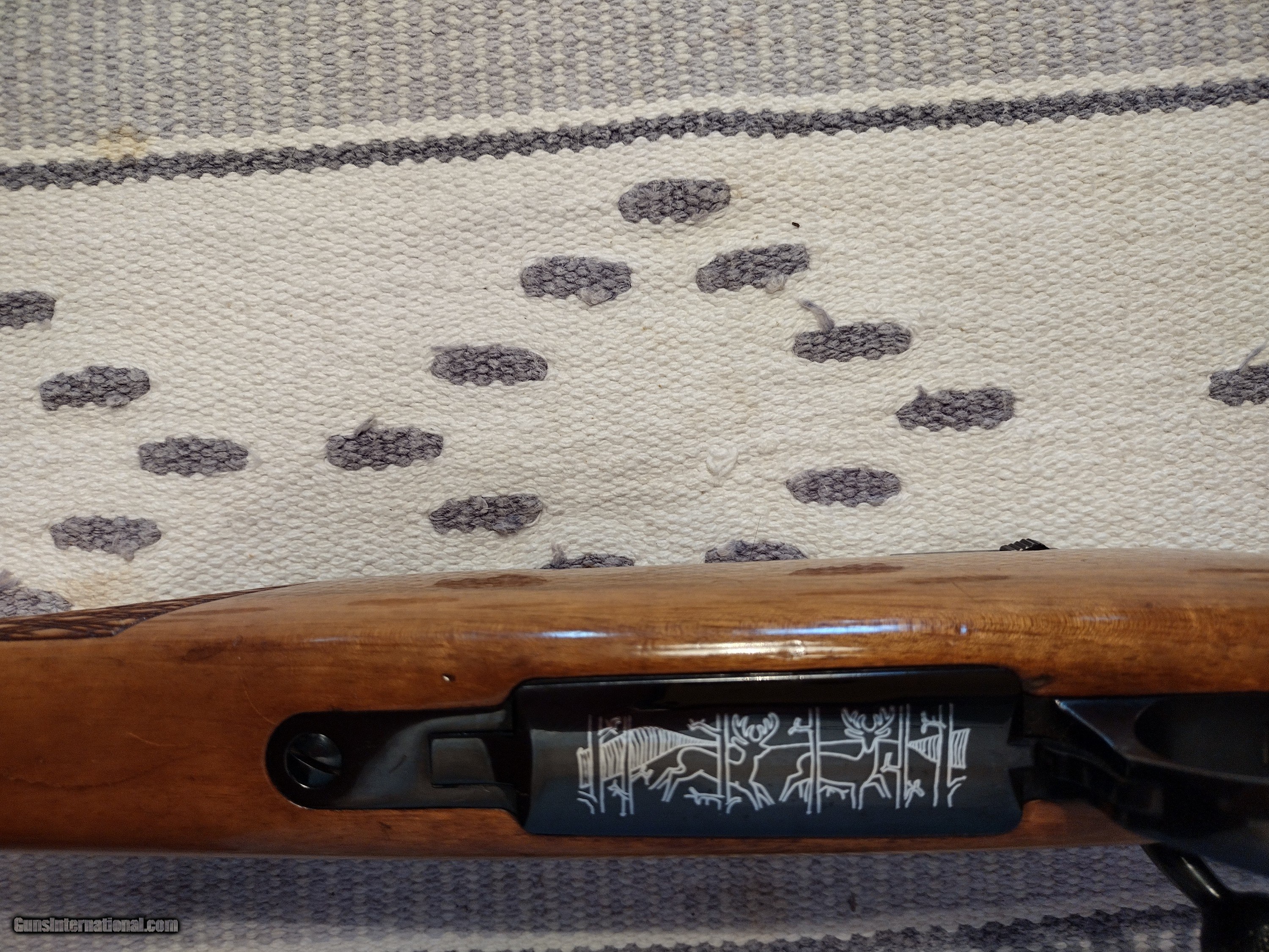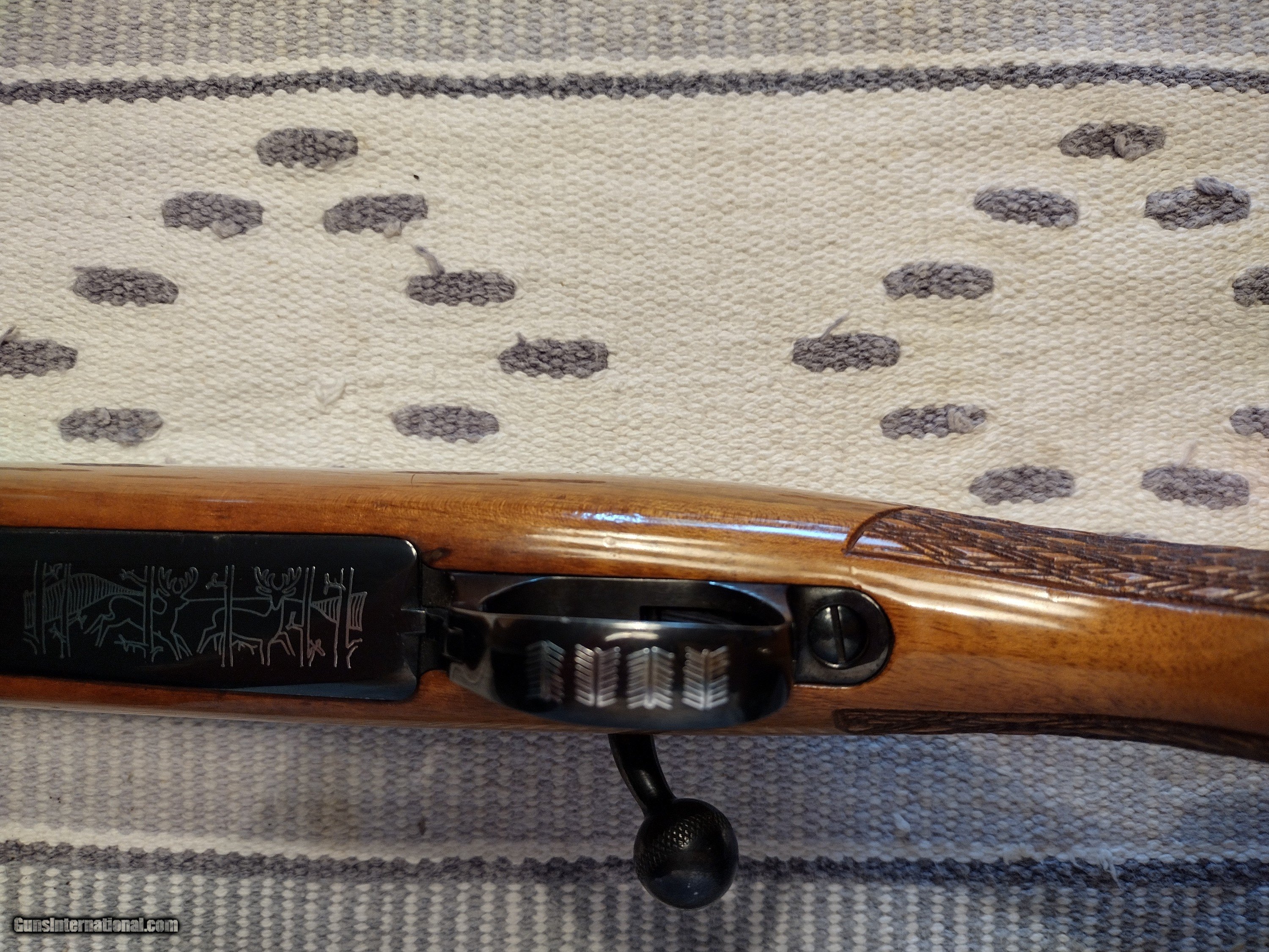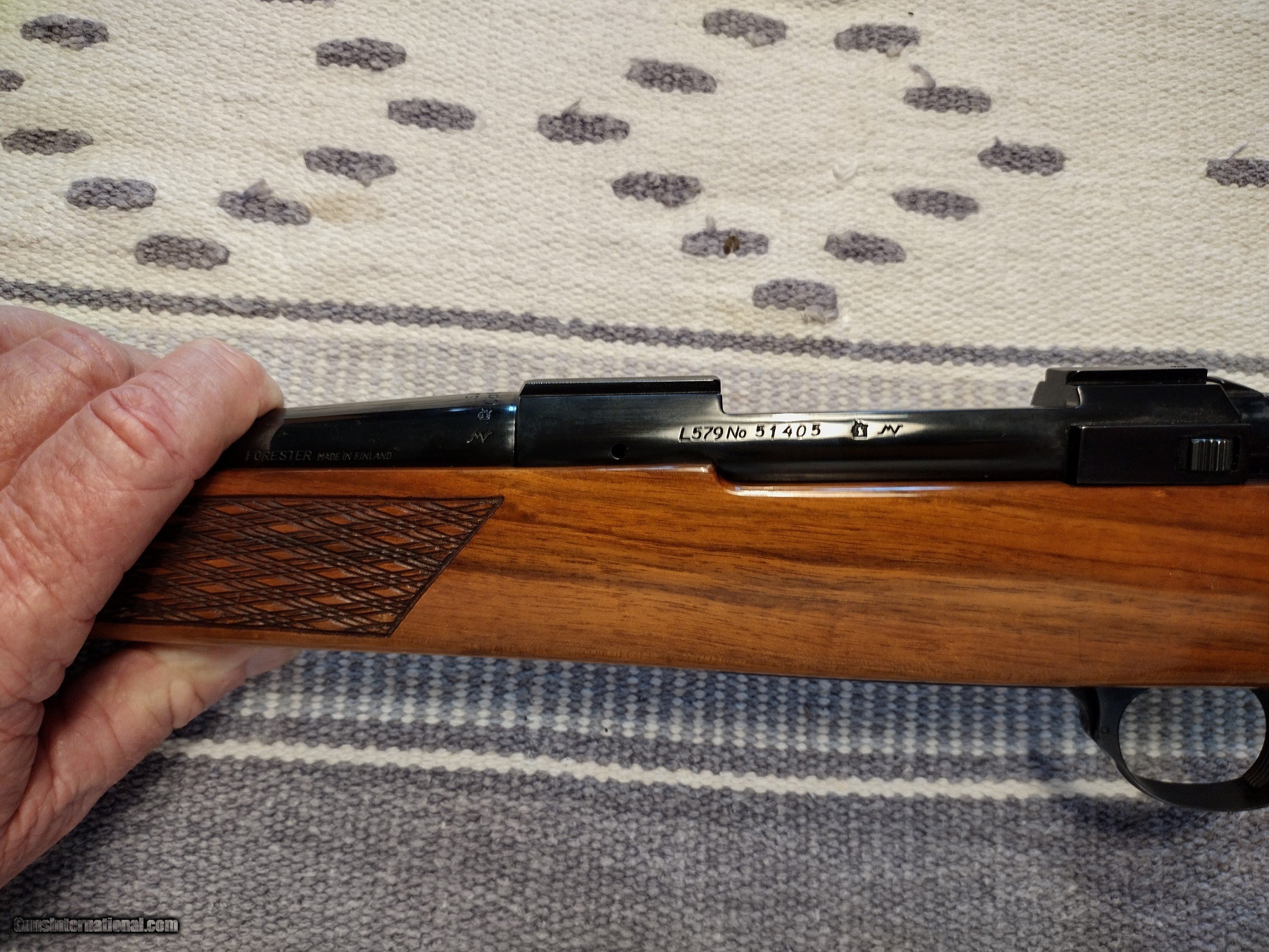 Description: Sako L579 Deluxe with the Rare Two Deer engraved floor plate. Original Condition rifle with some bruising to forearm bottom this rifle was carried a lot more than it was shot. A very hard find Engraving Pattern. Pad shows very slight deformity. SOLD Curio/Relic: Yes Rifle Caliber: .243 Winchester Manufacturer: Sako Model: L579 Forester Deluxe Serial Number: 514xx Barrel Length: 22.5 Condition: Very Good Metal Condition: 98% Wood Condition: 95% Bore Condition: Excellent Butt Pad: Original Finish: Original Sights: Factory Manufacture Date: 1966 Engraving: Rare Two Deer |