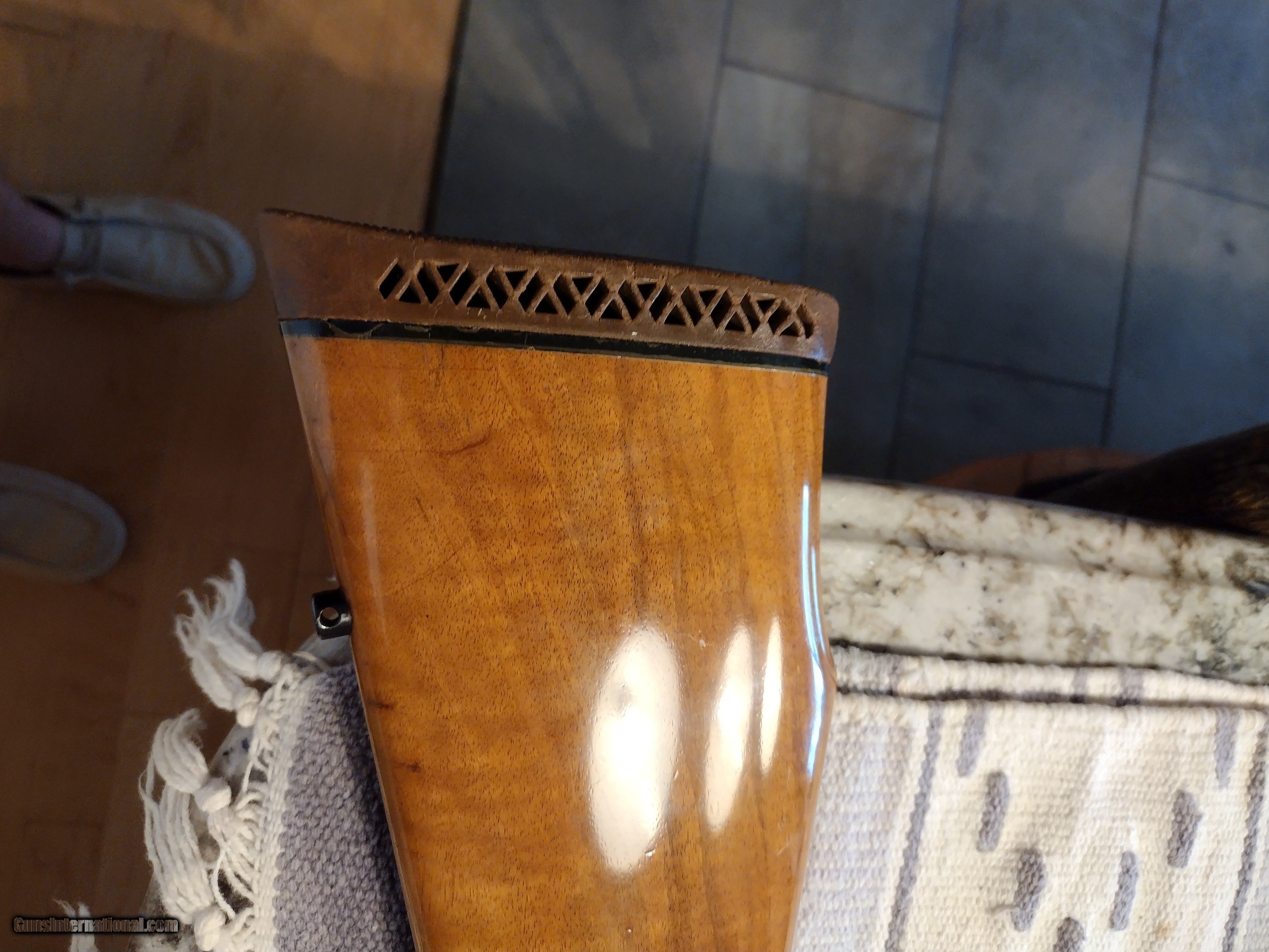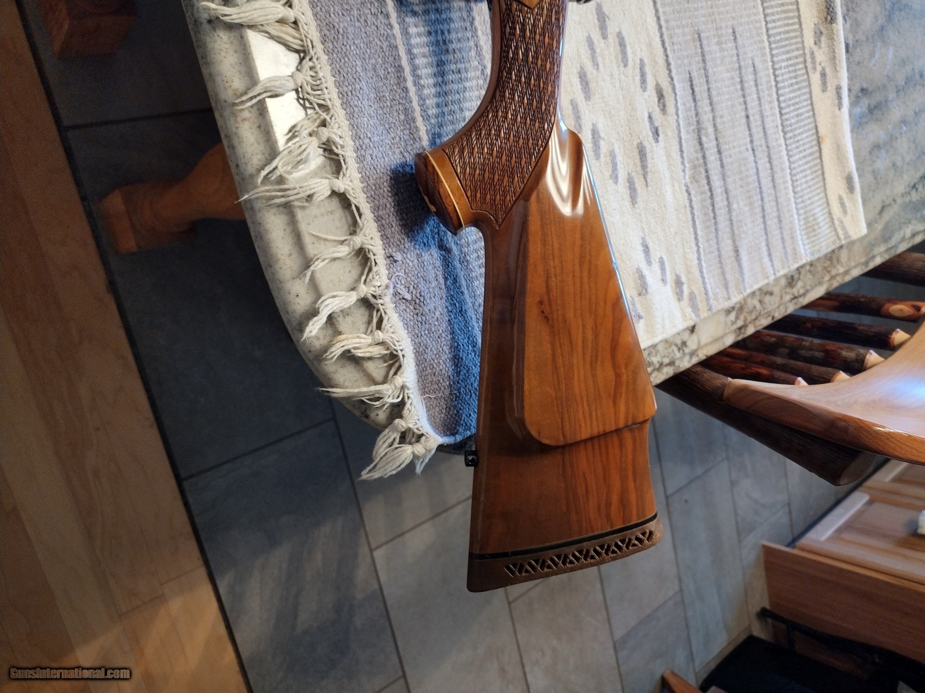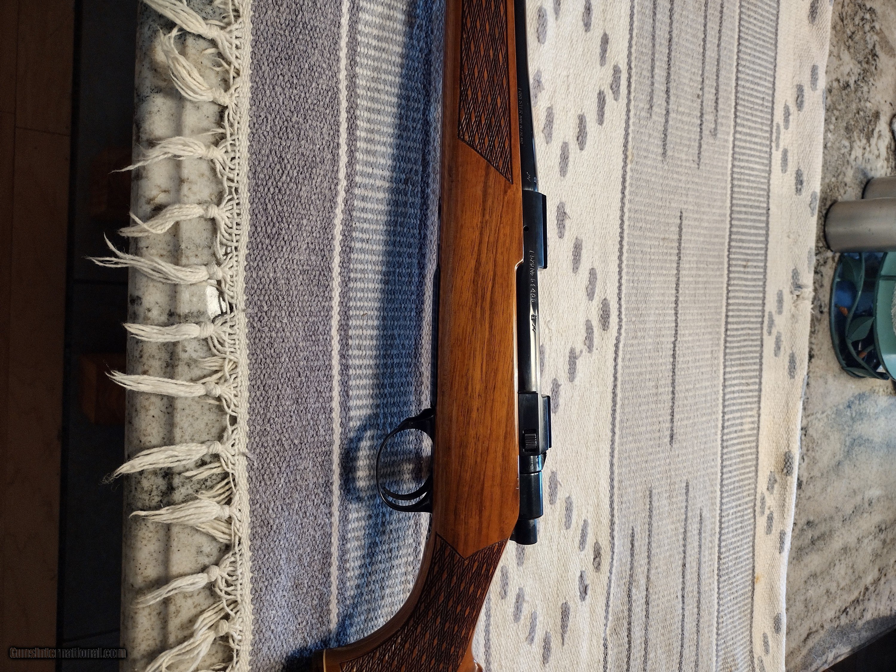 Description: Sako L579 Deluxe with the Rare Two Deer engraved floor plate. Original Condition rifle with some bruising to forearm bottom this rifle was carried a lot more than it was shot. A very hard find Engraving Pattern. Pad shows very slight deformity. SOLD Curio/Relic: Yes Rifle Caliber: .243 Winchester Manufacturer: Sako Model: L579 Forester Deluxe Serial Number: 514xx Barrel Length: 22.5 Condition: Very Good Metal Condition: 98% Wood Condition: 95% Bore Condition: Excellent Butt Pad: Original Finish: Original Sights: Factory Manufacture Date: 1966 Engraving: Rare Two Deer |