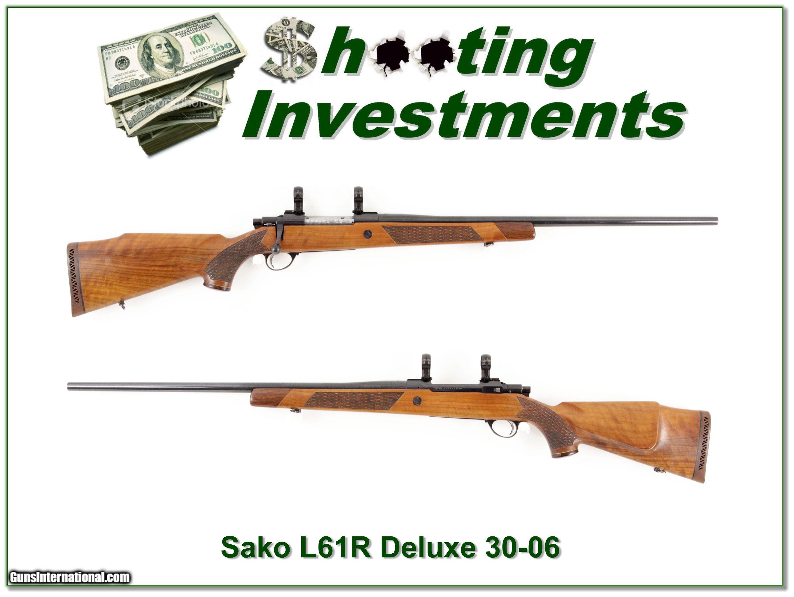 Description: This is a beautiful Sako Deluxe in 30-06. It is a L61R action and the wood has beautiful colors and grain. This one comes with rings as show. It is in very good condition with just a few minor marks. It will make a high-end hunting gun and these Sakos are known for superior accuracy. Shipping and insurance is $39. Please email me with any questions or larger pictures. (Consign your quality firearms with Shooting Investments for only 10%! Let me know if you have any you would like to sell!) 18-0316 Payment: Payment is by Money Order, Cashiers Check or Personal Check. I can now also accept MasterCard and Visa with a 3% convenience fee. PayPal can be used for some items but never firearms. Please let us know if you would like to pay via PayPal. Shipping: The shipping charge will be listed in each description. It is $39 for most long guns and $29 for most handguns. Some heavy guns or those insured for over $2000 will be higher. Shipments to Alaska and Hawaii are higher because air shipment is required. Most firearms are shipped on Tuesday and Thursday and usually in 5 days of receipt of payment. We package all shipments carefully and insure them. For long guns you can purchase a new Plano case for $19. They now cost us $22 when buying 100 at a time. Optics are shipped Priority Mail and most other non-firearm shipments are shipped First Class. Returns: Our return policy is simple. If for any reason you are not pleased with your purchase, you may return your item for a full refund of purchase price. Ammunition cannot be returned. It is important to us that you are happy. Guns cannot be fired or dissembled before returning them and they must be returned in the same condition as received. Notification of a return must occur with-in 3 days of receipt at your dealer. Shipping, convenience and dealer fees are not refundable and are the responsibility of the buyer. Lay-a-way: If needed, we offer a 60 day lay-a-way option on most firearms. It is 1/3 now, 1/3 in 30 days and 1/3 in 60 days. Lay-a-way firearm sales are final and if not completed the first payment cannot be returned. Consigning your firearms with Shooting Investments: We will help you get top dollar for your firearms. While most local guns shops charge 20% or more, our fee is only 12% with a minimum of $75. At your local gun shop it might take months to sell. Selling on-line provides instant access to thousands of interested buyers. You won’t find any other on-line dealer willing to sell your firearms for only 12% or listing every gun on 3 separate s. Selling through an House typically costs the seller 15% and the buyer an addition 15% (so 30%) and you have to wait several months to sell and longer to receive funds. If properly priced, we will sell your firearms in a few weeks. Send us an email or give us a call and we’ll explain how easy it is for you to get top dollar. Trading: Trading for use is really just buying your gun to re-sell. If you have a gun you want to trade, please email a picture and we will let you know what we can give or it. You will always get more if we sell it for you on consignment. Help for California Buyers: We are happy to ship to California. It is the buyer’s responsibility to make sure any item you buy is legal in your state. We are also happy to help with your purchase of a firearm from someone other than us. If you see a gun you would like to buy but the seller can’t or won’t ship to California they can ship to use and we’ll then ship it to your California dealer. The cost for this service is only $30 + shipping. Let us know if we can help! SOLD |