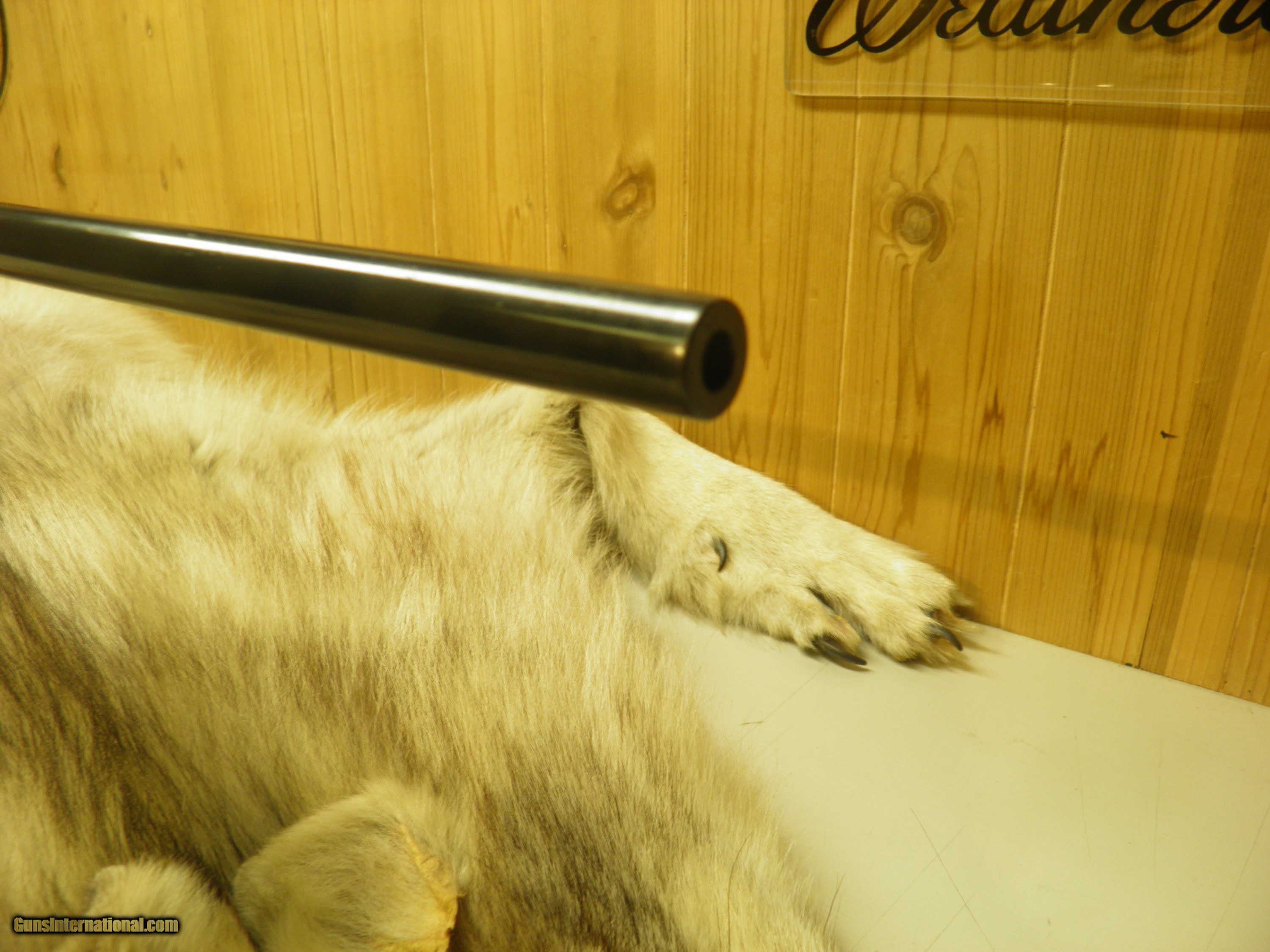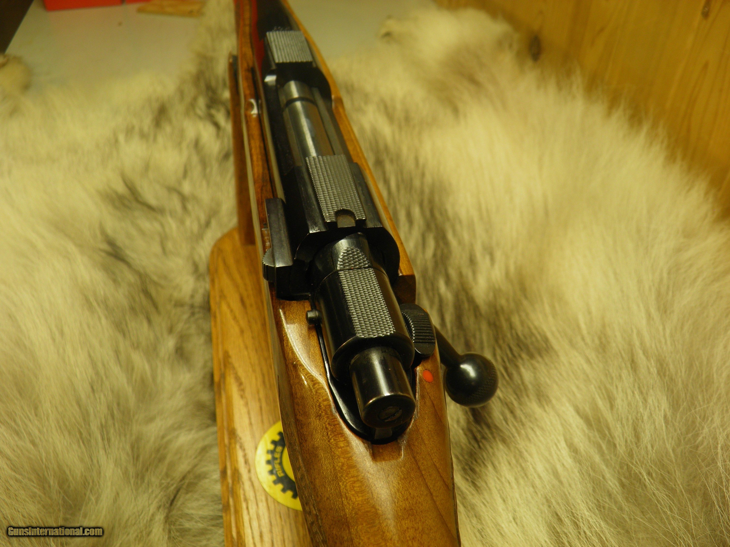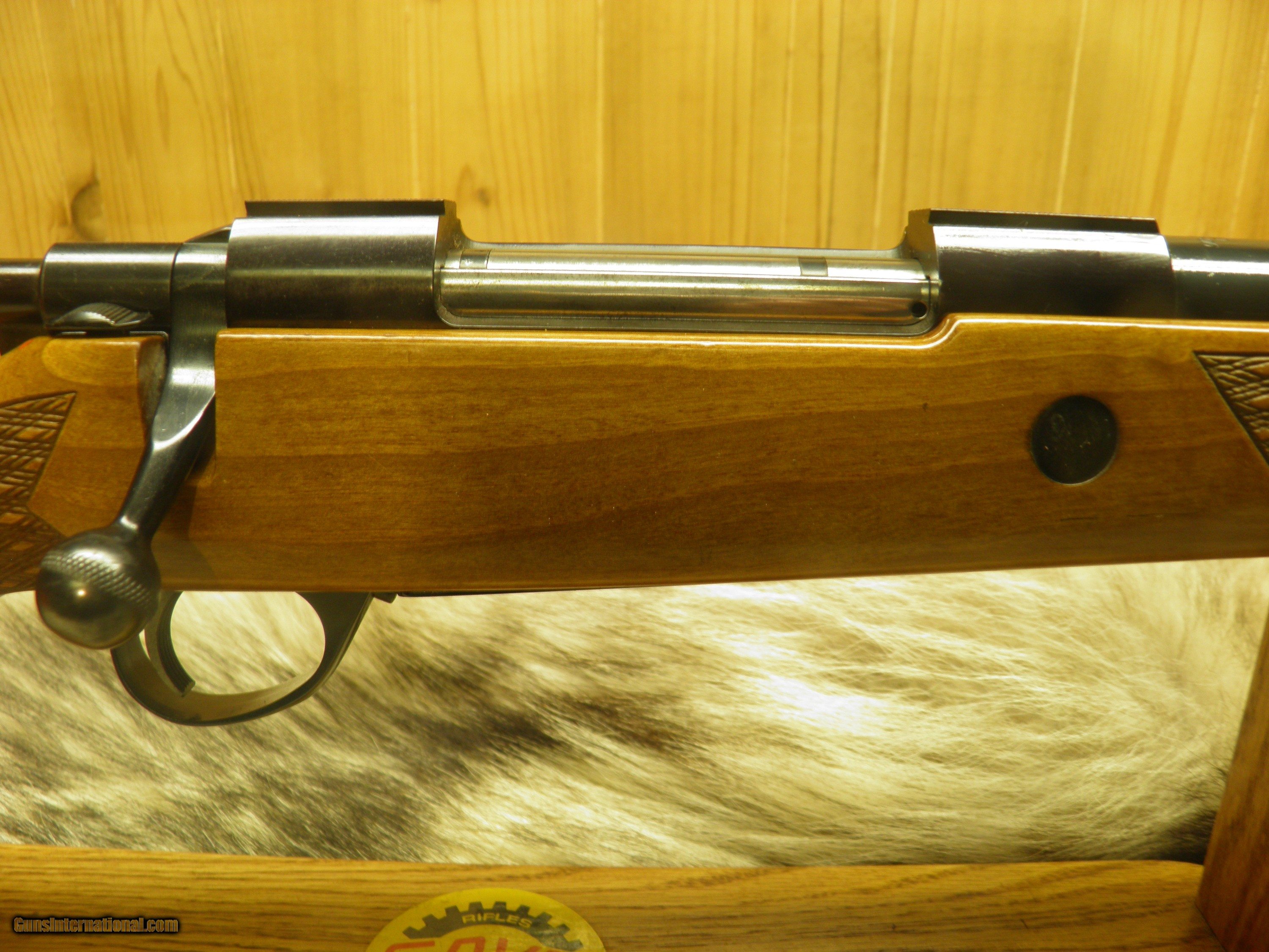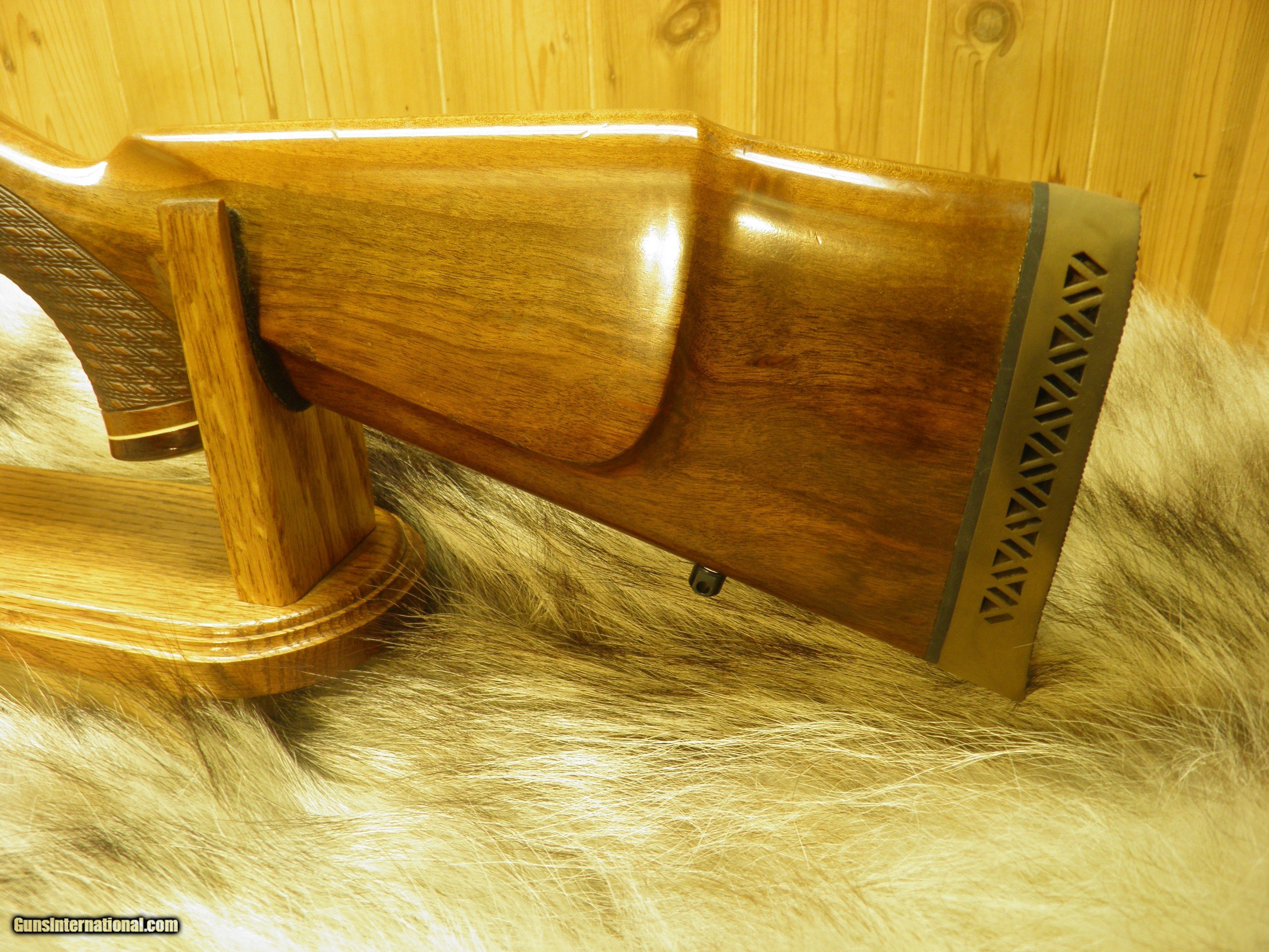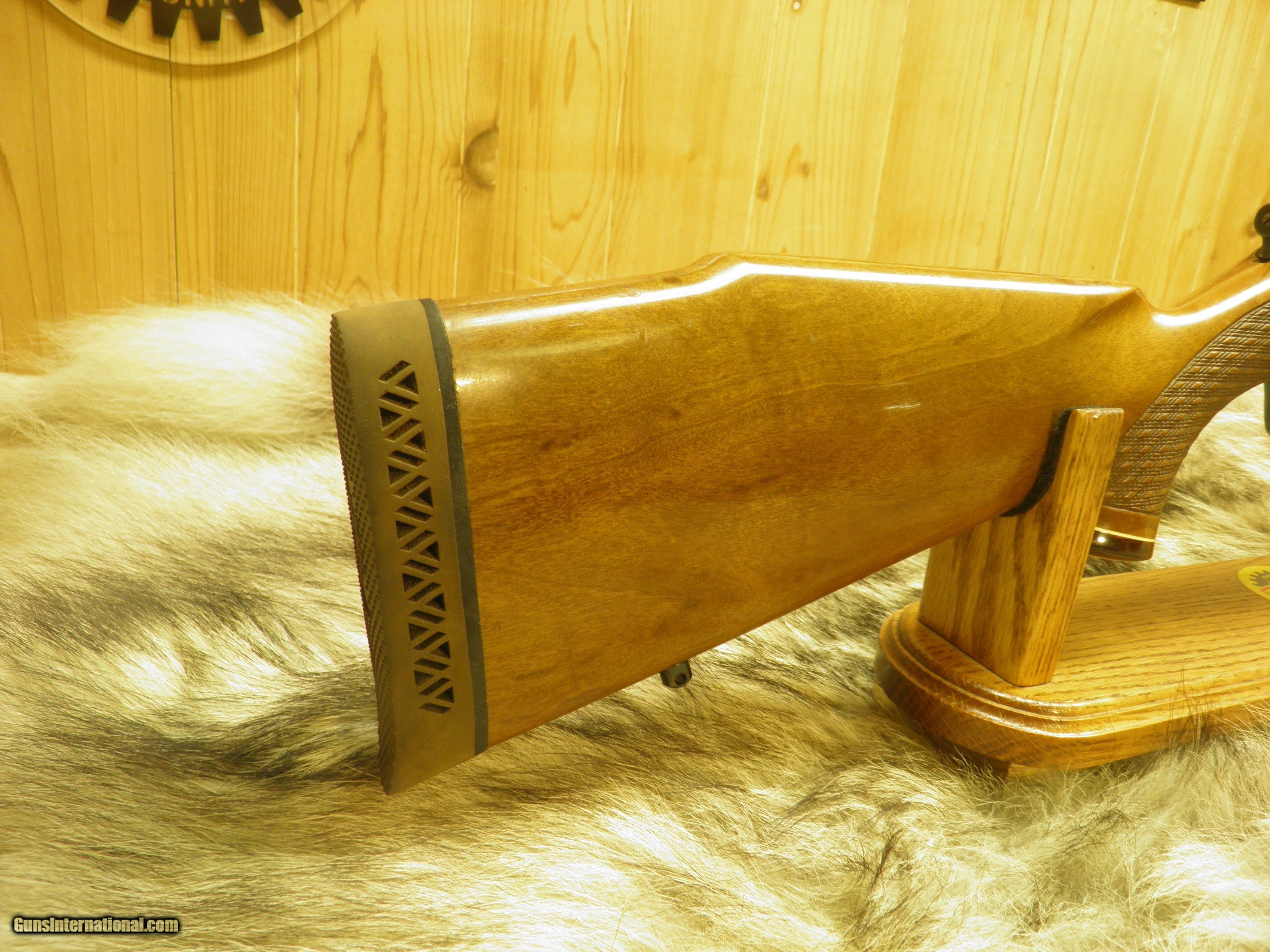 Description: Description: SAKO MODEL FINNBEAR DELUXE GRADE, IN 30-06., MANF: 1974, BARREL LENGTH 24" WITH A - 10" TWIST, OVERALL LENGTH 44 1/2", APPROXMENT WEIGHT 7 1/2 LBS, LENGTH OF PULL IS 13 3/4",MAGAZINE CAPACITY 4 ROUNDS, CLEAN AND CRISP ADJUSTABLE TRIGGER WITH SLIDING THUMB SAFTEY, INTEGRAL DOVETAIL RAILS FOR SCOPE RING MOUNTING, BOLT AND BOLT GUIDE ARE HIGHLY POLISHED, FOR SMOOTH AND EASE OPERATION OF LOADING AND EXTRACTION, STEEL TRIGGER GUARD WITH HINDGED FLOORPLATE ,THAT ARE HAND ENGRAVED AND SILVER OVER-LAID, BEAUTIFUL EUROPEAN WALNUT WITH MONTE- CARLO, CHEEK-PIECE,AND PISTOL GRIP, ROSEWOOD FOREND TIP, AND GRIP CAP WITH BEARS HEAD INLAY, BEAUTIFUL HAND CUT, SKIP LINE DIAMOND CHECKERING, ATTACHED SWIVEL STUDS, STOCK FINISHED IN A GLOSS POLYURETHANE, METAL SURFACES ARE POLISHED TO A HIGH GLOSS AND EXPERTLY BLUED TO PROVIDE THE DEEPEST MOST BRILLIANTY LUSTROUS MIRROR BLUE FINISH. EXCELLENT CONDITION RIFLE HAS SEEN A FEW HUNTS. SOLD |