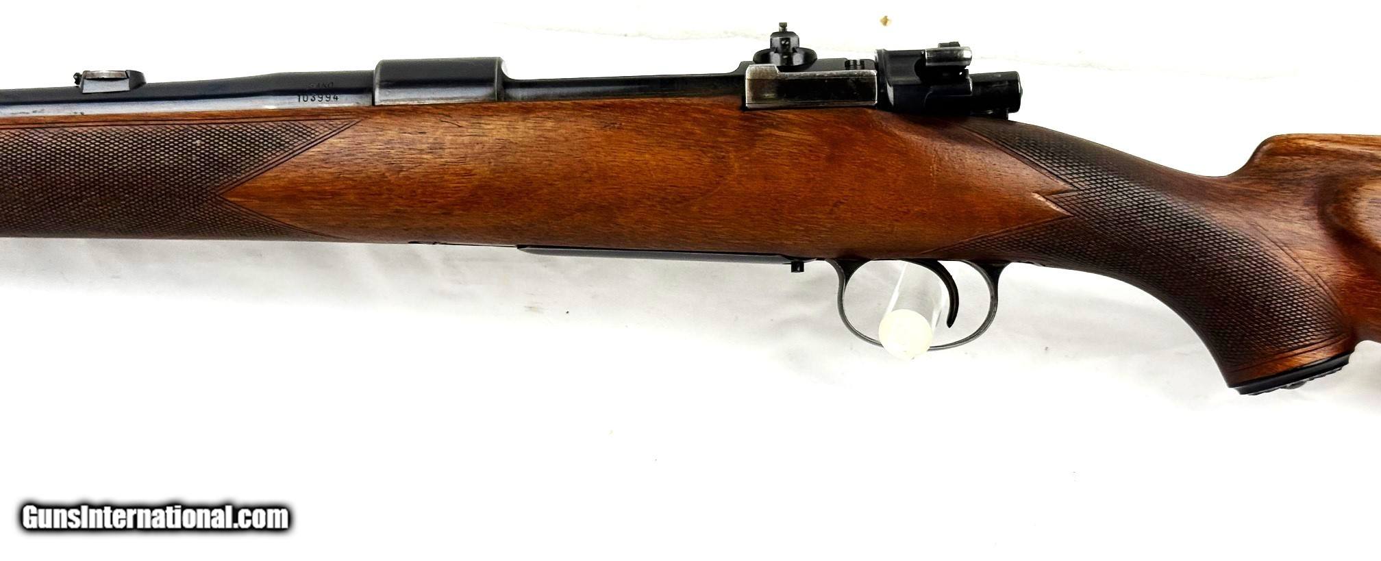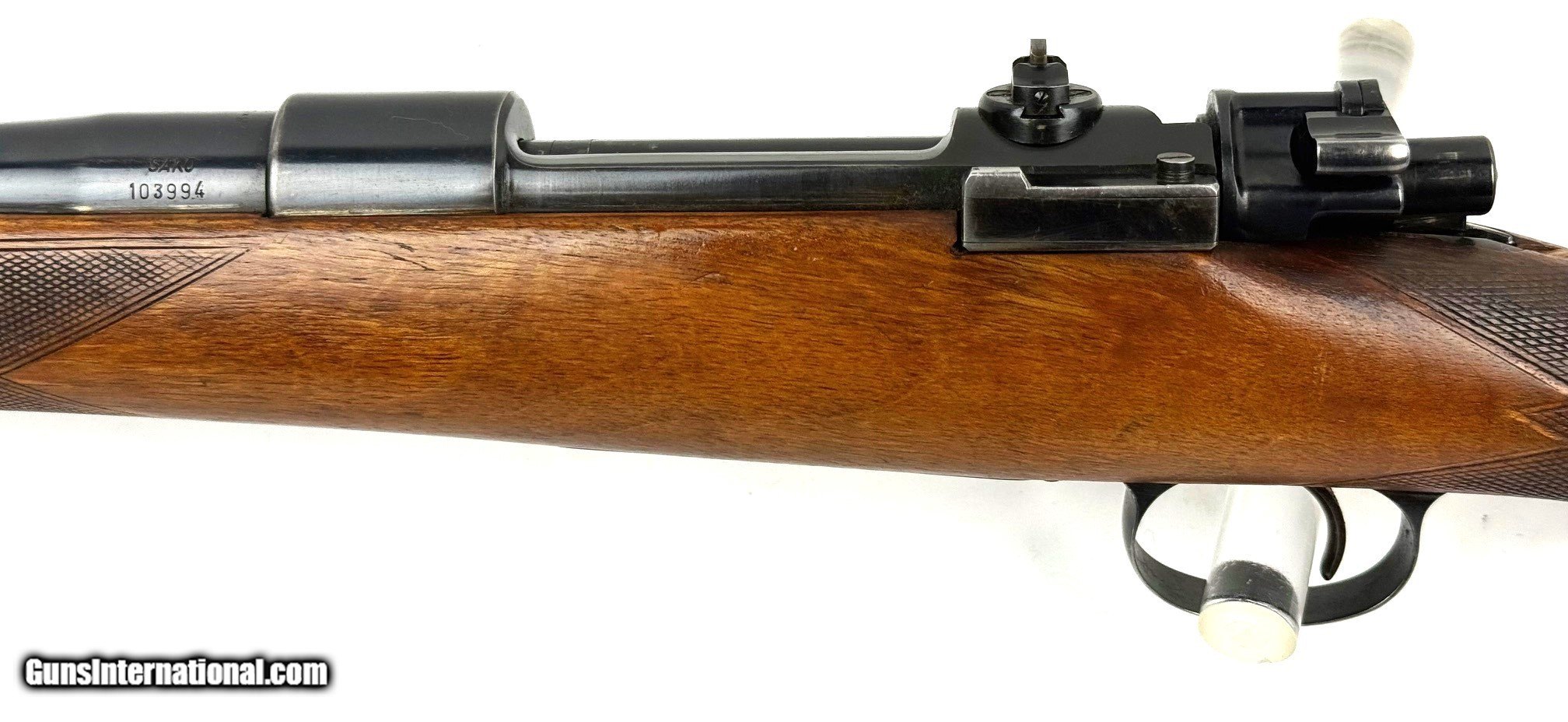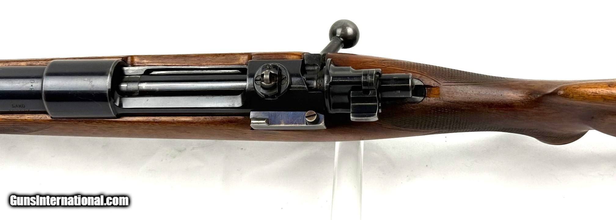 Description: Sako, Model “High Power”, 8x60, 24.25” Barrel, Island Rear Sight Base With Filler Blank, Receiver Mounted Adjustable Aperture Rear Sight, Post On Ramp Front Sight, ’98 Type Mauser Controlled Round Feed Action, Wing Safety, Checkered Pistol Grip Stock, Sling Swivels, Sako Butt Plate, Made In Finland, 14” LOP, Serial # 103994, Condition: Excellent, with scattered scratches, scuffs, nicks, and dings, Bore: Bright. *********************************************************C&R********************************25080205/57***************************************C&R************************************** *******Free Shipping(Lower 48 States only)*********************Layaway Available************************Trades Considered*******************FIREARMS MAY HAVE FOREIGN PROOF AND IMPORT MARKS******* If you are the winning , you will receive payment instructions in a confirmation email • Payment: We accept United State Postal Service Money Orders or Credit Cards Add 3.5% Service Fee- Visa, MasterCard & Discover.