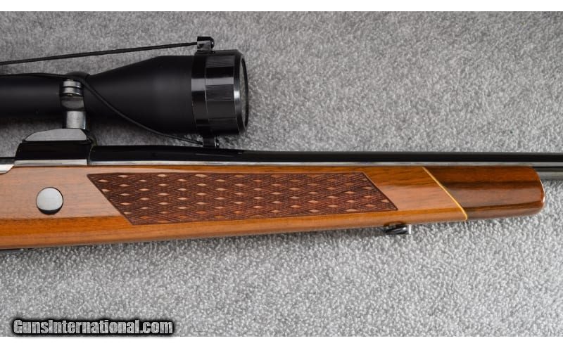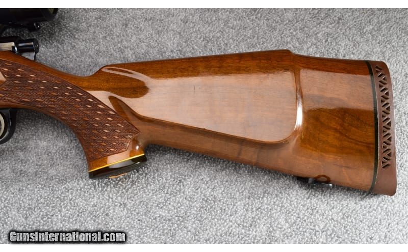 Description: This Sako Finnbear Deluxe was manufactured in August 1971 and remains in excellent overall condition showing only light use. Wood is solid with beautiful original finish with two small dings on bottom left receiver above floorplate and some light abrasion near front sling swivel stud. Blue also retains wonderful color with no visible marks. Bore is bright and excellent. Gun is complete with Vortex Diamondback 4-12x40 scope with BDC Reticle and Boyt green canvas carry case. No box. Beautiful gun! .30-06 Springfield SOLD Metal Condition: Excellent Wood Condition: Excellent Bore Condition: Excellent Barrels: 24" Tapered Triggers: Factory Stock Dimensions: 13 3/4" LOP Fore End: Double Skip Line Checkered French Walnut Pistol Grip with Rosewood Pistol Grip Cap - Double Skip Line Checkered French Walnut Forend with Rosewood Forend Cap Butt Pad: Sako Brown Vented Rubber Recoil Pad Weight: 9lb Sights: Vortex Diamondback 4-12x40 Scope with BDC Reticle Item Location: Wheeling |