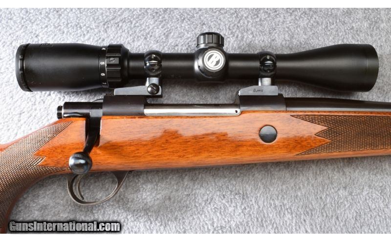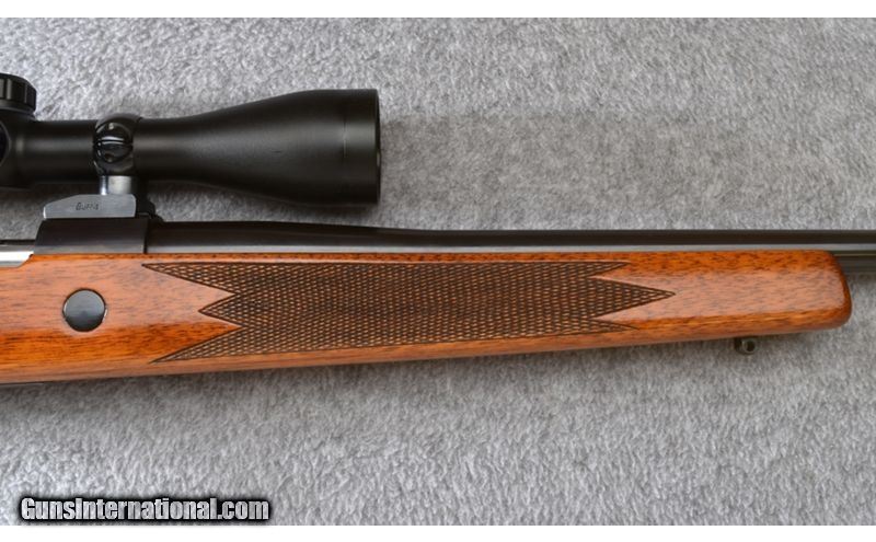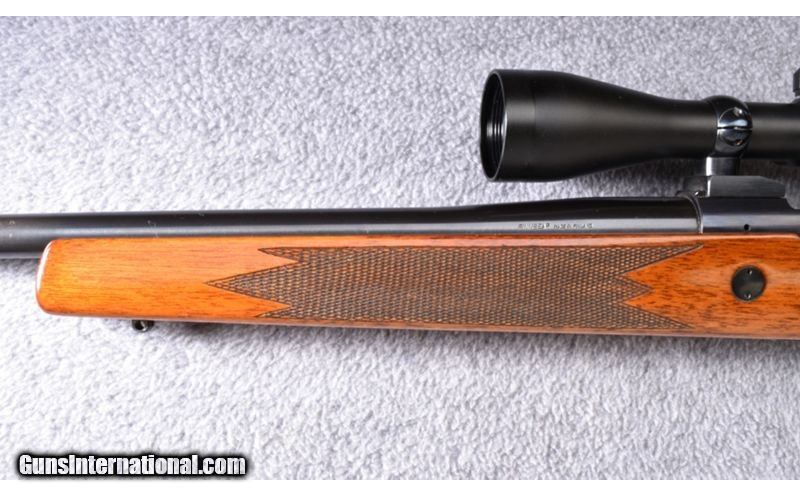 Description: This classic remains in very good condition with a controlled round feed action. Wood is solid and shows a few places with finish loss and some light scratches and dings. Finish is good and has darkened with age in certain spots. Blue on barrel is good but has a couple rack marks with some light oxidation. Blue on floorplate and triggerguard are very worn. Bore is excellent! Gun is complete with Bushnell 3-9X scope on Burris mounts & rings. No box. .30-06 Springfield SOLD Chambers: .30-06 Sprg. Metal Condition: Very Good Wood Condition: Very Good Bore Condition: Excellent Barrels: 24 Triggers: Factory Stock Dimensions: 13 3/4" LOP Fore End: Checkered Walnut Monte Carlo Stock Pistol Grip with Checkered Walnut Forend Butt Pad: Sako Riihimaki Brown Vented Rubber Butt Pad Sights: Bushnell 3-9X Scope Item Location: Wheeling |