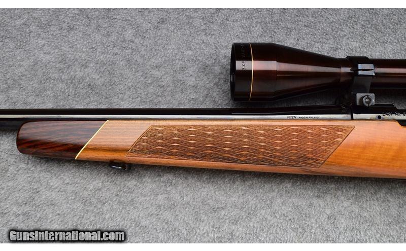 Description: This Sako Vixen Sporter dates to 1962 and remains in excellent overall condition. This is a Controlled Round Feed gun with an L461 action. Wood shows only some light use marks. Blue and bore are excellent. This is a beautiful firearm with a period Leupold Vari-XIII 3X9 scope! Beautiful. .222 Remington SOLD Metal Condition: Excellent Wood Condition: Excellent Bore Condition: Excellent Barrels: 24 Triggers: Factory Stock Dimensions: 13 7/8" LOP Fore End: Double Skip Line Checkered Walnut Pistol Grip with Rosewood Pistol Grip Cap & Monte Carlo Cheekpiece - Double Skip Line Checkered Walnut Forend with Rosewood Forend Cap Butt Pad: Sako Vented Brown Rubber Butt Pad Weight: 7 1/2 lb. Sights: Leupold Vari-X III 3X9 Scope with Duplex Reticle Item Location: Wheeling |