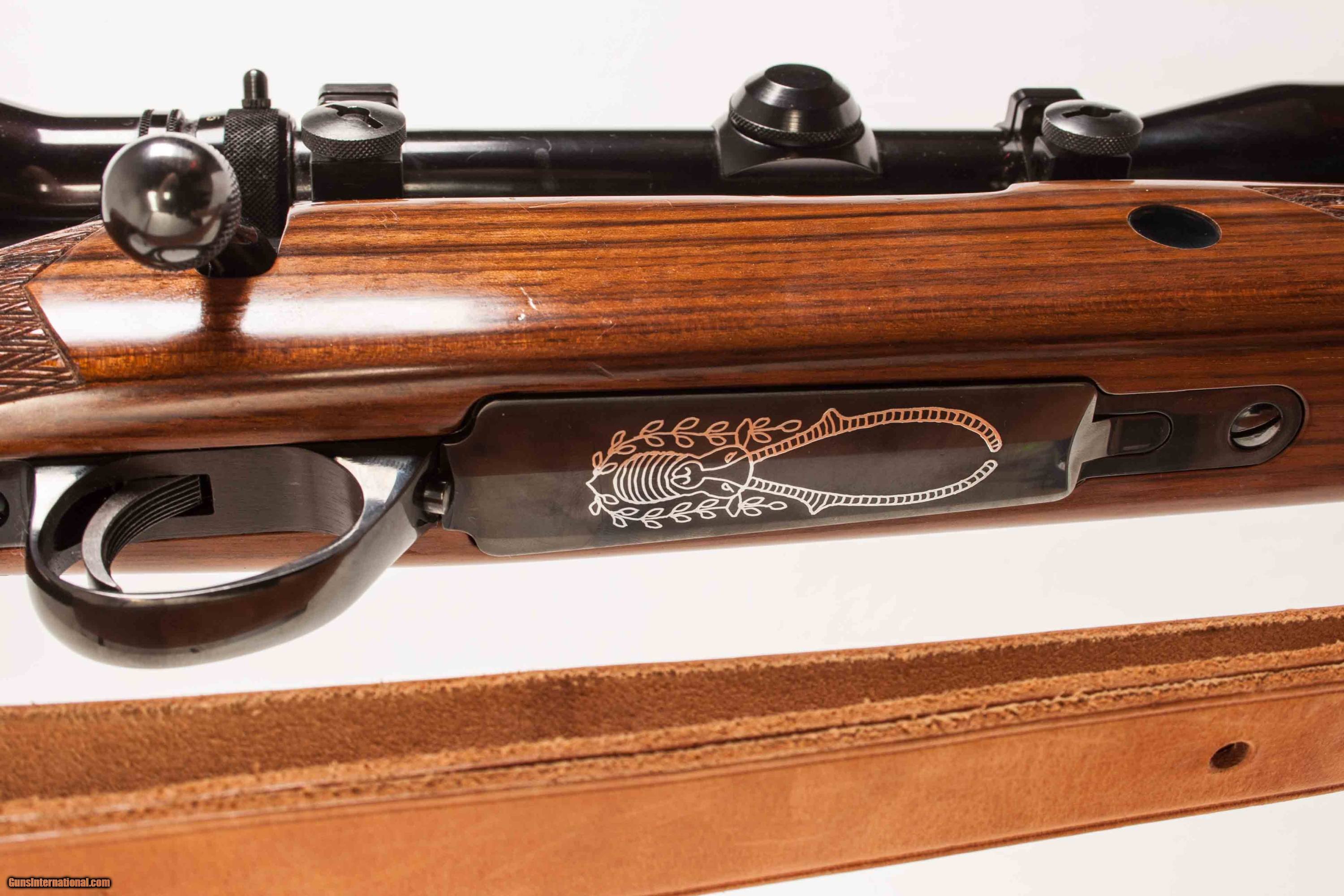 SAKO FINN BEAR CHAMBERED IN 7MM REM MAG WITH A 24 INCH BARREL BRIGHT BORE GOOD GOOVES WITH ATTACHED ATTACHED 3X-9X REDFIELD RIFLE. THIS GUN IS IN EXCELLENT CONDITION AND IS COVERED BY DURY'S LIFETIME WARRANTY.