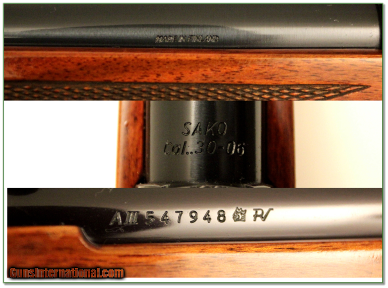 Description: This is a Sako AIII Finnbear in 30-06. It is in excellent condition. The blue looks like new and I am sure never shot more than a few rounds. It comes with factory rings as shown. Wood has only a couple minor marks otherwise as looks new. This will make a very nice high end hunting gun. Shipping and insurance is $30 or $18 more if you want it shipped in a new Plano hard case. Please email me with any questions or larger pictures. (I now consign quality firearms only 10%! Let me know if you have any you would like to sell!) [14-1077] Terms & Conditions Payment: Payment is by Money Order, Cashiers Check or Personal Check. I can now also accept MasterCard and Visa with a 3% convenience fee. PayPal can be used for some items but never firearms. Please let us know if you would like to pay via PayPal. Shipping: The shipping charge will be listed in each description. It is $30 for most guns. Some heavy guns or those insured for over $2000 may be higher. Shipments to Alaska and Hawaii are higher because air shipment is required. Most firearms are shipped within 5 days of receipt of payment. We prefer shipping at the beginning of the week to avoid firearms in transit over weekends. We package all shipments carefully and insure them for the full purchase price, rounded up to the next $100. In the unlikely event that damage occurs, it is important that you save all packaging material for the claims process. Optics are shipped Priority Mail and most other non-firearm shipments are shipped First Class. Returns: Our return policy is simple. If for any reason you are not pleased with your purchase, you may return your item for a refund. The only exception is ammunition, it cannot be returned. It is important to us that you are happy. Guns cannot be fired or dissembled before returning them and must be returned in the same condition as received. Notification of a return must occur with-in 3 days of receipt at your dealer. Shipping, convenience and dealer fees are not refundable and are the responsibility of the buyer. Lay-a-way: If needed, we offer a 60 day lay-a-way option on most firearms. It is 1/3 now, 1/3 in 30 days and 1/3 in 60 days. Lay-a-way firearm sales are final. Consigning your firearms with Shooting Investments: We will help you get top dollar for your firearms. While most local guns shops charge 20% or more, our fee is only 10% with a minimum of $50. At your local gun shop it might take months to sell. Selling on-line provides instant access to thousands of interested buyers. You won’t find any other on-line dealer willing to sell your firearms for only 10% or listing every gun on 4 separate s. Selling through an House typically costs 15% and you have to wait several months to sell and longer to receive funds. If properly priced, we will sell your firearms in a week or two. Send us an email or give us a call and we’ll explain how easy it is for you to get top dollar. Trading: We collect guns and usually just trade for guns we want to add to our collections. We often sell guns for others wanting to purchase one of ours. We find this the most fair to both of us. Our Commission is only 10% and we hold the gun you want until yours sells. Please contact us if you want to sell one of yours to buy one of ours. Help for California Buyers: We are happy to ship to California. It is the buyer’s responsibility to make sure any item you buy is legal in your state. We are also happy to help with your purchase of a firearm from someone other than us. If you see a gun you would like to buy but the seller can’t or won’t ship to California we can help. You buy the gun and have it shipped to us. We’ll then ship it to your California dealer. The cost for this service is only $30 + shipping. Let me know if we can help! SOLD |