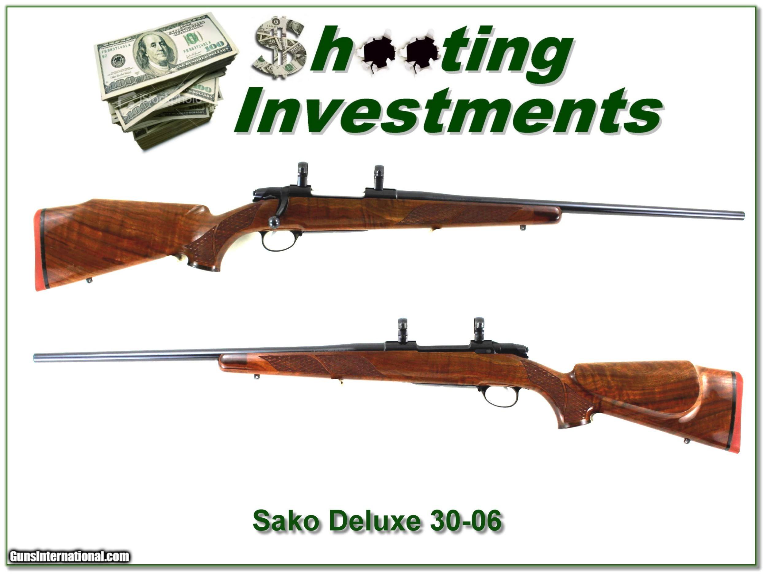 Description: This is a beautiful Sako IV Deluxe in 30-06. The metal is excellent, and wit has a 23in barrel. The wood has outstanding colors and figure with some minor marks from some use. I am sure form the bolt only a few rounds fired. It comes with rings as seen and will make a high-end hunting gun! Shipping and insurance is $49. Please email me with any questions or larger pictures. (Consign your quality firearms with Shooting Investments for only 12%! Let me know if you have any you would like to sell!) 22-1026 Payment: Payment is by Money Order, Cashiers Check or Personal Check. I can now also accept Credit Cards (MasterCard, Visa, Discover & American Express) with a 3% convenience fee. Shipping: The shipping charge will be listed in each description. It is $49 for most long guns. Some heavy guns, over 48in boxes or those insured for over $2000 will be higher. Shipments to Alaska and Hawaii are higher because air shipment is required. Most firearms are shipped on Tuesday and Thursday and usually in 5 days of receipt of payment. We package all shipments carefully and insure them. Optics are shipped Priority Mail and most other non-firearm shipments are shipped First Class. Returns: Our return policy is simple. If for any reason you are not pleased with your purchase, you may return your item for a full refund of purchase price. Ammunition cannot be returned. It is important to us that you are happy. Guns cannot be fired or dissembled before returning them and they must be returned in the same condition as received. Notification of a return must occur with-in 3 days of receipt at your dealer. Shipping, convenience and dealer fees are not refundable and are the responsibility of the buyer. Lay-a-way: If needed, we offer a 60 day lay-a-way option on most firearms. It is 1/3 now, 1/3 in 30 days and 1/3 in 60 days. Lay-a-way firearm sales are final and if not completed the first payment cannot be returned. Consigning your firearms with Shooting Investments: We will help you get top dollar for your firearms. While most local guns shops charge 20% or more, our fee is only 12% with a minimum of $75. At your local gun shop it might take months to sell. Selling on-line provides instant access to thousands of interested buyers. You won’t find any other on-line dealer willing to sell your firearms for only 12% or listing every gun on 3 separate s. Selling through an House typically costs the seller 15% and the buyer an addition 15% (so 30%) and you have to wait several months to sell and longer to receive funds. If properly priced, we will sell your firearms in a few weeks. Send us an email or give us a call and we’ll explain how easy it is for you to get top dollar. Trading: Trading for use is really just buying your gun to re-sell. If you have a gun you want to trade, please email a picture and we will let you know what we can give or it. You will always get more if we sell it for you on consignment. Help for California Buyers: We are happy to ship to California. It is the buyer’s responsibility to make sure any item you buy is legal in your state. We are also happy to help with your purchase of a firearm from someone other than us. If you see a gun you would like to buy but the seller can’t or won’t ship to California they can ship to use and we’ll then ship it to your California dealer. The cost for this service is only $30 + shipping. Let us know if we can help! SOLD |