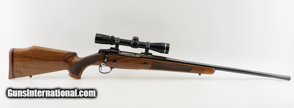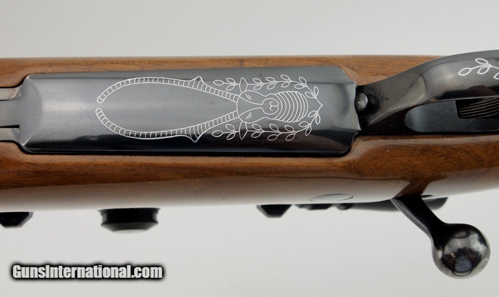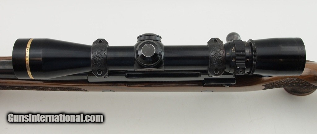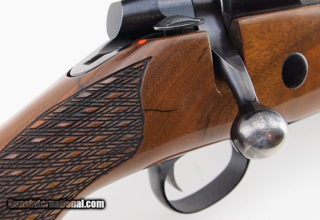 Description: SAKO FINNBEAR AV DELUXE .280 REM, 23" bbl, blued finish, leupold VARI-X III 2.5-8X scope, engraved rings, nice checkered hardwood grip stock, use marks consistent with field use, two inch crack behind the bolt has been professionally stabilized, accent wood forend - grip cap, sling studs, LOP - 14 1/4", and red SAKO recoil pad. A great find! Add 3% for Credit Card Shipping $30.00 SOLD |