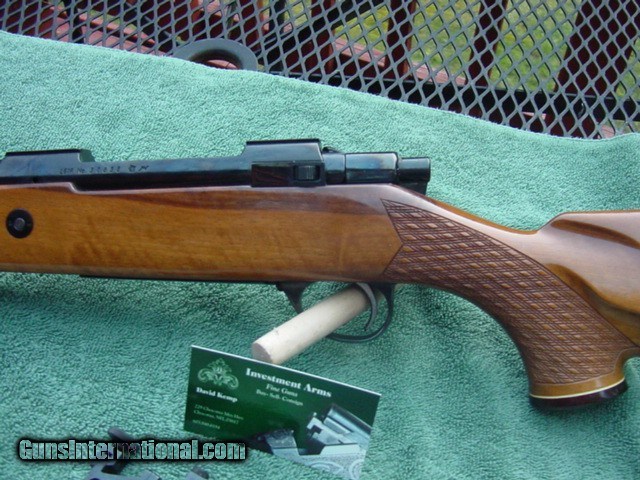 Description: SOLD ! Sako Finnbear Deluxe-pre Garcia,Bofors Barrel.30-06.24" Barrel L61R Nice Pre Garcia, Finnbear in 30-06 with rings, bore is bright, 99% original with just a couple light handling marks. Factory pad shows some compression as they tend to do but still all there. Nice silver inlay on the trigger guard and floorplate-bear logo on stock grip. Includes a set of factory 1" rings to fit the L61R reciever.Deluxe grade walnut with excellent skip line checkering.Rosewoowd foreend tip and grip cap,even has the factory sight hood. Born 1967 s/n 308xx Super nice high condition Sako Finnbear ready to be taken out and enjoyed. Offered at $1695 plus shipping to you FFL-should be $45-55 depending on location. Happy to send along more pic’s, answer questions over phone or email. Please email your phone number so I can call back if I miss the call-do not have text sorry, thanks. Be sure to look at my other offerings for more guns,Merkel'sMannlicher Schoenauer's, Drillings, Combo's, Colt Saa's, Colt’s, Ruger’s, Browning’s,Kimber’s, Les Baer, Uberti'sby both Taylor and Cimarron, and Ferlib, Merkel G&H-Arrieta,Beretta,Parker Repro shotguns and other fine guns. Inventory always changing be sure to check with us for any needs. Local New Hampshire Buyer can view/purchase gun in person-after 4473/ NICS check, at Investment Arms business premise in New Hampshire Country Store, Rt 16 Chocorua NH. Please email/call 603.848.6184 Business or (603.323.8200 ) first to be sure its not sold. We also Buy and Consign Guns Payment by bank check, UPS money order-personal check held until clear 10 days. Buyer must provide dealers signed 01 FFL-email or hard copy, I will include a copy of my FFL with shipment. 3 day non firing inspection period(gun must be in same condition if returned)-starts when gun arrives at your dealer, on used guns only-not new guns sorry-they are under factory warranty, buyer pays shipping and insurance both ways if returned. SAFETY NOTICE: Buyer is solely responsible for determining that a used gun is safe to shoot. The firearms offered has been given a visual inspection for collection purpose only. It is a requirement that any used firearm be inspected by a qualified gunsmith before firing. By purchasing the firearm, the buyer agrees to hold seller harmless against damages, injury, or death caused by defective merchandise SOLD |