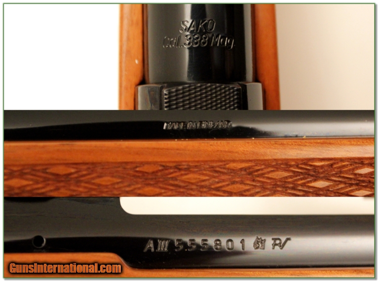 Description: This is a beautiful Sako Deluxe AIII Finnbear. It has beautiful blond wood and grain and a high gloss blue. These Deluxe Sakos have become collector guns and the 338 is not an easy one to find. This one is in excellent condition. The blue is close to new and the wood has only a couple insignificant marks. This will make a high end hunting gun or nice addition to your collection. It is a Shooting Investment. Shipping and insurance is $30 or $18 more if you want it shipped in a new Plano hard case. Please email me with any questions or larger pictures. (I now consign quality firearms only 10%! Let me know if you have any you would like to sell!) [14-1081] Payment: Payment is by Money Order, Cashiers Check or Personal Check. I can now also accept MasterCard and Visa with a 3% convenience fee. PayPal can be used for some items but never firearms. Please let us know if you would like to pay via PayPal. Shipping: The shipping charge will be listed in each description. It is $30 for most guns. Some heavy guns or those insured for over $2000 may be higher. Shipments to Alaska and Hawaii are higher because air shipment is required. Most firearms are shipped within 5 days of receipt of payment. We prefer shipping at the beginning of the week to avoid firearms in transit over weekends. We package all shipments carefully and insure them for the full purchase price, rounded up to the next $100. In the unlikely event that damage occurs, it is important that you save all packaging material for the claims process. Optics are shipped Priority Mail and most other non-firearm shipments are shipped First Class. Returns: Our return policy is simple. If for any reason you are not pleased with your purchase, you may return your item for a refund. The only exception is ammunition, it cannot be returned. It is important to us that you are happy. Guns cannot be fired or dissembled before returning them and must be returned in the same condition as received. Notification of a return must occur with-in 3 days of receipt at your dealer. Shipping, convenience and dealer fees are not refundable and are the responsibility of the buyer. Lay-a-way: If needed, we offer a 60 day lay-a-way option on most firearms. It is 1/3 now, 1/3 in 30 days and 1/3 in 60 days. Lay-a-way firearm sales are final. Consigning your firearms with Shooting Investments: We will help you get top dollar for your firearms. While most local guns shops charge 20% or more, our fee is only 10% with a minimum of $50. At your local gun shop it might take months to sell. Selling on-line provides instant access to thousands of interested buyers. You won’t find any other on-line dealer willing to sell your firearms for only 10% or listing every gun on 4 separate s. Selling through an House typically costs the seller 15% and the buyer an addition 15% (so 30%) and you have to wait several months to sell and longer to receive funds. If properly priced, we will sell your firearms in a week or two. Send us an email or give us a call and we’ll explain how easy it is for you to get top dollar. Trading: We collect guns and usually just trade for guns we want to add to our collections. We often sell guns for others wanting to purchase one of ours. We find this the most fair to both of us. Our Commission is only 10% and we hold the gun you want until yours sells. Please contact us if you want to sell one of yours to buy one of ours. Help for California Buyers: We are happy to ship to California. It is the buyer’s responsibility to make sure any item you buy is legal in your state. We are also happy to help with your purchase of a firearm from someone other than us. If you see a gun you would like to buy but the seller can’t or won’t ship to California we can help. You buy the gun and have it shipped to us. We’ll then ship it to your California dealer. The cost for this service is only $30 + shipping. Let me know if we can help! SOLD |
