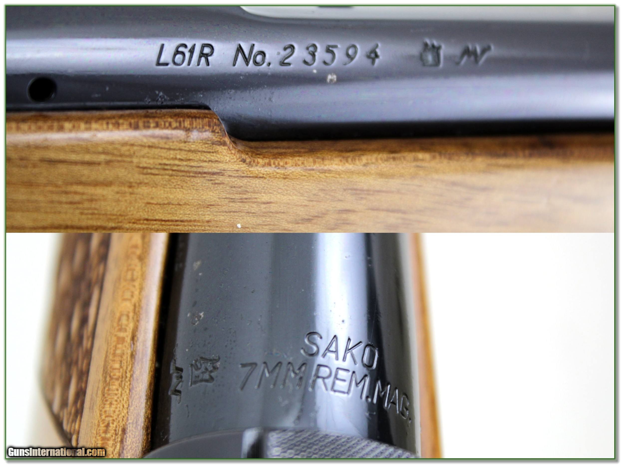 Description: This is an earlier L61R Finnbear Deluxe in 7mm Remington Magnum. It is the sought-after pre-Garcia with Bofors Steel barrel. It has a 24.5in barrel and the metal is very good. The blind wood has marks from sone hunting use. From the bolt I’m sure not many rounds fired but it was carried in the field with scattered marks. It will make a high-end hunting gun or could be refinished into a colors piece. Shipping and insurance is $49. Please email me with any questions or larger pictures. (Consign your quality firearms with Shooting Investments for only 12%! Let me know if you have any you would like to sell!) 22-1283 Payment: Payment is by Money Order, Cashiers Check or Personal Check. I can now also accept Credit Cards (MasterCard, Visa, Discover & American Express) with a 3% convenience fee. Shipping: The shipping charge will be listed in each description. It is $49 for most long guns. Some heavy guns, over 48in boxes or those insured for over $2000 will be higher. Shipments to Alaska and Hawaii are higher because air shipment is required. Most firearms are shipped on Tuesday and Thursday and usually in 5 days of receipt of payment. We package all shipments carefully and insure them. Optics are shipped Priority Mail and most other non-firearm shipments are shipped First Class. Returns: Our return policy is simple. If for any reason you are not pleased with your purchase, you may return your item for a full refund of purchase price. Ammunition cannot be returned. It is important to us that you are happy. Guns cannot be fired or dissembled before returning them and they must be returned in the same condition as received. Notification of a return must occur with-in 3 days of receipt at your dealer. Shipping, convenience and dealer fees are not refundable and are the responsibility of the buyer. Lay-a-way: If needed, we offer a 60 day lay-a-way option on most firearms. It is 1/3 now, 1/3 in 30 days and 1/3 in 60 days. Lay-a-way firearm sales are final and if not completed the first payment cannot be returned. Consigning your firearms with Shooting Investments: We will help you get top dollar for your firearms. While most local guns shops charge 20% or more, our fee is only 12% with a minimum of $75. At your local gun shop it might take months to sell. Selling on-line provides instant access to thousands of interested buyers. You won’t find any other on-line dealer willing to sell your firearms for only 12% or listing every gun on 3 separate s. Selling through an House typically costs the seller 15% and the buyer an addition 15% (so 30%) and you have to wait several months to sell and longer to receive funds. If properly priced, we will sell your firearms in a few weeks. Send us an email or give us a call and we’ll explain how easy it is for you to get top dollar. Trading: Trading for use is really just buying your gun to re-sell. If you have a gun you want to trade, please email a picture and we will let you know what we can give or it. You will always get more if we sell it for you on consignment. Help for California Buyers: We are happy to ship to California. It is the buyer’s responsibility to make sure any item you buy is legal in your state. We are also happy to help with your purchase of a firearm from someone other than us. If you see a gun you would like to buy but the seller can’t or won’t ship to California they can ship to use and we’ll then ship it to your California dealer. The cost for this service is only $30 + shipping. Let us know if we can help! SOLD |