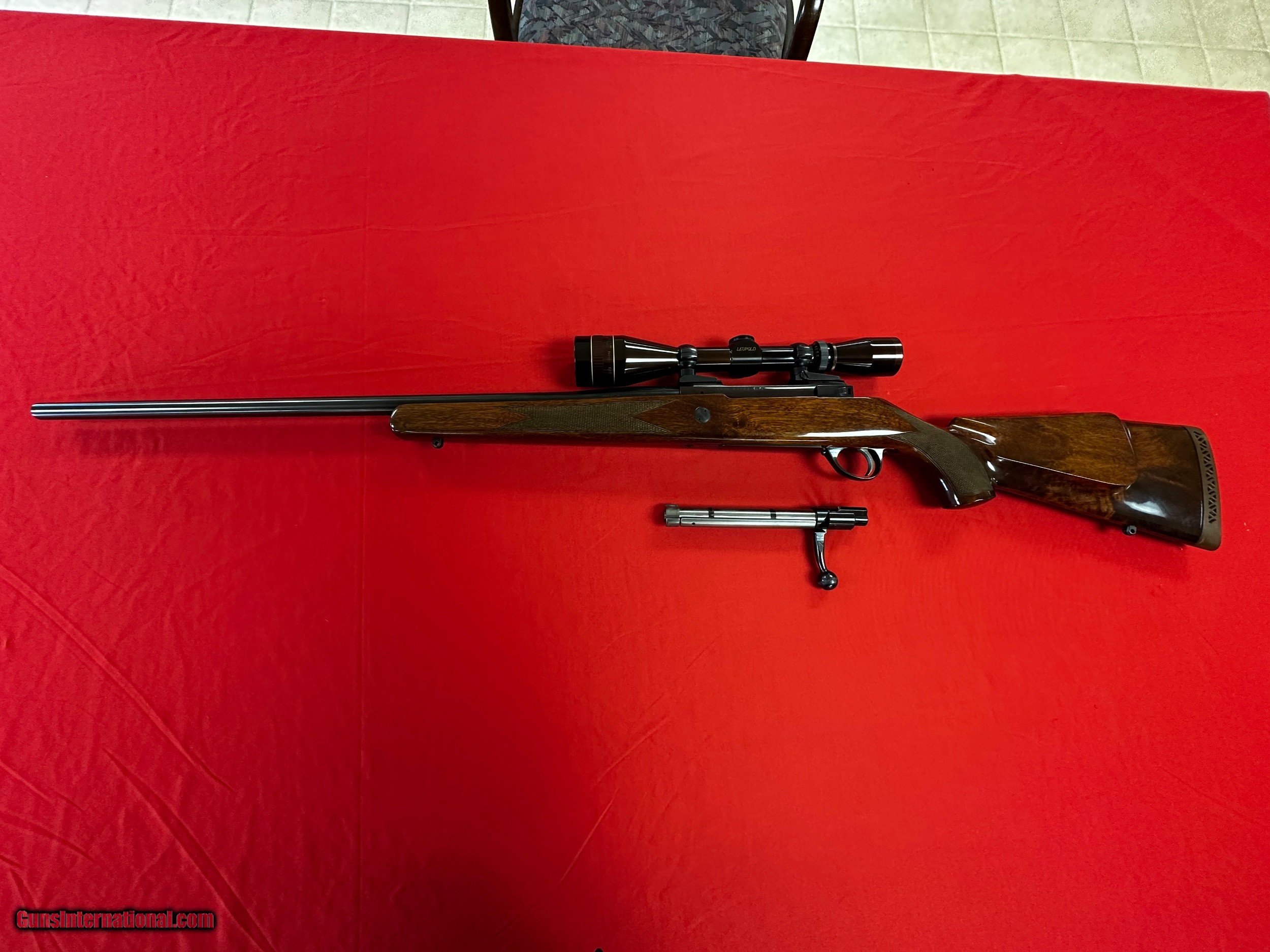 Description: Beautiful old Sako Finnbear in the sought after 25-06. 98% metal and wood finish. The old Leupold 3x9 AO is in excellent condition but shows finish color variation. Bore shines like glass. Nice old Sako for the collection or the woods! SOLD |