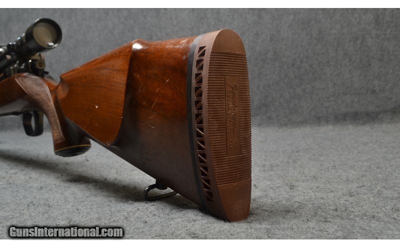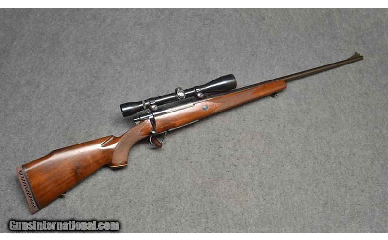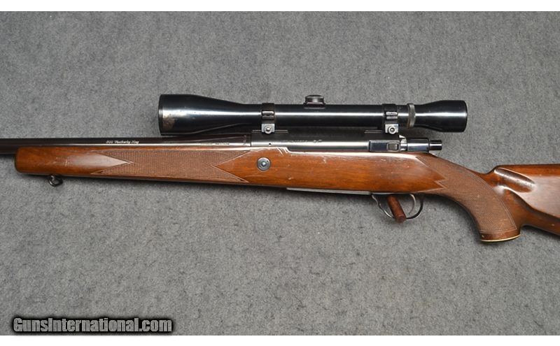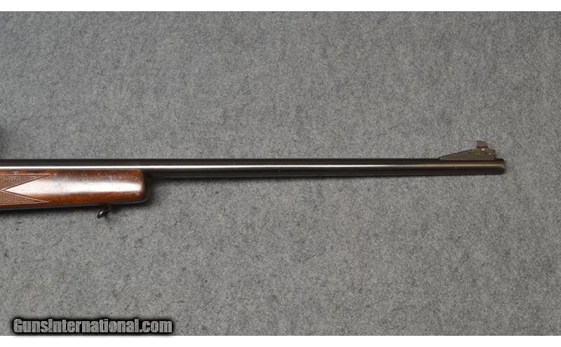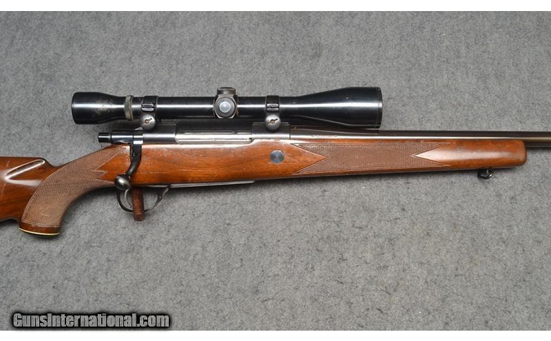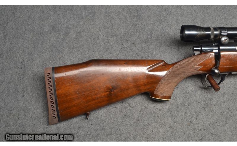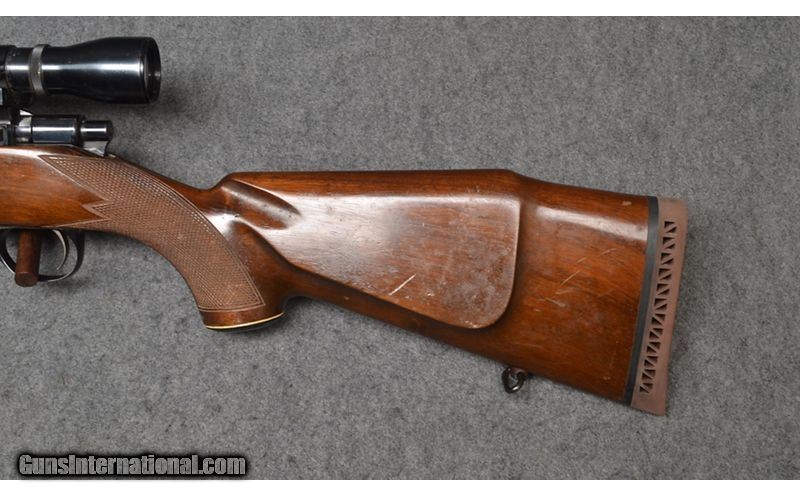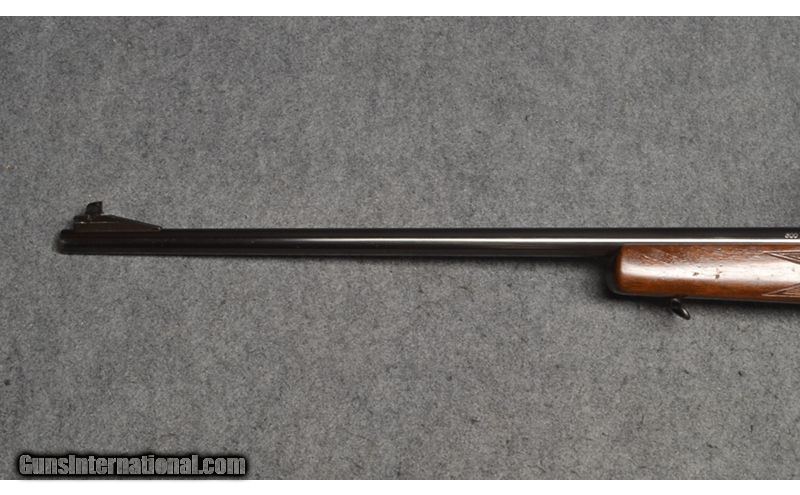 Description: This bolt action rifle is a Finnish made Sako Finnbear L61R chambered for .300 Weatherby Mag. This rifle features a front blade sight, integral rails on the receiver for mounting scopes, and a checkered wood stock. This rifle was originally chambered for .300 Magnum, and was rechambered for .300 Weatherby Magnum by the previous owner, and has been restamped and checked by a gunsmith. The metal and finish are in good condition, with a few light handling marks along the barrel and light surface rust on the magazine floor plate and trigger guard. The stock is in fair shape, with no cracks but a couple of small chips and heavy handling wear throughout. Comes with a set of .300 Weatherby mag reloading dies. .300 Weatherby Magnum SOLD Metal Condition: Overall good condition Wood Condition: Overall fair condition Bore Condition: "Bright and shiny, crisp rifling Barrels: 24in Bofors steel Stock Dimensions: 14in LOP Butt Pad: 1in vented Pachmeyer recoil pad Weight: 8 lbs 4oz Sights: Weaver K6 60C Item Location: Wichita, KS |