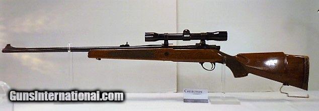 Description: Sako Finnbear L61R in .375 Magnum. 25" barrel. Williams Express Sights. Dovetail front sight. Monte Carlo Stock. Redfield Lo-Pro 3X9 scope. The gun is in excellent condition. I believe this gun has never been fired. We imported this gun from France as part of a collection. SOLD Manufacturer: SAKO Model: L61R FINNBEAR Serial Number: 501216 Caliber Info: .375 Mag. Condition: Like New Metal Condition: EXCELLENT Wood Condition: EXCELLENT Bore Condition: EXCELLENT Finish: BLUED Item Location: FLORIDA |