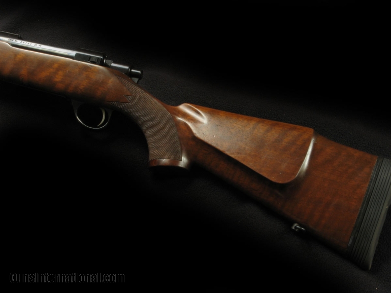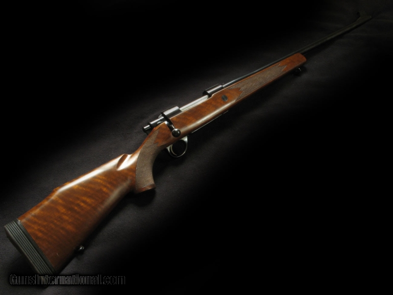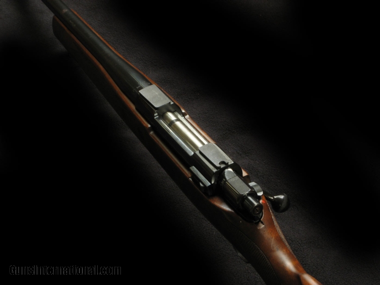 Description: Unusually nice wood wears a new Limbsaver pad (stock not shortened) 14 1/4" lop. 24" bbl with original front sight and hood, no rear as they all are. Action finish is very good but barrel has some exterior rust spots the worst pea sized, blood perhaps. Bore is good but not perfect .. some roughness in grooves if you look hard. Would make an excellent shooter SOLD |