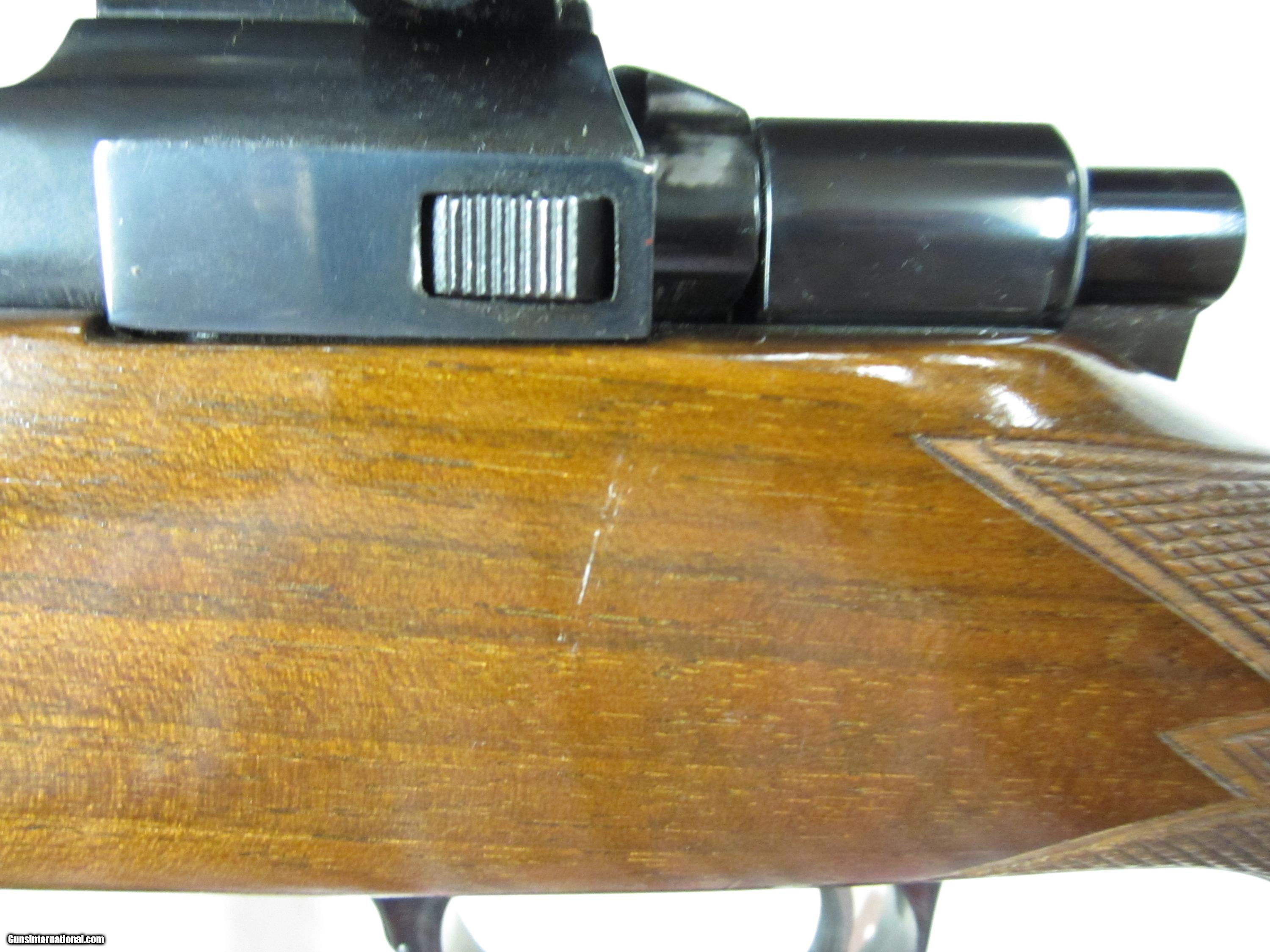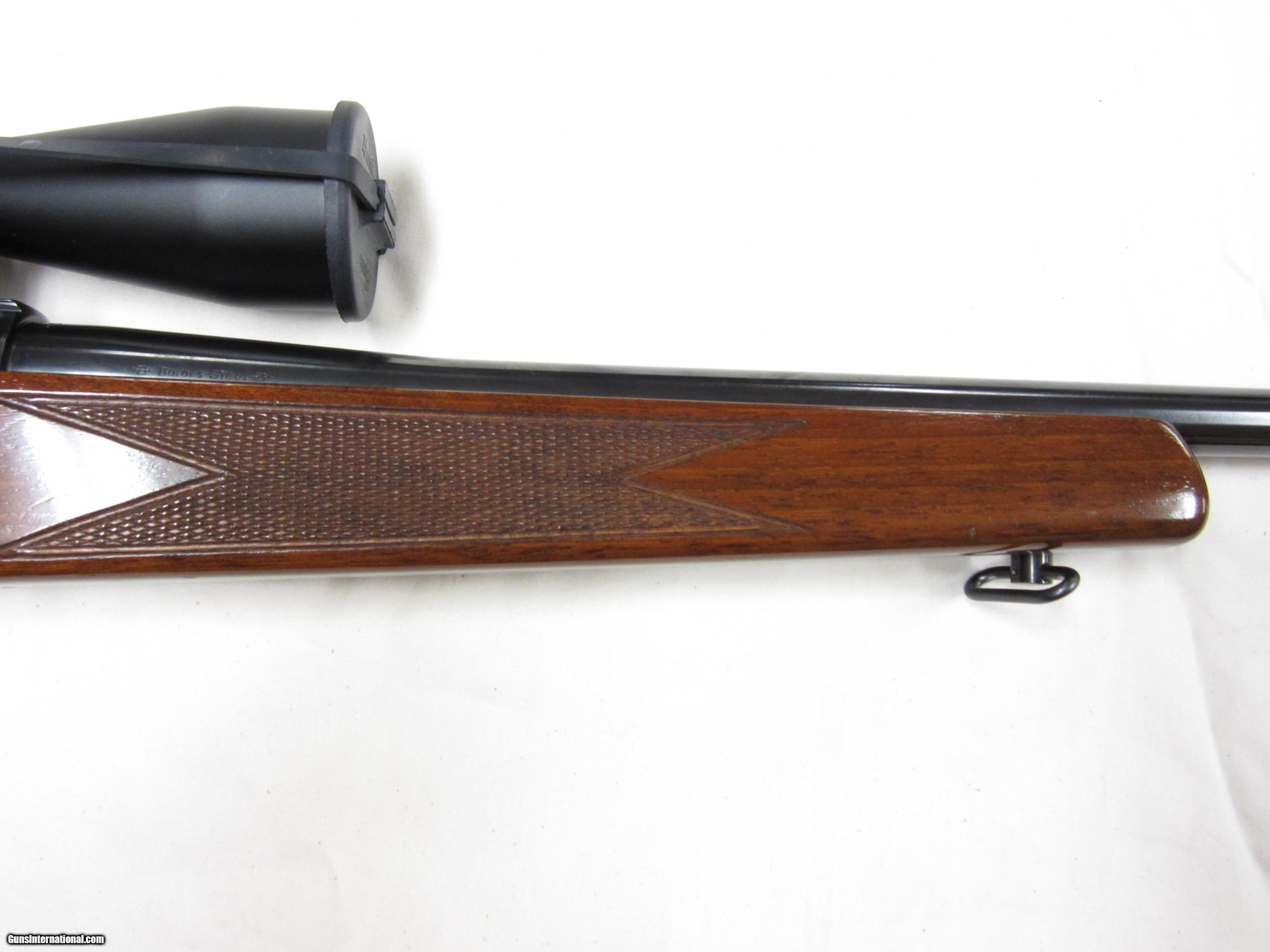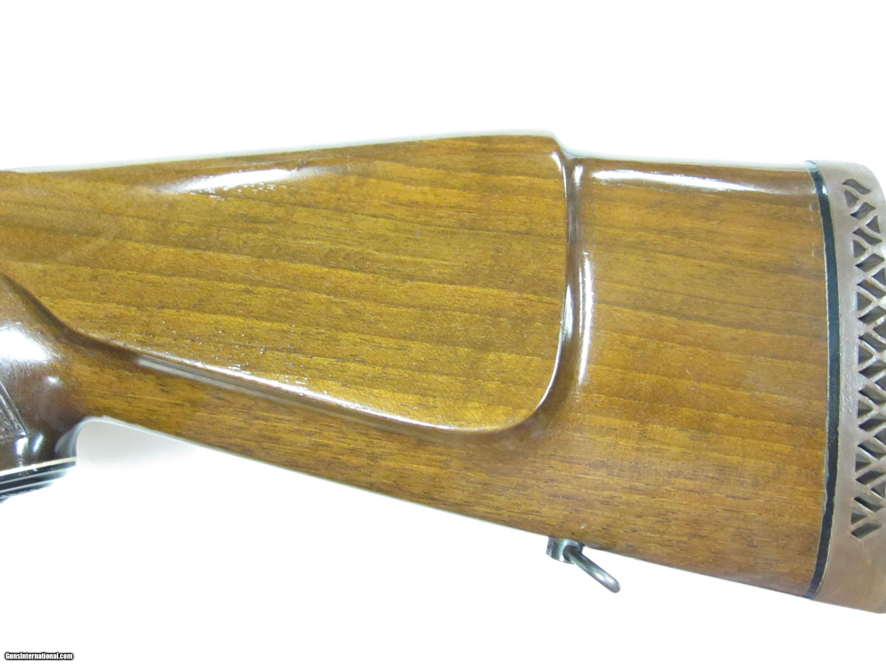 Description: Pre-Garcia Sako Finnbear 30-06. Retains 95% blue with some fading on the floor plate. Stock exhibits a few scattered minor scratches in the finish and checkering remains crisp. Factory ventilated recoil pad is installed. Sights include a standing blade front and a very nice Burris 3 X 9 Fullfield II scope. Wonderfully smooth action and crisp trigger. No wonder custom rifle makers preferred this action. SOLD |