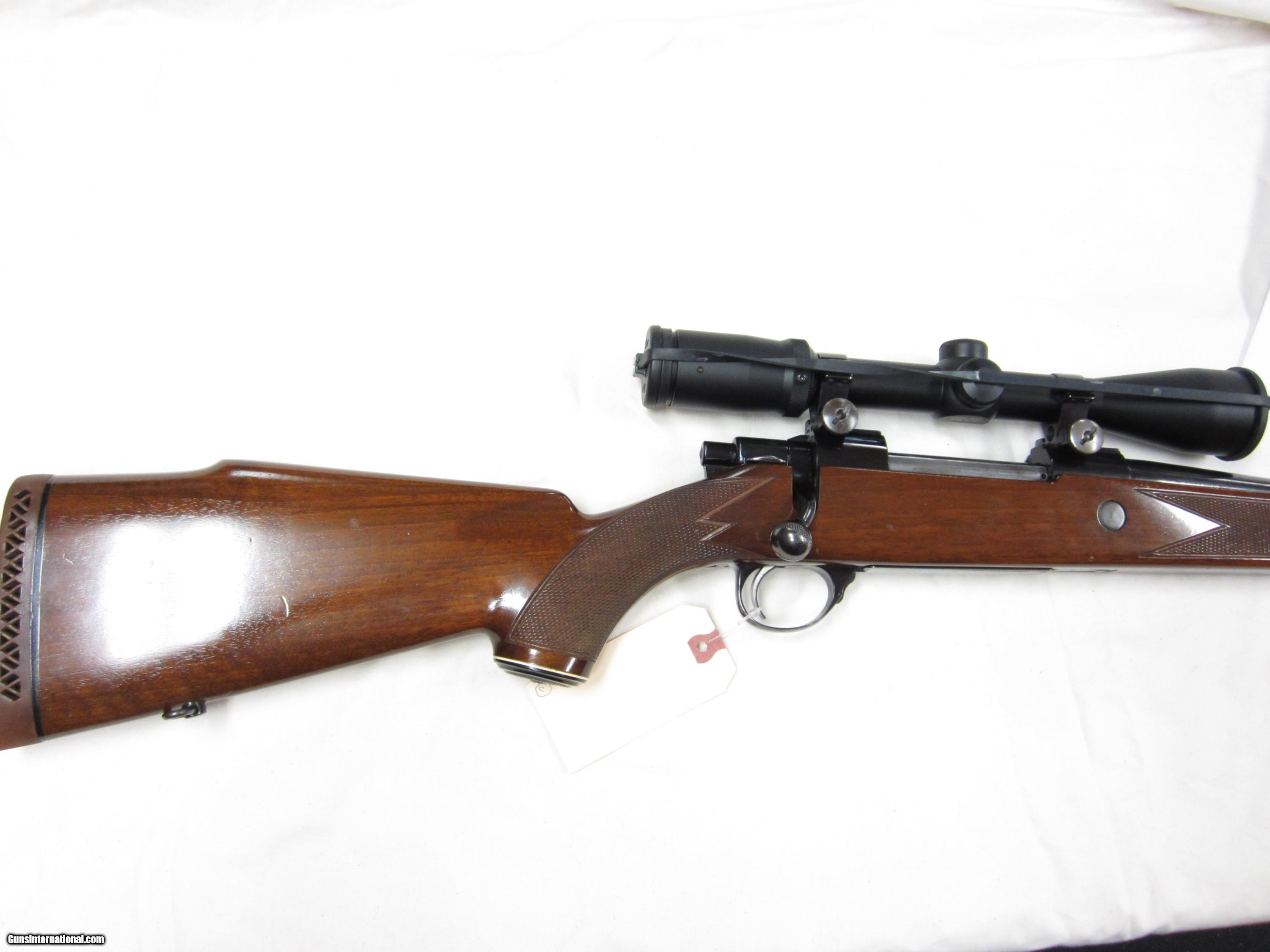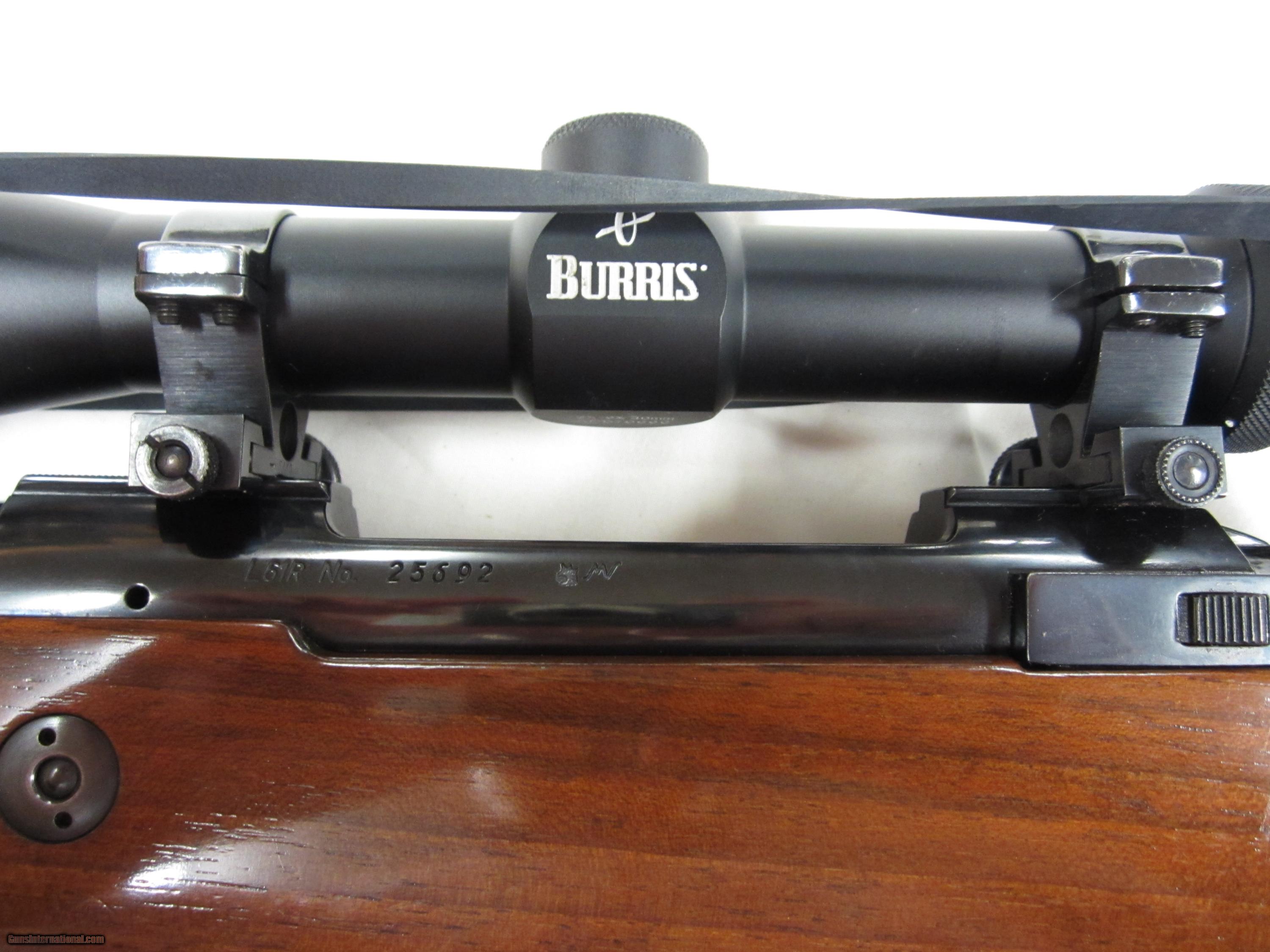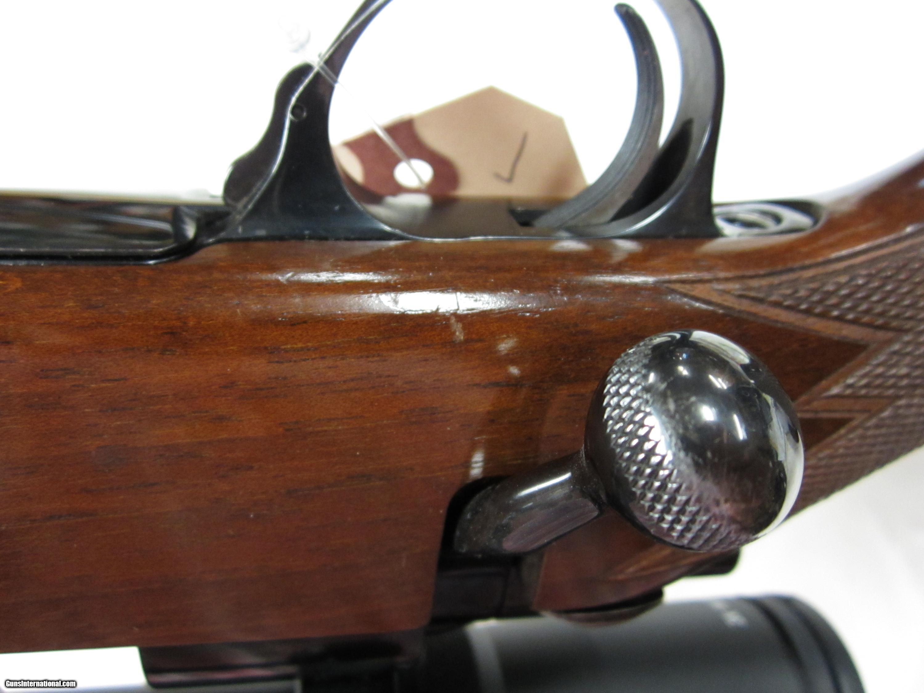 Description: Pre-Garcia Sako Finnbear 30-06. Retains 95% blue with some fading on the floor plate. Stock exhibits a few scattered minor scratches in the finish and checkering remains crisp. Factory ventilated recoil pad is installed. Sights include a standing blade front and a very nice Burris 3 X 9 Fullfield II scope. Wonderfully smooth action and crisp trigger. No wonder custom rifle makers preferred this action. SOLD |