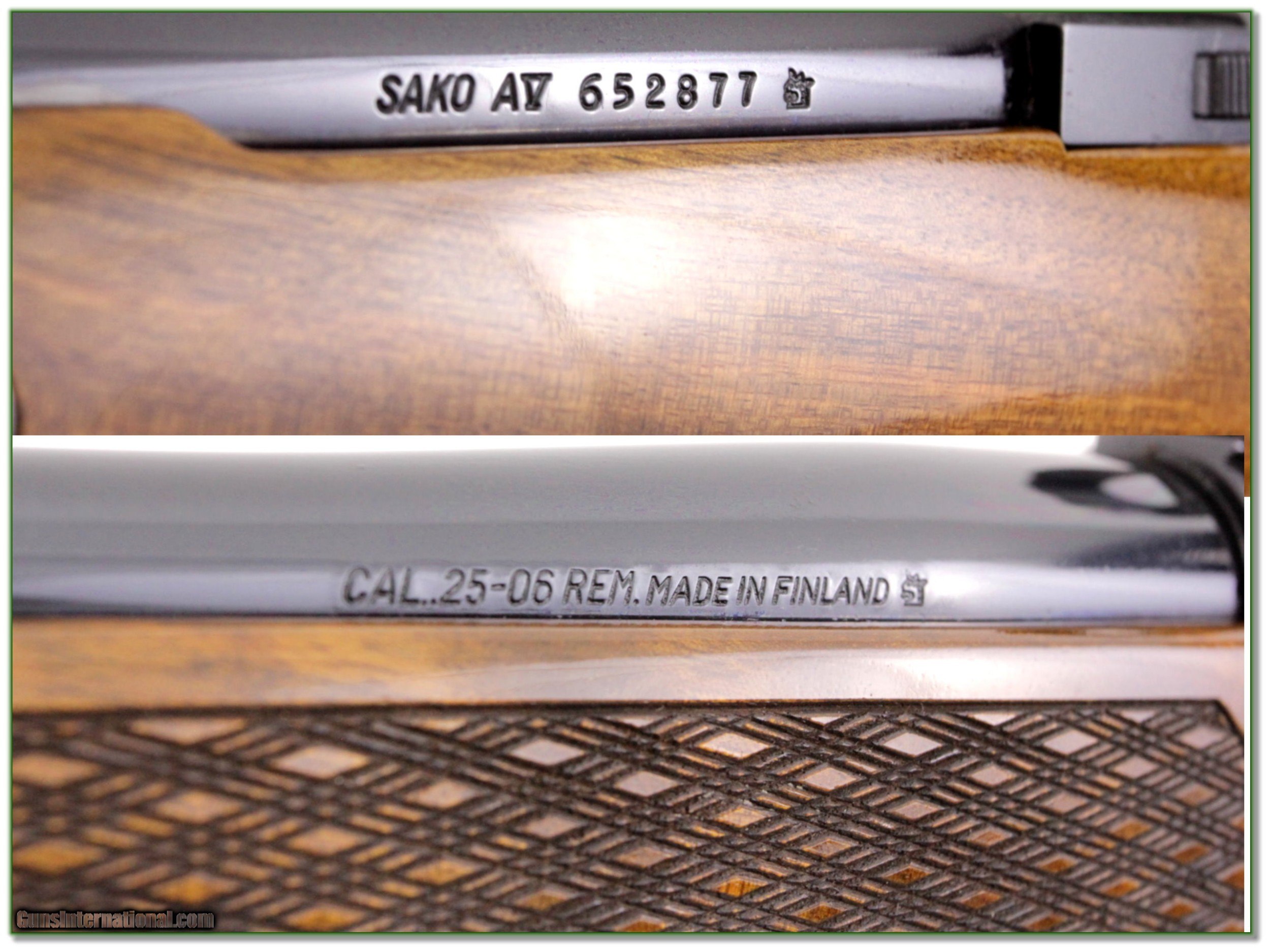 Description: This is a VERY hard to find Sako AV Deluxe in 25-06. It is in near new condition with no marks I can find. It comes as seen with bases and rings and has a 23in barrel. Not many of these were made in 25-06 and you will look hard to find a nicer one! It will make an impressive hunting gun or be a fine addition to your collection. Shipping with insurance is $39. Please email me with any questions or larger pictures. (Consign your quality firearms with Shooting Investments for only 12%! Let me know if you have any you would like to sell!) 19-0902 Payment: Payment is by Money Order, Cashiers Check or Personal Check. I can now also accept Credit Cards (MasterCard, Visa, Discover & American Express) with a 3% convenience fee. PayPal can be used for some items but never for firearms. Shipping: The shipping charge will be listed in each description. It is $39 for most firearms. Some heavy guns or those insured for over $2000 will be higher. Shipments to Alaska and Hawaii are higher because air shipment is required. Most firearms are shipped on Tuesday and Thursday and usually in 5 days of receipt of payment. We package all shipments carefully and insure them. Optics are shipped Priority Mail and most other non-firearm shipments are shipped First Class. Returns: Our return policy is simple. If for any reason you are not pleased with your purchase, you may return your item for a full refund of purchase price. Ammunition cannot be returned. It is important to us that you are happy. Guns cannot be fired or dissembled before returning them and they must be returned in the same condition as received. Notification of a return must occur with-in 3 days of receipt at your dealer. Shipping, convenience and dealer fees are not refundable and are the responsibility of the buyer. Lay-a-way: If needed, we offer a 60 day lay-a-way option on most firearms. It is 1/3 now, 1/3 in 30 days and 1/3 in 60 days. Lay-a-way firearm sales are final and if not completed the first payment cannot be returned. Consigning your firearms with Shooting Investments: We will help you get top dollar for your firearms. While most local guns shops charge 20% or more, our fee is only 12% with a minimum of $75. At your local gun shop it might take months to sell. Selling on-line provides instant access to thousands of interested buyers. You won’t find any other on-line dealer willing to sell your firearms for only 12% or listing every gun on 3 separate s. Selling through an House typically costs the seller 15% and the buyer an addition 15% (so 30%) and you have to wait several months to sell and longer to receive funds. If properly priced, we will sell your firearms in a few weeks. Send us an email or give us a call and we’ll explain how easy it is for you to get top dollar. Trading: Trading for use is really just buying your gun to re-sell. If you have a gun you want to trade, please email a picture and we will let you know what we can give or it. You will always get more if we sell it for you on consignment. Help for California Buyers: We are happy to ship to California. It is the buyer’s responsibility to make sure any item you buy is legal in your state. We are also happy to help with your purchase of a firearm from someone other than us. If you see a gun you would like to buy but the seller can’t or won’t ship to California they can ship to use and we’ll then ship it to your California dealer. The cost for this service is only $30 + shipping. Let us know if we can help! SOLD |