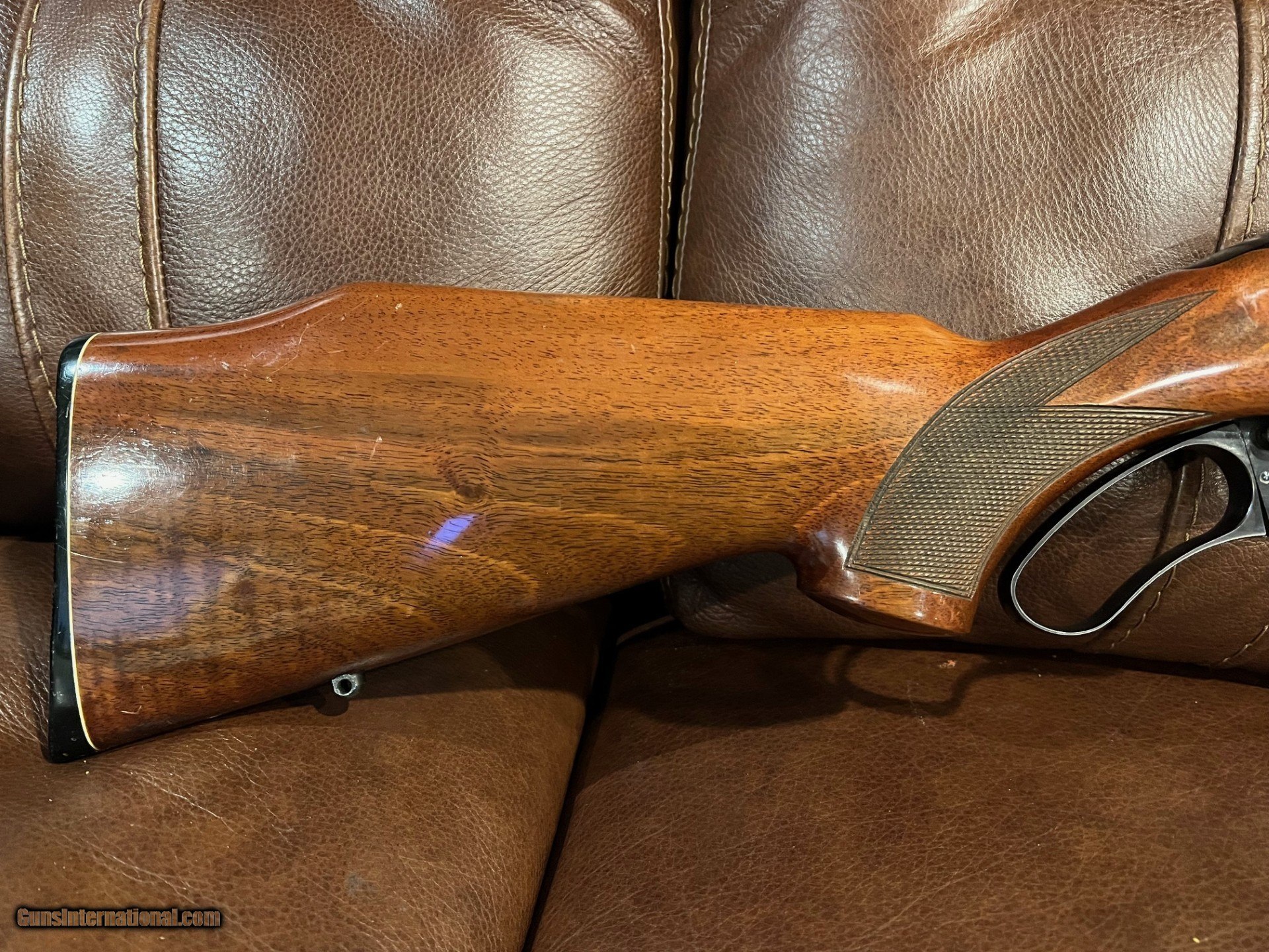 Description: This is a real nice rifle in good shape. There are a few minor handling marks, but overall it is in good shape. The bore is bright. Bluing is good over the entire rifle, with some thinning at the muzzle on the sharp edges. This is a great gun for hunting and shooting. It is a Garcia import and over 50 years old, so can be transferred as a Curio/relic. The Sako Finnwolf is known for it's bolt action accuracy in a fast handling lever action. It has bases on it, ready to scope and be shot...$1999.00 SOLD |