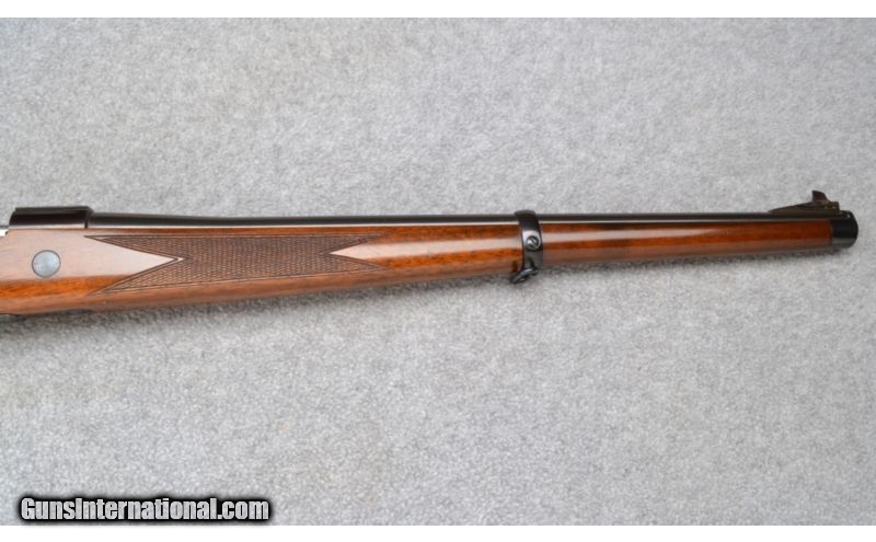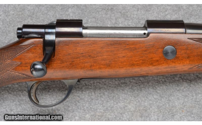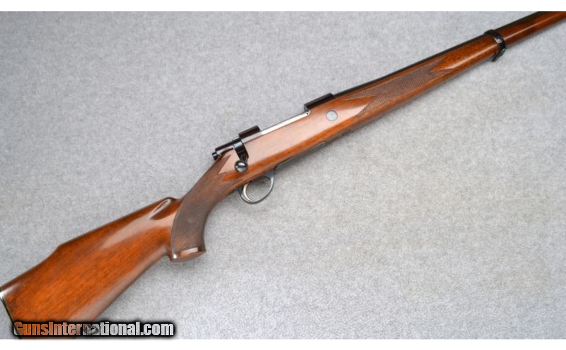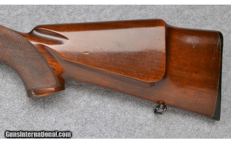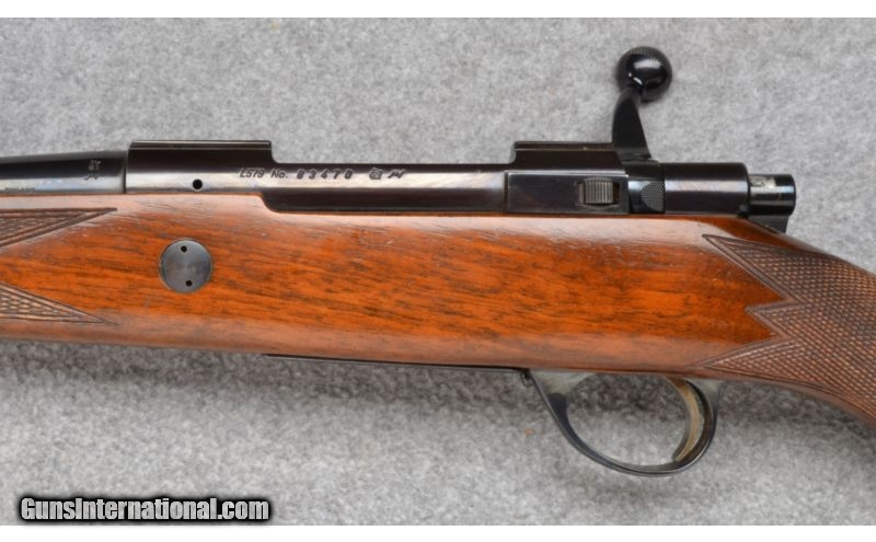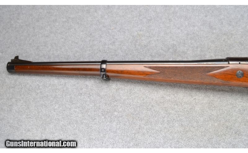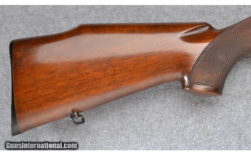 Description: Wood shows some light hunting marks with a repaired crack behind upper and lower tang. Blue shows only very light wear with an excellent bore. No box. SOLD Manufacturer: S/N 83XXX Caliber Info: .308 Win. Metal Condition: Very Good Wood Condition: Very Good Bore Condition: Excellent Barrels: 20 Triggers: Factory Stock: Checkered Walnut Pistol grip Stock Dimensions: 13 3/4" LOP Fore End: Checkered Walnut Fullstock Butt Pad: Black Plastic Weight: 6 1/2 LB Sights: Hooded Bead Front Item Location: Wheeling, WV |