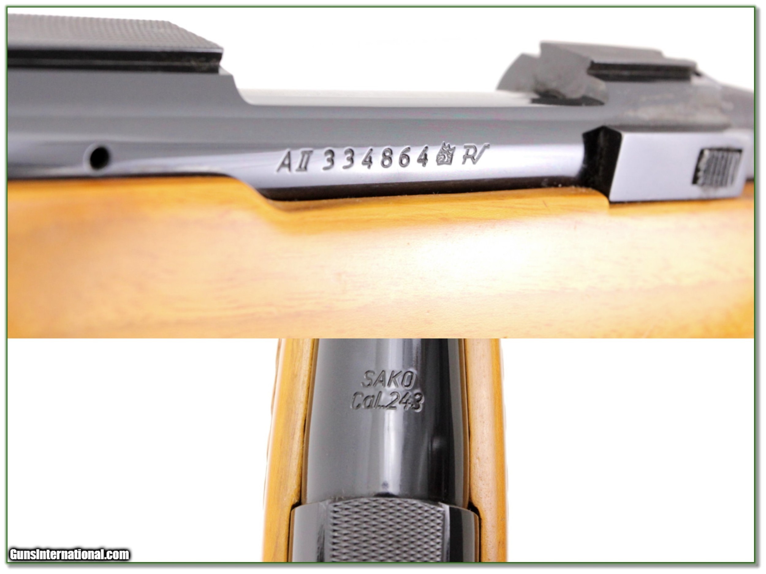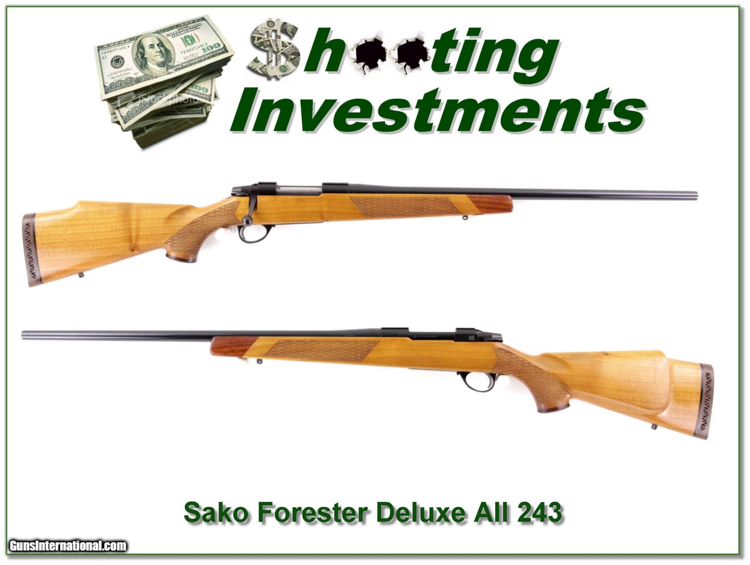 Description: This is an excellent condition Sako AII Deluxe in 243 Winchester. The blue is excellent! The barrels is 23in. It has very nice blond wood with nice horizontal lines and just a couple insignificant handing marks. Shipping with insurance is $39. Please email me with any questions or larger pictures. (Consign your quality firearms with Shooting Investments for only 12%! Let me know if you have any you would like to sell!) 18-1251 Payment: Payment is by Money Order, Cashiers Check or Personal Check. I can now also accept Credit Cards (MasterCard, Visa, Discover & American Express) with a 3% convenience fee. PayPal can be used for some items but never for firearms. Shipping: The shipping charge will be listed in each description. It is $39 for most firearms. Some heavy guns or those insured for over $2000 will be higher. Shipments to Alaska and Hawaii are higher because air shipment is required. Most firearms are shipped on Tuesday and Thursday and usually in 5 days of receipt of payment. We package all shipments carefully and insure them. Optics are shipped Priority Mail and most other non-firearm shipments are shipped First Class. Returns: Our return policy is simple. If for any reason you are not pleased with your purchase, you may return your item for a full refund of purchase price. Ammunition cannot be returned. It is important to us that you are happy. Guns cannot be fired or dissembled before returning them and they must be returned in the same condition as received. Notification of a return must occur with-in 3 days of receipt at your dealer. Shipping, convenience and dealer fees are not refundable and are the responsibility of the buyer. Lay-a-way: If needed, we offer a 60 day lay-a-way option on most firearms. It is 1/3 now, 1/3 in 30 days and 1/3 in 60 days. Lay-a-way firearm sales are final and if not completed the first payment cannot be returned. Consigning your firearms with Shooting Investments: We will help you get top dollar for your firearms. While most local guns shops charge 20% or more, our fee is only 12% with a minimum of $75. At your local gun shop it might take months to sell. Selling on-line provides instant access to thousands of interested buyers. You won’t find any other on-line dealer willing to sell your firearms for only 12% or listing every gun on 3 separate s. Selling through an House typically costs the seller 15% and the buyer an addition 15% (so 30%) and you have to wait several months to sell and longer to receive funds. If properly priced, we will sell your firearms in a few weeks. Send us an email or give us a call and we’ll explain how easy it is for you to get top dollar. Trading: Trading for use is really just buying your gun to re-sell. If you have a gun you want to trade, please email a picture and we will let you know what we can give or it. You will always get more if we sell it for you on consignment. Help for California Buyers: We are happy to ship to California. It is the buyer’s responsibility to make sure any item you buy is legal in your state. We are also happy to help with your purchase of a firearm from someone other than us. If you see a gun you would like to buy but the seller can’t or won’t ship to California they can ship to use and we’ll then ship it to your California dealer. The cost for this service is only $30 + shipping. Let us know if we can help! SOLD |