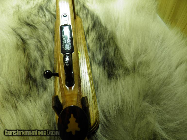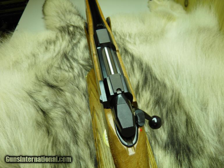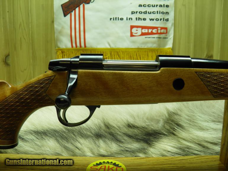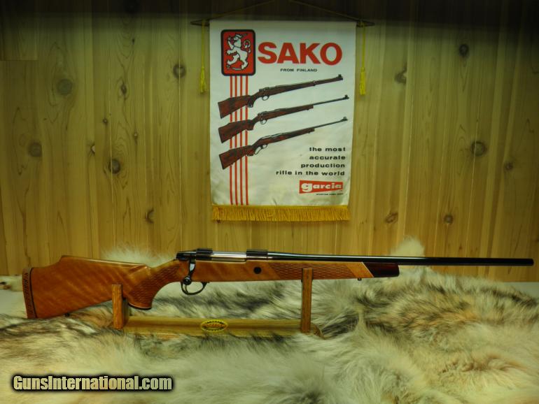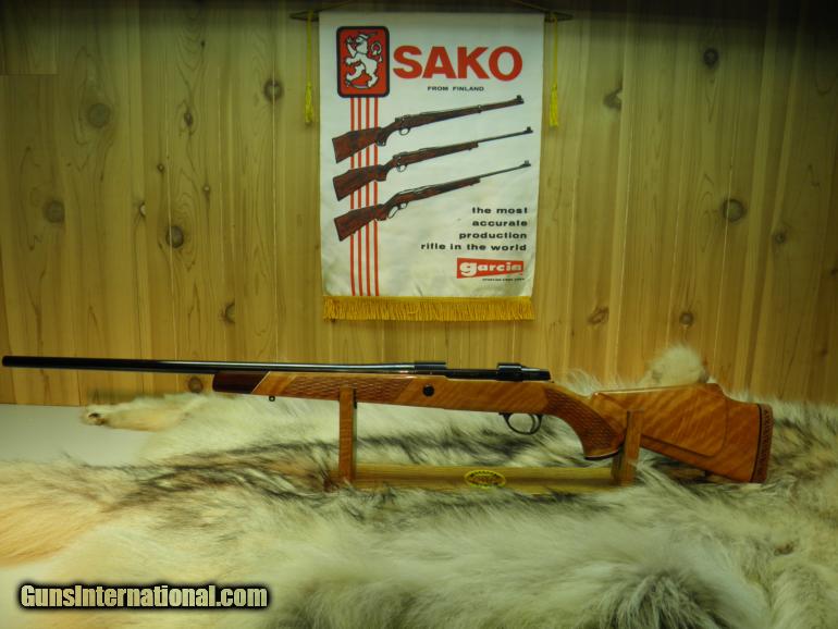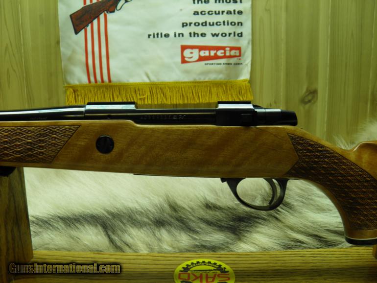 Description: SAKO FORESTER DELUXE GRADE STOEGER CAL: 308 WIN. MANF: 1982, BARREL LENGTH 23 1/2" WITH A 1-12" TWIST, OVERALL LENGTH 42 1/2", APPROX: WEIGHT 6 3/4LBS, LENGTH OF PULL TO FACTORY RECOIL PAD 13 1/2", MAGAZINE CAPACITY FIVE ROUNDS, CLEAN AND CRISP ADJUSTABLE TRIGGER WITH THUMB SAFTEY, INTEGRAL DOVE-TAIL RALS FOR SCOPE RING MOUNTING, STEEL TRIGGER GUARD AND FLOOR PLATE , HAND ENGRAVED AND SILVER OVER-LAID, BOLT BODY AND GUIDE ARE HIGHLY POLISHED, FOR SMOOTH AND EASE OPERATION, METAL SURFACES ARE HIGHLY POLISHED AND DEEPLY BLUED FOR THE MOST BRILLIANTLY DEEPLY LUSTROUS FINISH, STOCKED WITH OUTSTANDING FIDDLE-BACK EUROPEAN WALNUT, WITH MONTE CARLO CHEECK-PIECE, TRIMMED IN EXOTIC WOOD FOREND TIP AND GRIP CAP WITH THE FORESTER INLAY, CUSTOM HAND CUT SKIP-LINE DIAMOND CHECKERING, AND HAND FINISHED IN A HIGH GLOSS, ALL THESE FEATURES ADD UP TO SAKOS DELUXE HIGH QUALITY!! "CONDITION" BLUE 99.5%/ WOOD 99.5%,BORE NICE AND BRIGHT WITH A MIRROR SHINE,, VERY SHARP PRONOUNCED RIFLING, VERY WELL CARED FOR RIFLE, FOR THE SERIOUS COLLECTOR OR PROFESSIONAL HUNTER! SOLD |