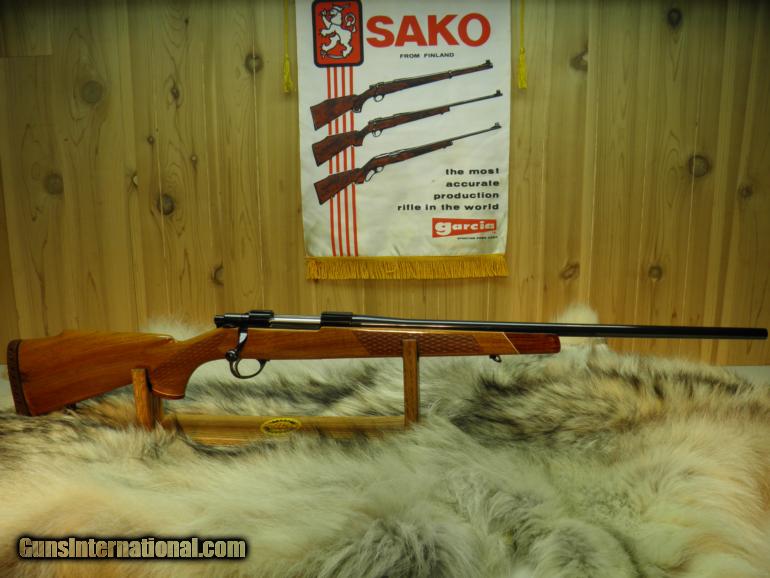 Description: SAKO FORESTER DELUXE GRADE MODEL L579 CAL: 243 WIN. MANF: 1971, BARREL LENGTH 23 1/2" WITH A 1 -10" TWIST, APPROX: WEIGHT 7 1/4 LBS, OVERALL LENGTH 42 1/2", LENGTH OF PULL TO FACTORY RECOIL PAD 13 1/2", MAGAZINE CAPACITY FOUR ROUNDS, CLEAN AND CRISP ADJUSTABLE TRIGGER WITH THUMB SAFTEY, INTEGRAL DOVE-TAIL RAILS FOR SCOPE RING MOUNTING, STEEL TRIGGER GUARD AND FLOOR PLATE WHICH ARE HAND ENGRAVED AND SILVER OVER-LAID, BOLT BODY AND GUIDE ARE HIGHLY POLISHED FOR SMOOTH AND EASE OPERATION, NICE FIGURED EUROPEAN WALNUT WITH MONTE-CARLO CHEECK-PIECE, FITTED WITH ROSEWOOD FOREND TIP AND GRIP CAP WITH THE FORESTER INLAY, ATTACHED SWIVELS, CUSTOM SKIP-LINE DIAMOND HAND-CUT CHECKERING, HAND FINISHED IN HIGH GLOSS BY MASTER FINNISH CRAFTSMAN, ALL METAL SURFACES POLISHED TO A HIGH GLOSS AND EXPERTLY BLUED TO PROVIDE THE DEEPEST MOST BRILLIANTLY LUSTROUS FINISH. "OVERALL-CONDITION" BLUE/WOOD 99.5% MABEY TESTFIRED??? I DONT BELEIVE SO. SAKOS RELIABILITY AND SUPERIOR FIELD PERFORMANCE AND ACCURANCY, AND TOP IT OFF WITH BEAUTIFUL LOOKS, WHAT MORE CAN A GUY WHAT. SOLD |
