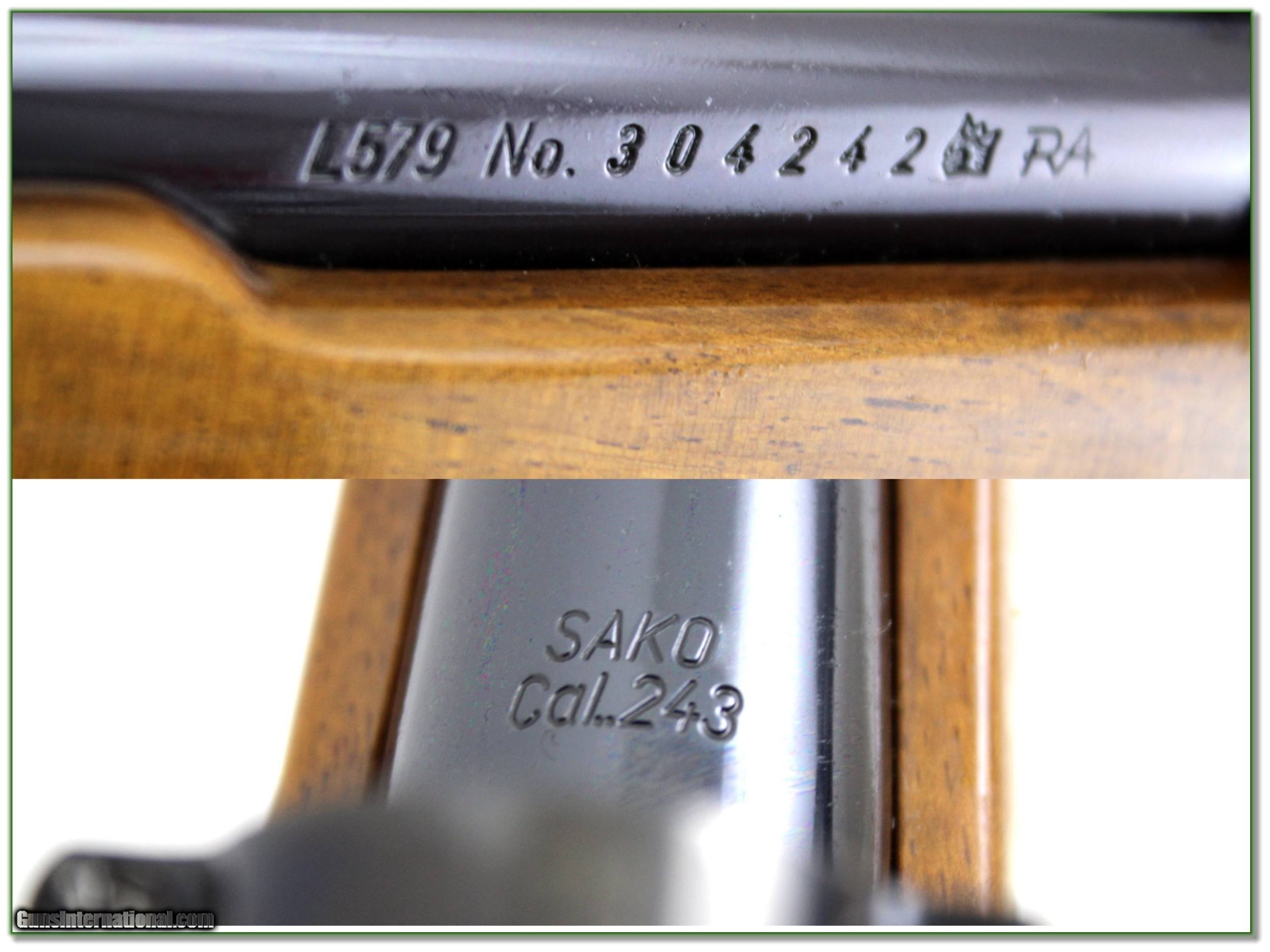 Description: Collectors, this is an excellent condition Sako L579 Deluxe in 243 Winchester. It has beautiful honey colored wood and comes with factory rings as seen. I find no marks of note. It will make a find addition to your collection! Shipping and insurance is $49. Please email me with any questions or larger pictures. (Consign your quality firearms with Shooting Investments for only 12%! Let me know if you have any you would like to sell!) 22-1279 Payment: Payment is by Money Order, Cashiers Check or Personal Check. I can now also accept Credit Cards (MasterCard, Visa, Discover & American Express) with a 3% convenience fee. Shipping: The shipping charge will be listed in each description. It is $49 for most long guns. Some heavy guns, over 48in boxes or those insured for over $2000 will be higher. Shipments to Alaska and Hawaii are higher because air shipment is required. Most firearms are shipped on Tuesday and Thursday and usually in 5 days of receipt of payment. We package all shipments carefully and insure them. Optics are shipped Priority Mail and most other non-firearm shipments are shipped First Class. Returns: Our return policy is simple. If for any reason you are not pleased with your purchase, you may return your item for a full refund of purchase price. Ammunition cannot be returned. It is important to us that you are happy. Guns cannot be fired or dissembled before returning them and they must be returned in the same condition as received. Notification of a return must occur with-in 3 days of receipt at your dealer. Shipping, convenience and dealer fees are not refundable and are the responsibility of the buyer. Lay-a-way: If needed, we offer a 60 day lay-a-way option on most firearms. It is 1/3 now, 1/3 in 30 days and 1/3 in 60 days. Lay-a-way firearm sales are final and if not completed the first payment cannot be returned. Consigning your firearms with Shooting Investments: We will help you get top dollar for your firearms. While most local guns shops charge 20% or more, our fee is only 12% with a minimum of $75. At your local gun shop it might take months to sell. Selling on-line provides instant access to thousands of interested buyers. You won’t find any other on-line dealer willing to sell your firearms for only 12% or listing every gun on 3 separate s. Selling through an House typically costs the seller 15% and the buyer an addition 15% (so 30%) and you have to wait several months to sell and longer to receive funds. If properly priced, we will sell your firearms in a few weeks. Send us an email or give us a call and we’ll explain how easy it is for you to get top dollar. Trading: Trading for use is really just buying your gun to re-sell. If you have a gun you want to trade, please email a picture and we will let you know what we can give or it. You will always get more if we sell it for you on consignment. Help for California Buyers: We are happy to ship to California. It is the buyer’s responsibility to make sure any item you buy is legal in your state. We are also happy to help with your purchase of a firearm from someone other than us. If you see a gun you would like to buy but the seller can’t or won’t ship to California they can ship to use and we’ll then ship it to your California dealer. The cost for this service is only $30 + shipping. Let us know if we can help! SOLD |