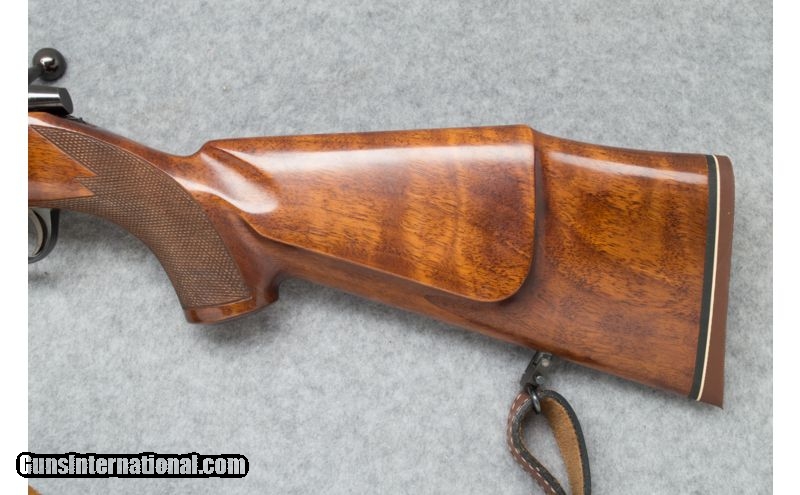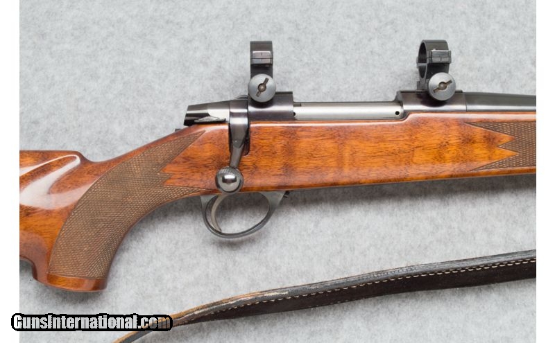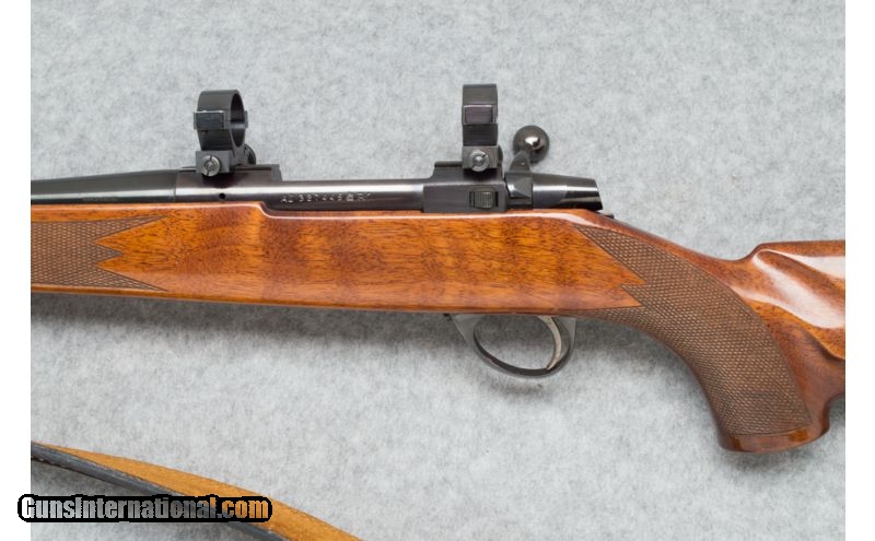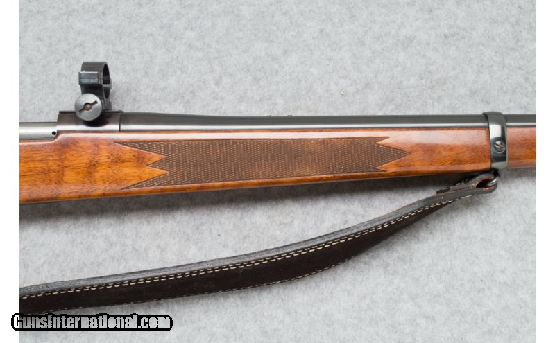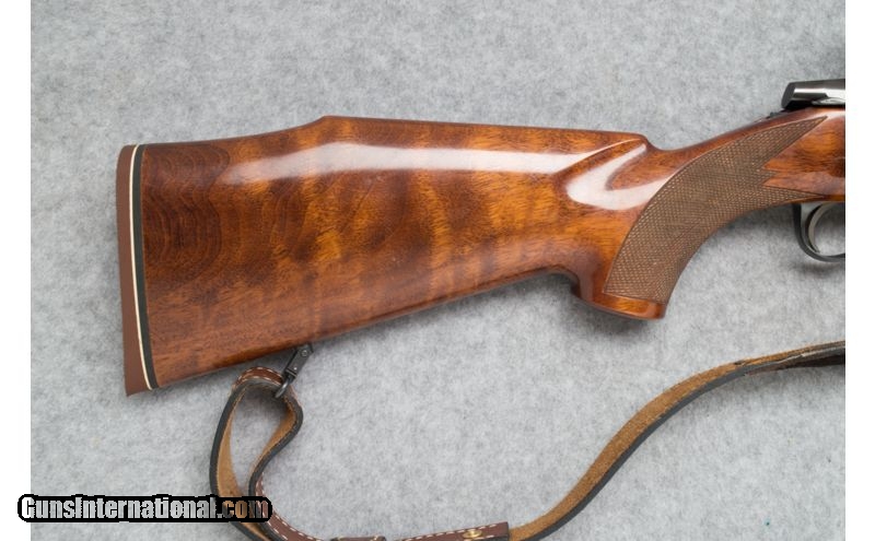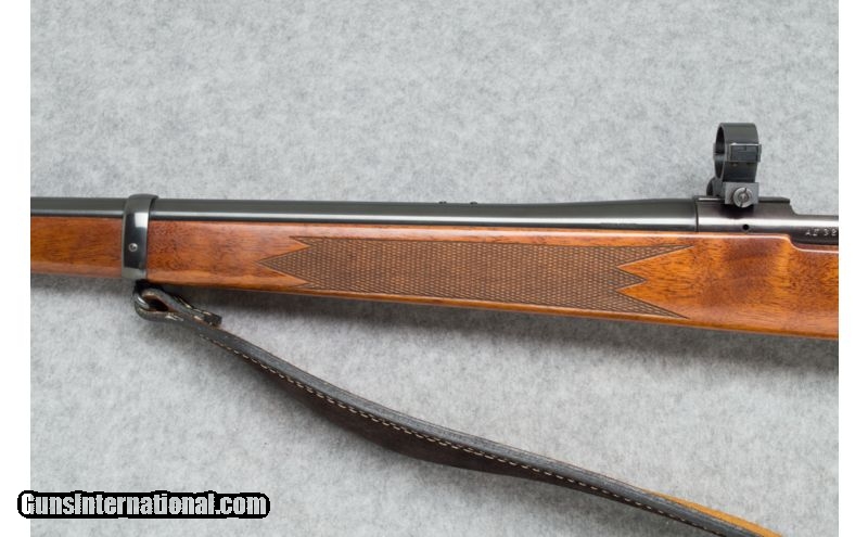 Description: Used. SOLD Caliber Info: .243 Win. Metal Condition: Excellent Wood Condition: Very good; a few handling marks Bore Condition: Clean and sharp Barrels: 20 Triggers: Grooved target style Stock: Checkered pistol grip walnut; full length with cheekpiece Stock Dimensions: LOP - 13 3/4 Fore End: Checkered walnut; barrel band and end cap Butt Pad: Red rubber pad Weight: 7 lbs. 12 oz. Sights: Rear sight removed; ramp front with bead Extras: Original Sako scope rings. Item Location: Sun Prairie, WI |