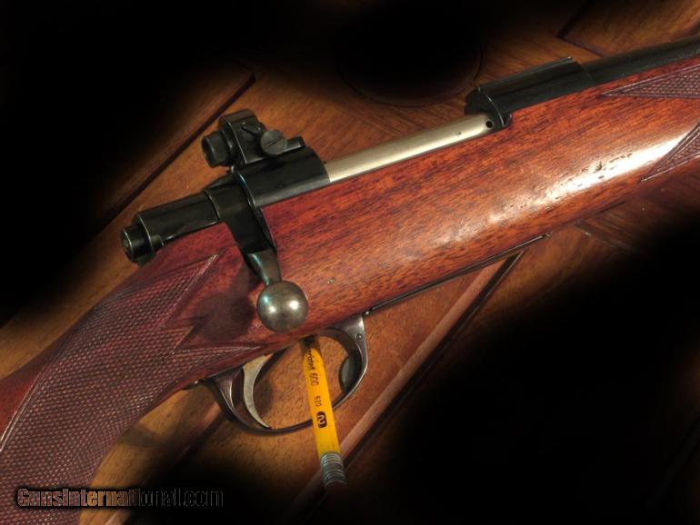 Description: Rare early 24" rifle with one piece mannlicher stock and OEM aperture sight, looks to be all original. Missing sight hood otherwise all there and in excellent condition. SOLD |