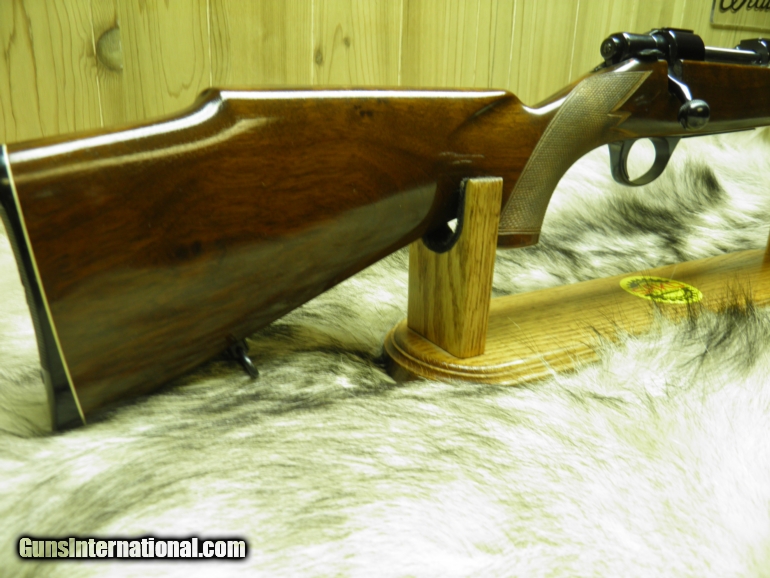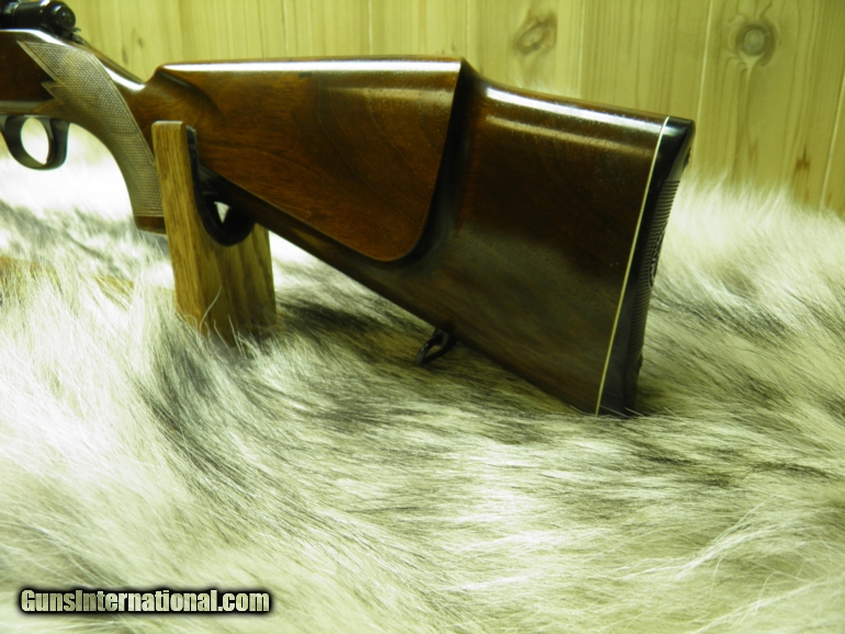 Description: PRE: 72 "BOFORS STEEL" SAKO FORESTER MODEL L579 CAL. 243 HEAVY BARREL/ VARMINTER MANF: 1969 BARREL LENGTH 24" WITH A 1 - 10" TWIST,, APPROX: WEIGHT 8 1/2 LBS, OVERALL LENGTH 42 3/4", LENGTH OF PULL IS 13 1/2", MAGAZINE CAPACITY FOUR ROUNDS, CLEAN AND CRISP ADJUSTABLE TRIGGER, WITH THUMB SAFTEY, RECEIVER HAS TAPERED DOVETAIL RAILS, FOR SCOPE RINGS, BOLT BODY AND GUIDE ARE HIGHLY POLISHED , FOR SMOOTH AND EASE OPERATION, STEEL TRIGGER GUARD WITH HINDGED FLOOR PLATE, FOR QUICK UNLOADING, STOCK IS EUROPEAN WALNUT, WITH MONTE-CARLO, CHEECK-PIECE, VARMINT STYLE,EXTRA-WIDE BEAVERTAIL FOREND FOR ADDED SUPPORT AND STEADINESS, HAND CUT-CHECKERING, FULL WRAP ON FOREND, ATTACHED SWIVELS, STOCK FINISHED IN HIGH GLOSS, METAL SURFACES HAVE THE HIGH POLISH DEEP RICH BLUEING, "OVERALL CONDITION" BLUE AND WOOD 99.9%+ LOOKS AND APPEARS TO BE UNFIRED!! SOLD |