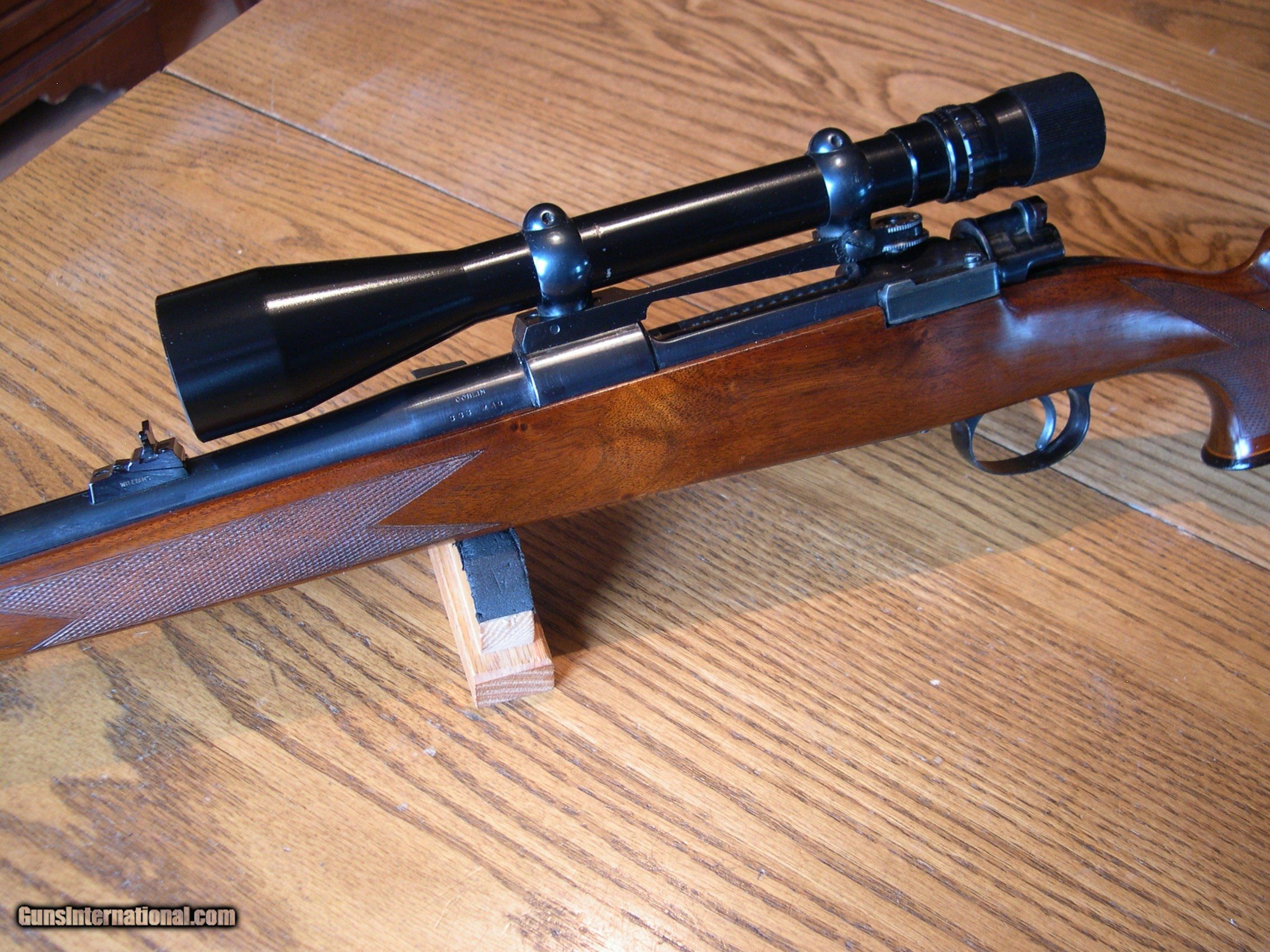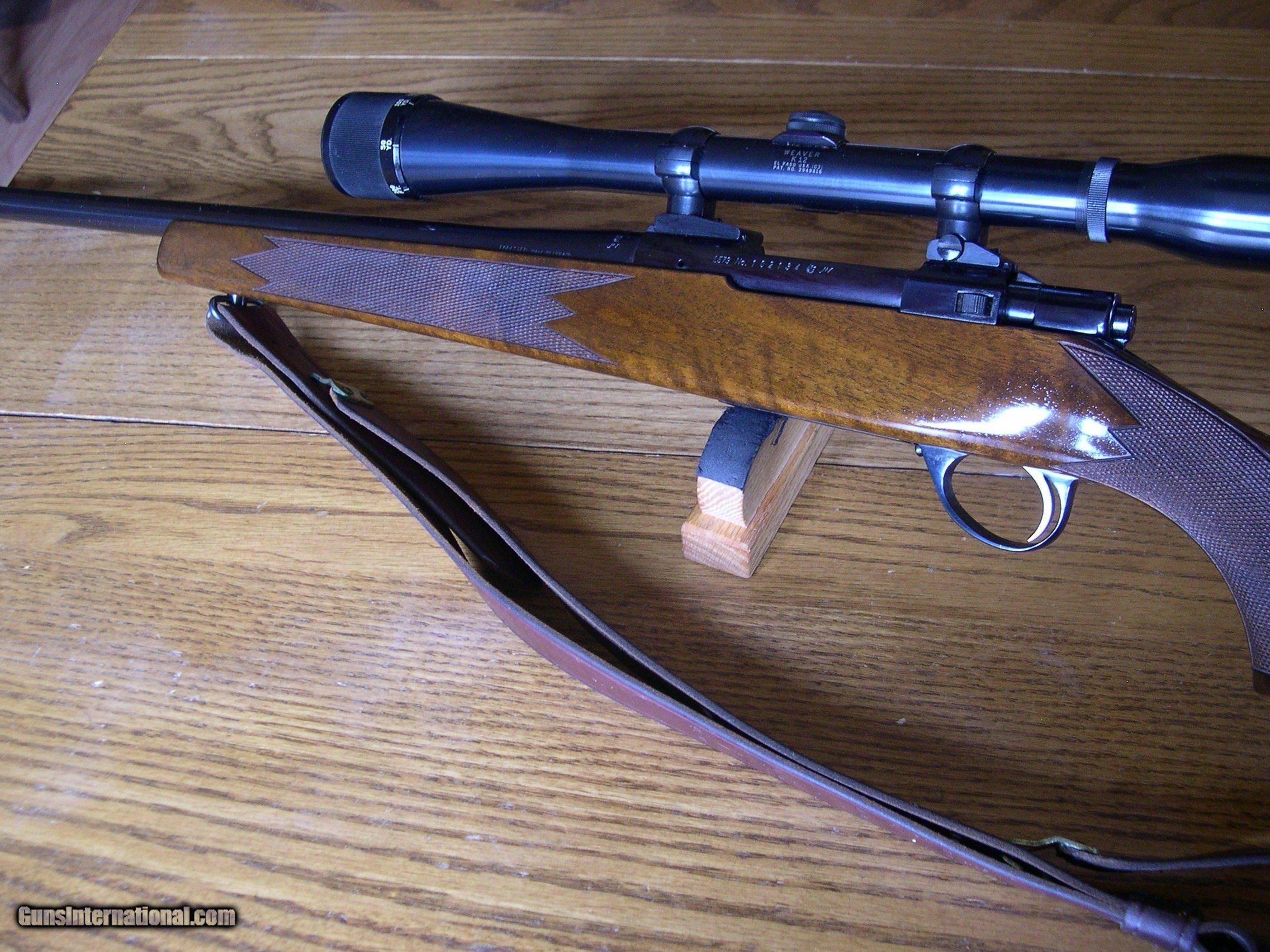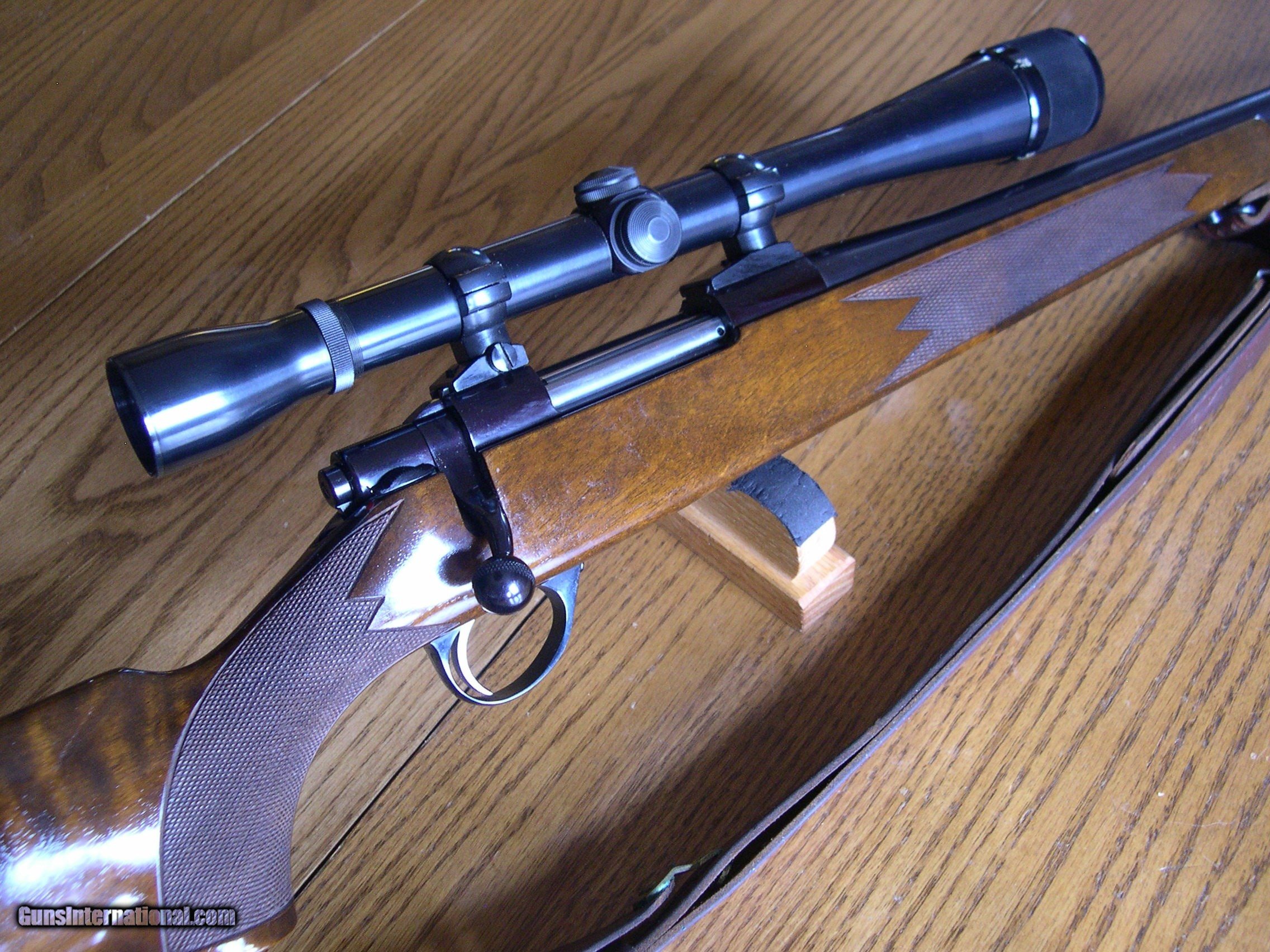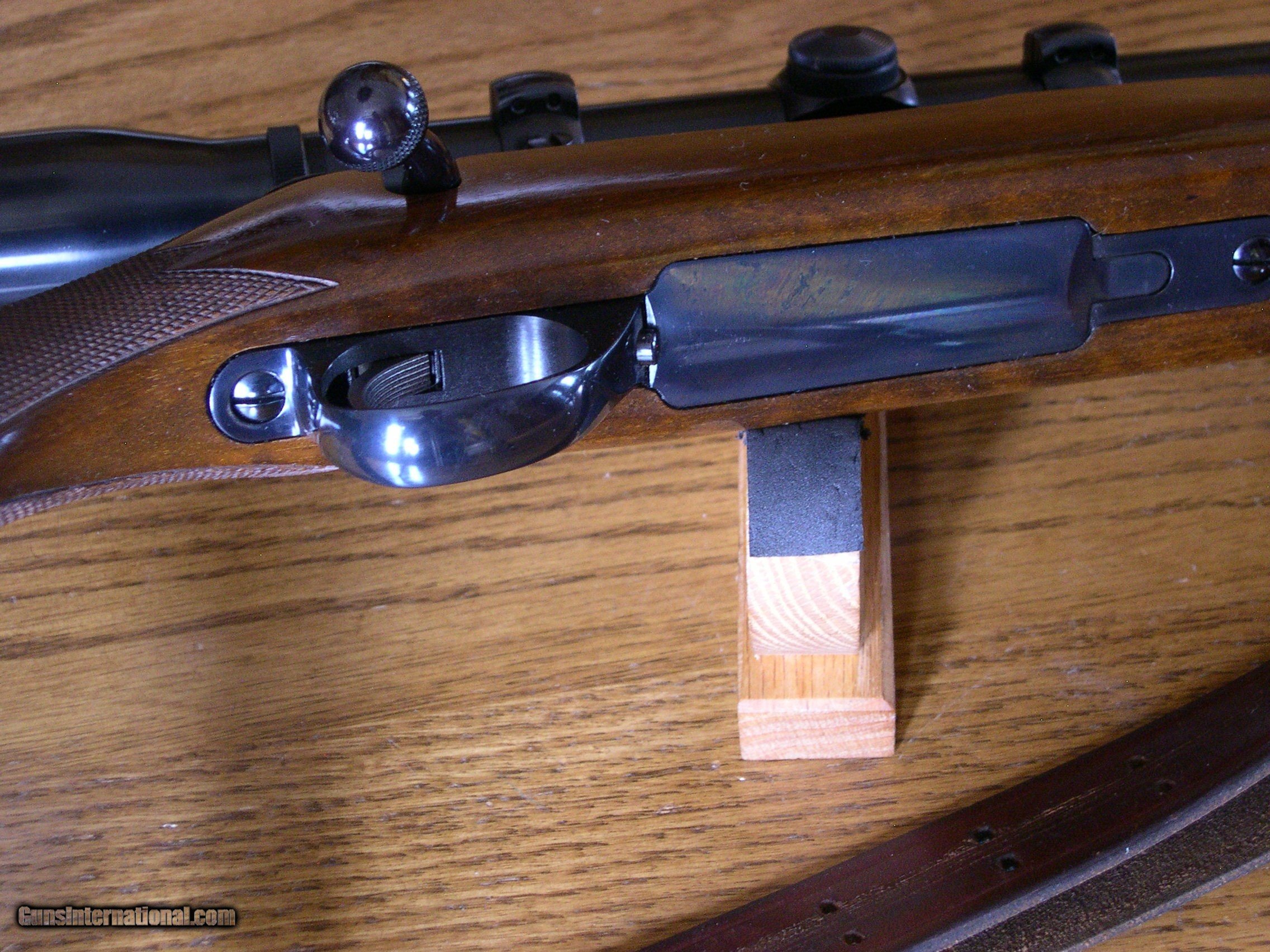 Description: These rifle made 60'S & 70's were super accurate, this on in 22-250 caliber, owner was a member of the "500 club", Had to shoot a groundhog verified at 500 yds and head shots only, this rifle does that !! Has 24" barrel w/ exc Bore, 99.9% orig blue and wood, not a scratch !! Bore is like new, 1/2" MOA shooter, has Weaver K-12 scope, with duplex crosshairs, as good clear as new! A really great Varmint rifle for those long shots for G. hogs or Coyotes !! SOLD |