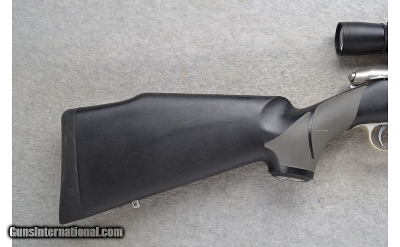 Description: This Sako Model IV is a stainless steel right hand bolt action rifle in .25-06 Rem. Cal. It has a 21 inch fluted barrel. It is outfitted with a Leupold VARI-X III 2.5x8 Scope. No iron sights. The butt stock is a grey rubber grip in black polymer pistol grip with a raised cheekpiece. The forearm is a grey rubber grip in black polymer. .25-06 Remington SOLD Chambers: Right hand bolt action 4 round detachable magazine. Metal Condition: Good. Some very minor surface marks. Bore Condition: Excellent. Barrels: 21 inch fluted stainless steel barrel. Triggers: Grooved. Stock Dimensions: LOP 14 1/8 inches. Fore End: Grey rubber grip in black polymer. Butt Pad: Black rubber recoil pad. Weight: 8 lb. 2 oz. Sights: Leupold VARI-X III 2.5x8 Scope. No iron sights. Item Location: Richfield, WI |