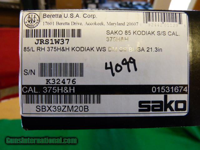 Description: NEW - Sako 85 Kodiak in 375 H&H - VERY quick handling rifle with AWESOME open sights. I like them so much I bought one for myself for my next African Safari! As always, accuracy assured by Sako: all their rifles must shoot 5 shot 1" groups b/4 leaving the factory! We have Sako bases & rings AND are Factory Authorized Sako Select dealers. The FINE print: 1. Shipping: $35 in lower 48 states; AK & HI add $25 (sorry, UPS wacks us good going off the 48...) We usually ship handguns priority mail & long guns UPS ground. We can overnight; ask & we can provide a quote. 2. CA sales ok IF it is on the CA approved list. We are set up to do the CA DOJ paperwork needed to ship. 3. All firearms MUST ship to an FFL or C&R if it is a C&R eligible gun. 4. We take cashiers checks AND Visa, MC, Discover AND American Express with NO surcharge. 5. It is the buyers responsibilty to make sure the item being purchased conforms to their jurisdiction. 6. 3 day non firing inspection; returns paid for by buyer. 7. NH buys can do a direct pick up in our store & save shipping charges. If buying a firearm, a 4473 must be completed. SOLD |
