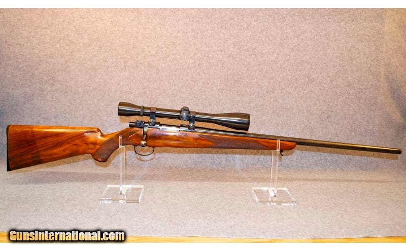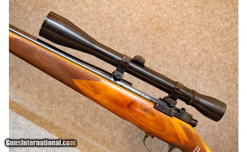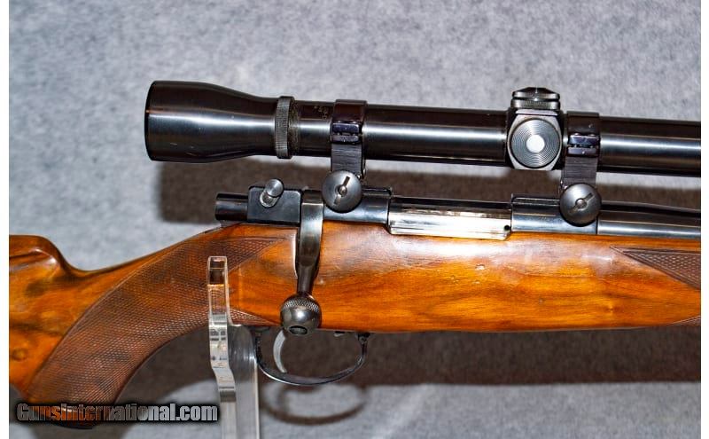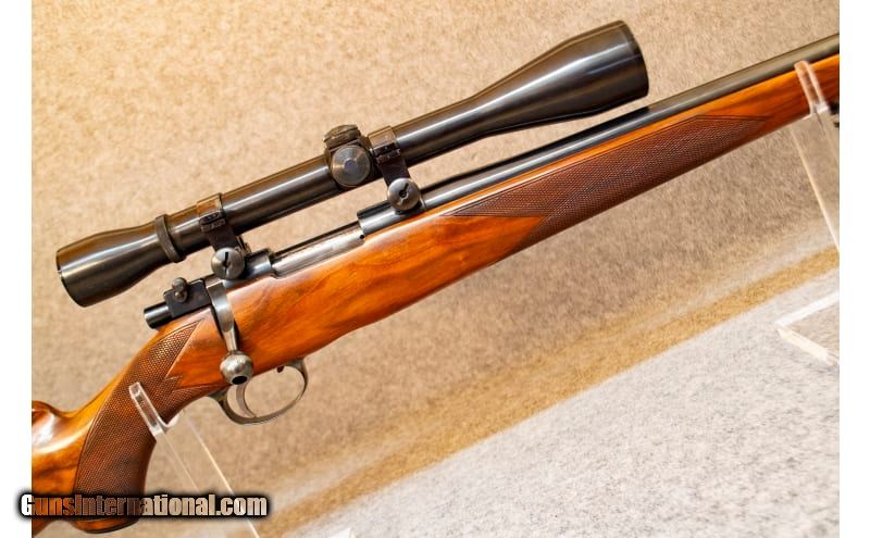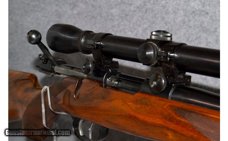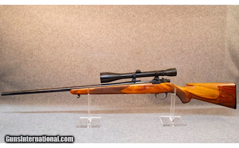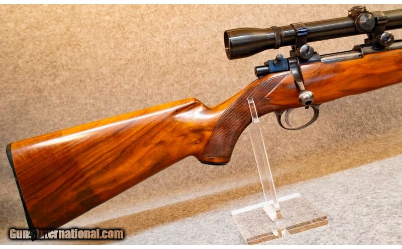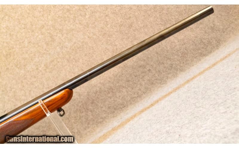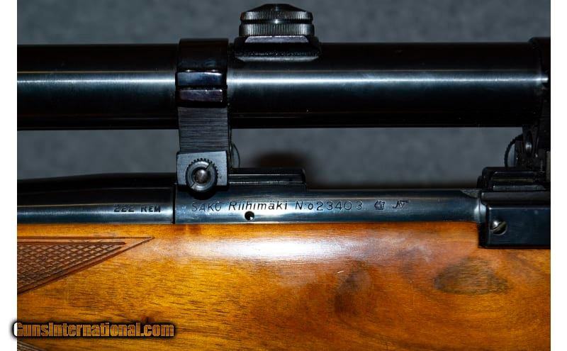 Description: Sako L-46, chambered in .222 Remington. Features include: straight stock, checkered forearm and pistol grip with cap, detachable magazine, 24 inch blued barrel. Weaver scope is mounted currently. Some scuff marks are present on the stock, but these are minor. Buttplate screws are rusted. Rifle is also missing its rear sling swivel. RIFLE DOES NOT HAVE A MAGAZINE WITH IT.+ .222 Remington SOLD Chambers: .222 Remington Metal Condition: Excellent Wood Condition: Excellent Bore Condition: Excellent Barrels: 24' Stock Dimensions: 13.5' Butt Pad: Plastic Weight: 6.0 LBS Sights: Weaver K6 60-C Item Location: Lone Tree, CO |