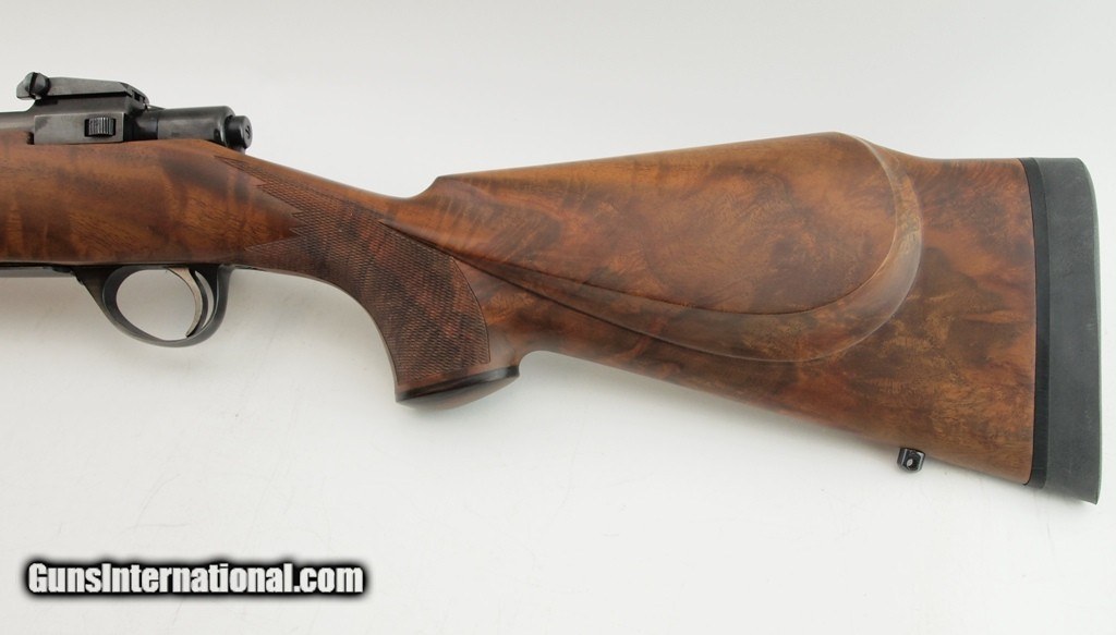 Description: Absolutely Beautiful Sako L16R Custom Stock 7MM REMMAG, 24" bbl, bright shiny bore, good rifling, blued finish, Redfield scope mounts, custom AA/AAA French Walnut grip stock with cheek rest, 22 lines per inch hand checkered, desert ironwood pistol grip cap - forend cap, extremely light handling marks, sling studs, 13.5" LOP, and 1" Pachmayr Decelerator recoil pad. Imported by Garcia Sporting Arms, Wash D.C.. The original grip stock is included. See pictures for an appreciation of this beautiful rifle! Add 3% for Credit Card Shipping $50.00 SOLD |