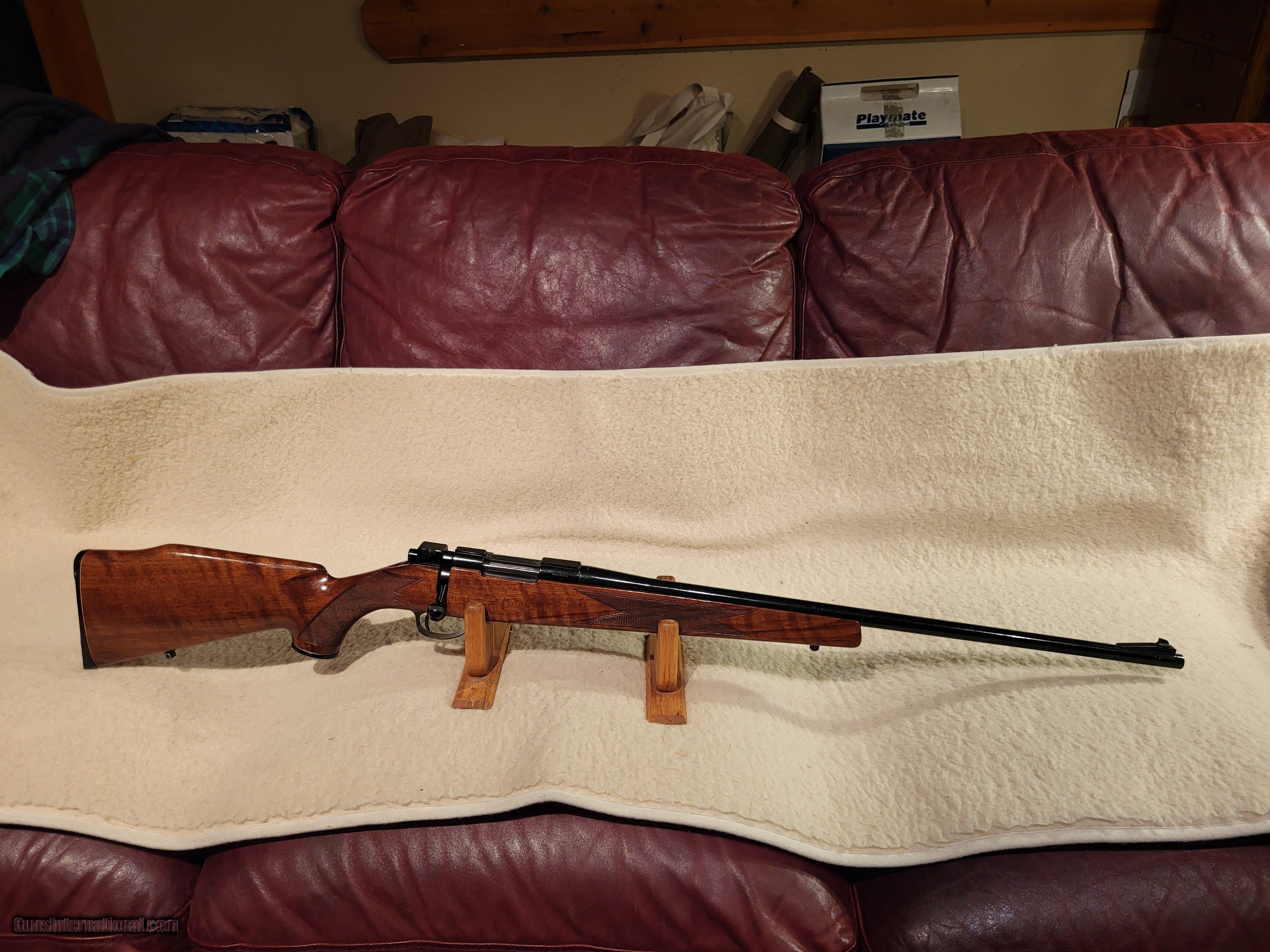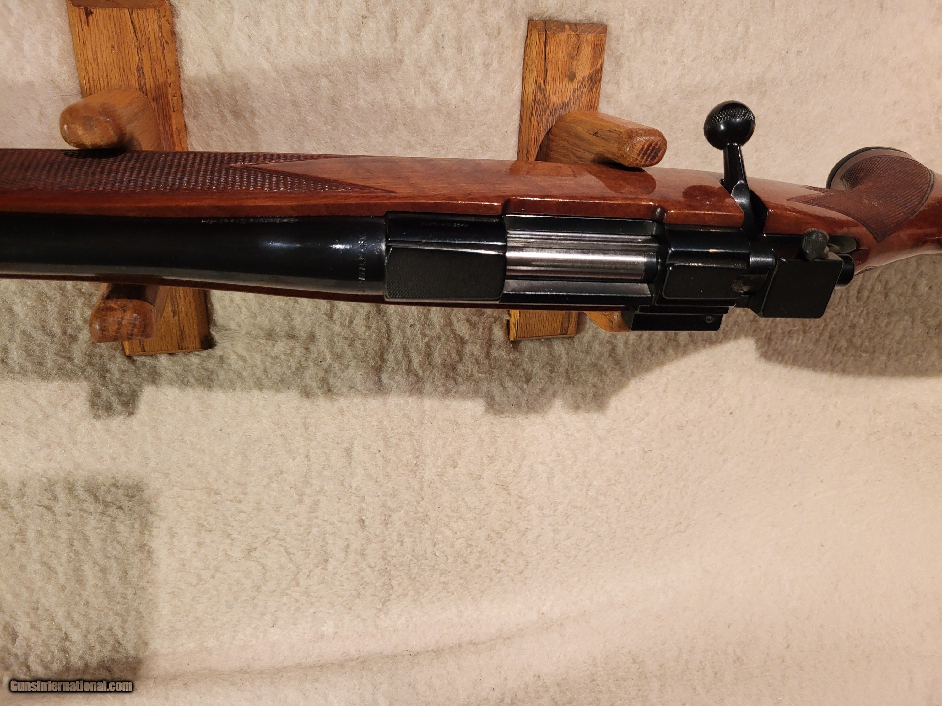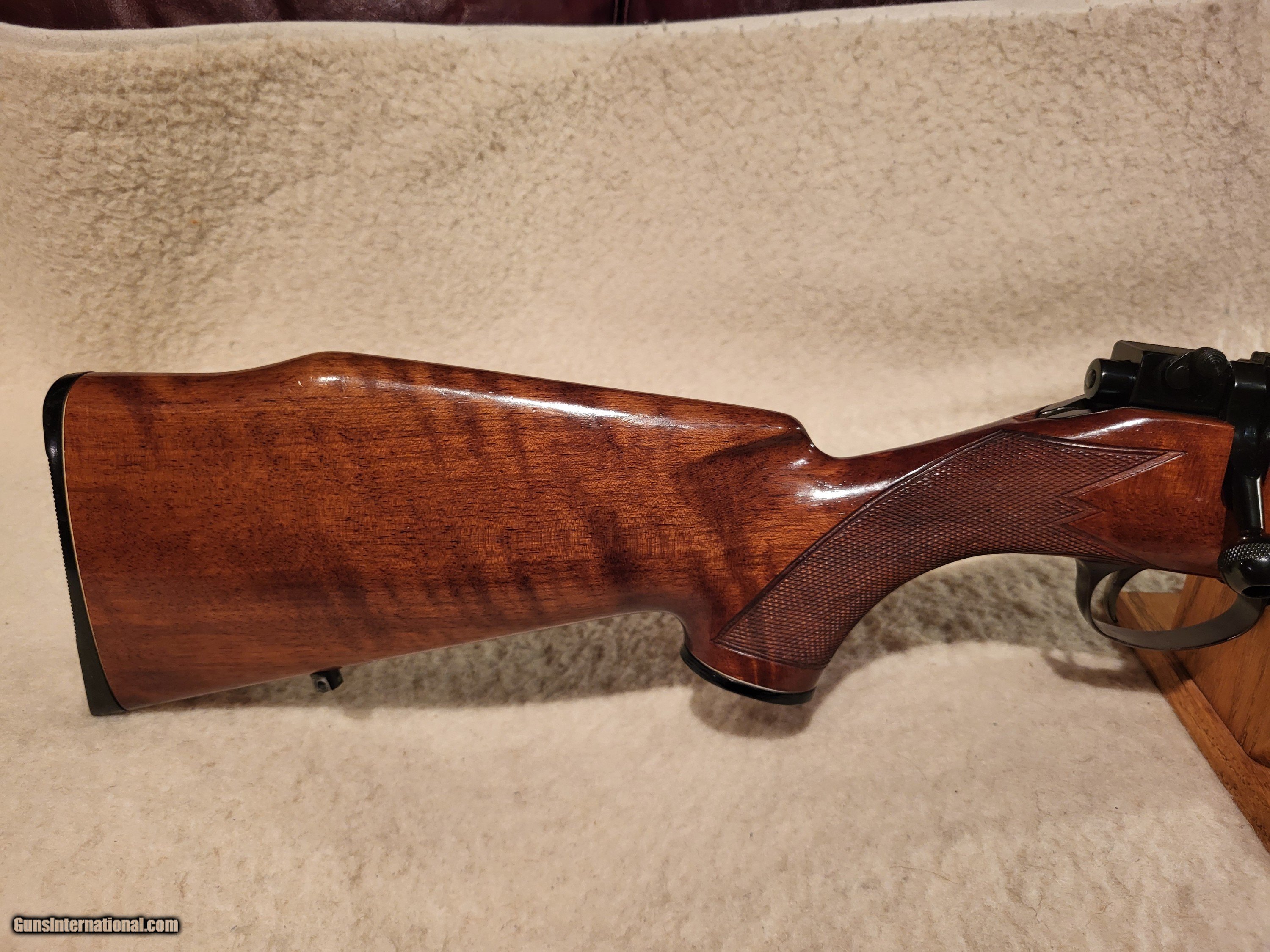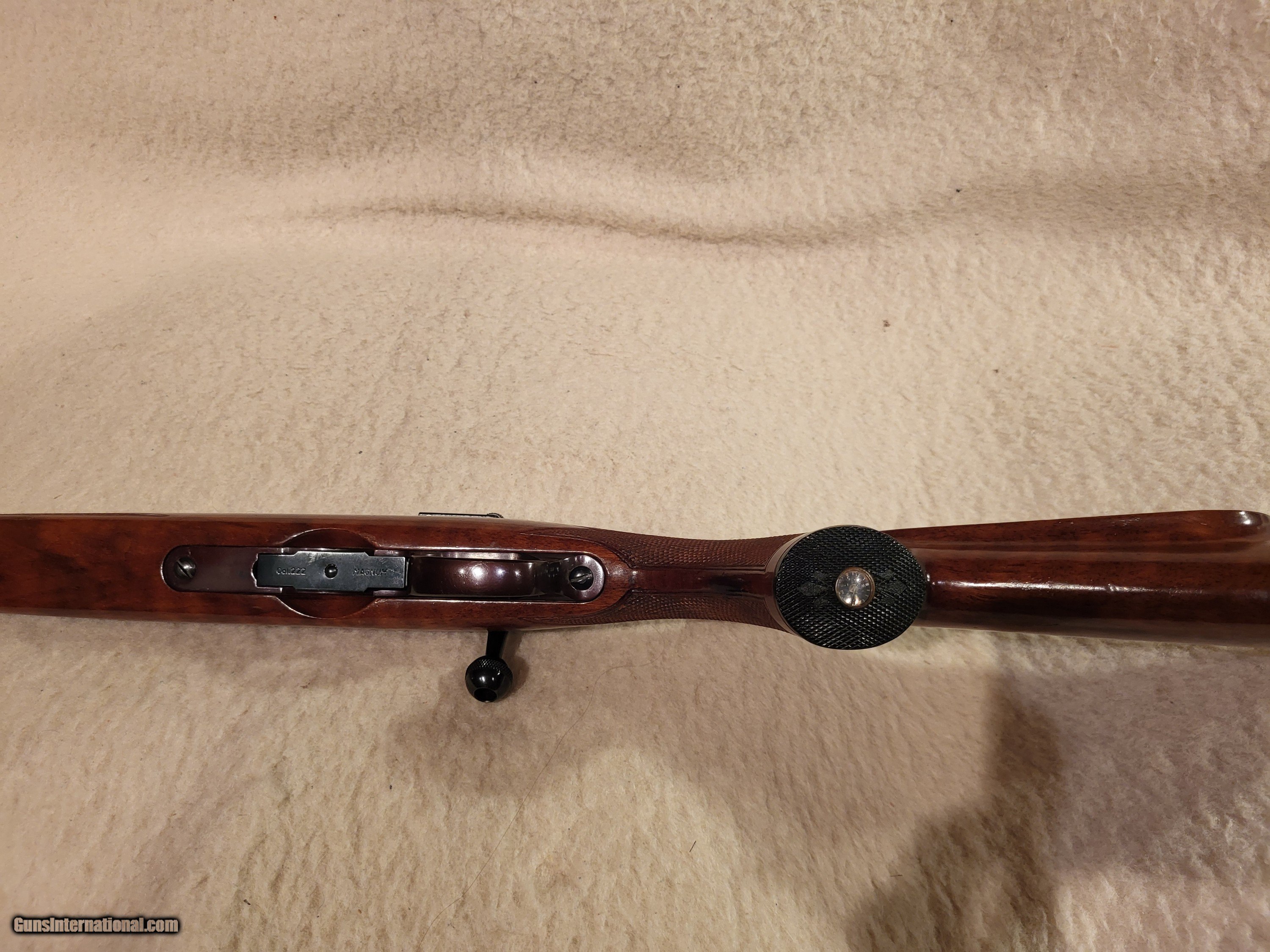 Description: Bofors steel. Upgraded trigger guard. Bolt and action serial numbers match. Knurled bolt knob. Wood stock has scattered minor marks, but nothing offensive. Grip cap has a small compass so you won't get lost in the woods. You will note that there is considerable fiddleback figure on both sides of the stock. Price listed does not include shipping. Please call if interested, I do not respond to email. SOLD Serial Number: 52625 |