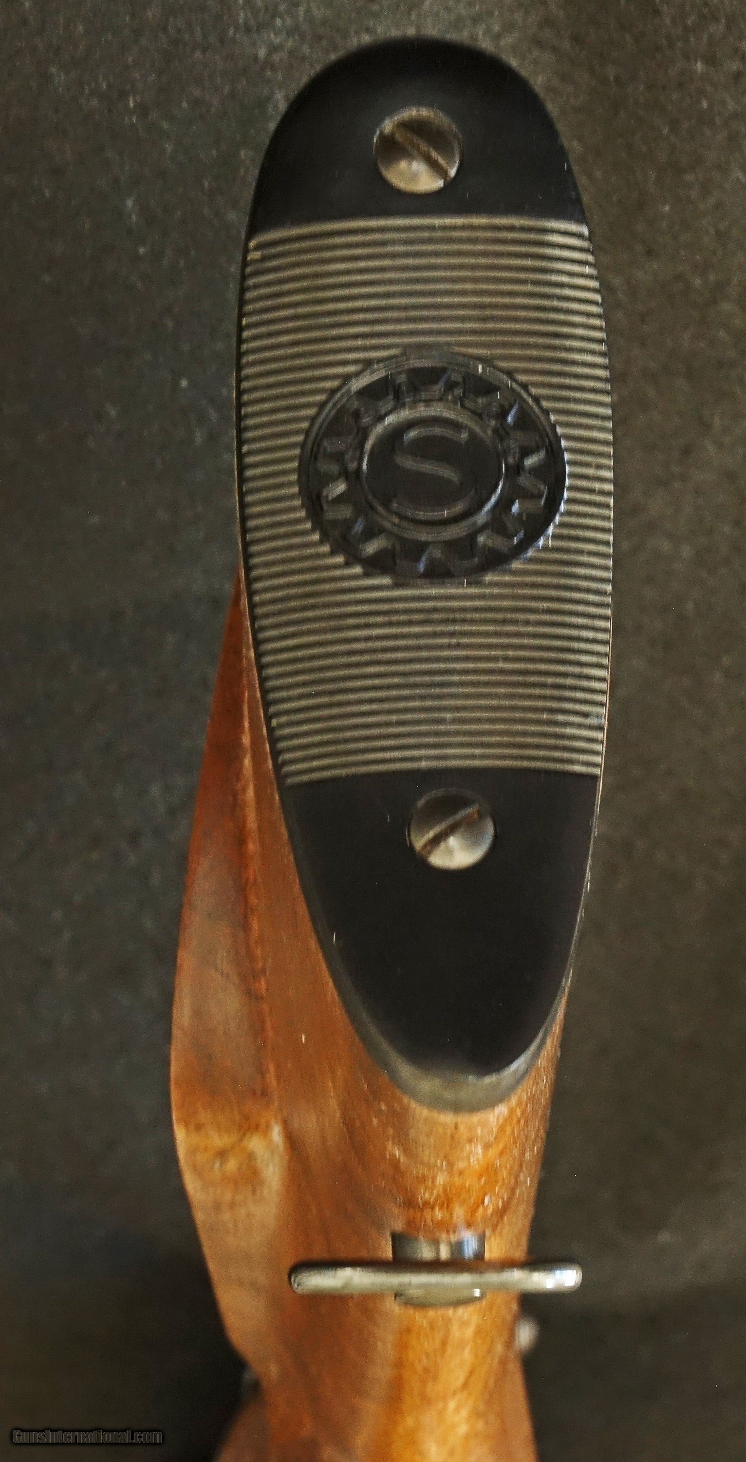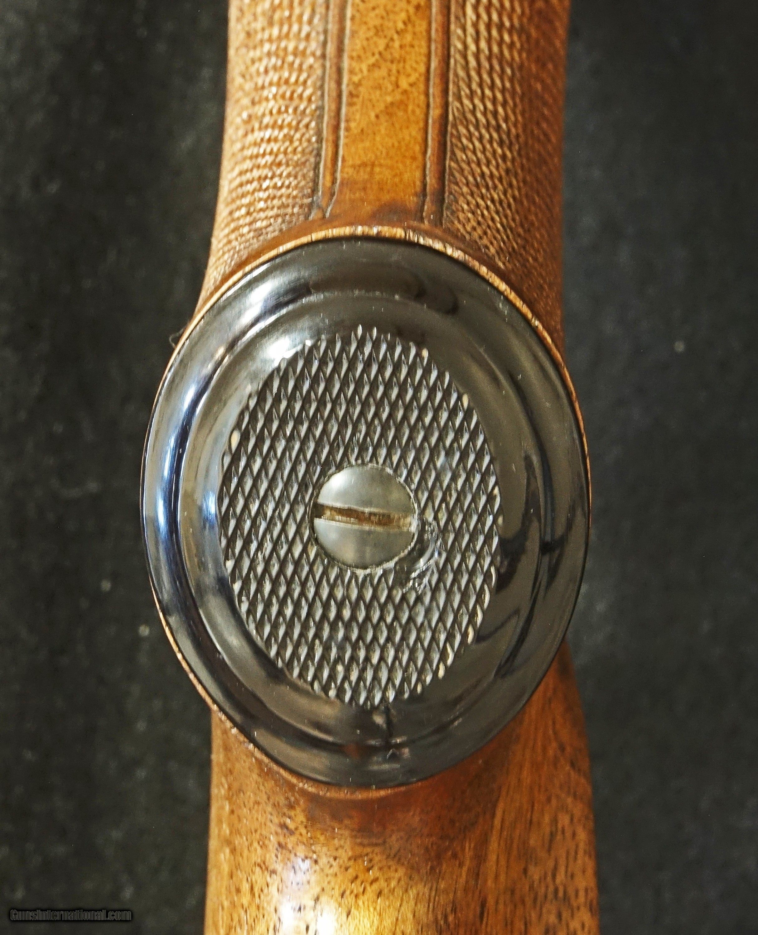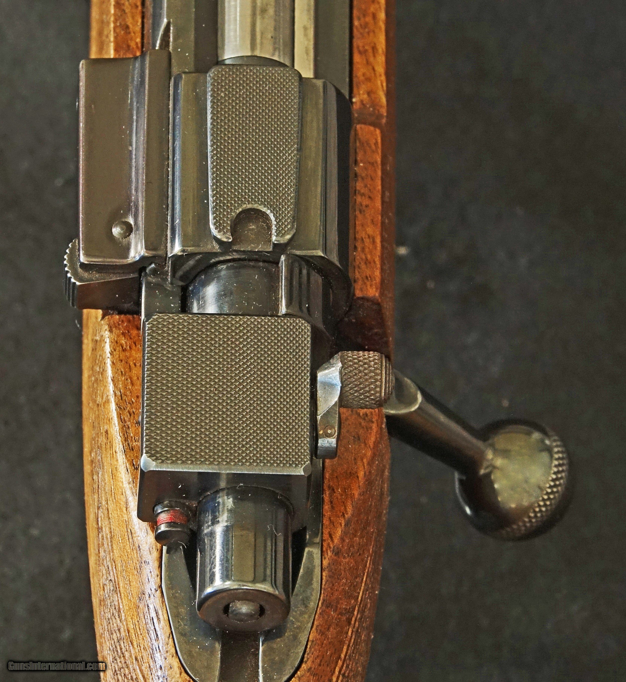 Description: SAKO MANNLICHER L46 - 22 HORNET - MANNLICHER STOCK IS IN ONE PIECE - NOT THE NORMAL SPLICED FOREARM - BASED ON THE SERIAL NUMBER, THIS IS AN EARLY 60'S OR LATE 50'S PRODUCTION. IT HAS A DETACHABLE CLIP - FRONT HOODED SIGHT - PRODUCED WITHOUT A MID BARREL SIGHT - BOFOR STEEL BARREL - CONDITION - SHOWS SOME USE BUT FOR IT'S AGE IN VERY NICE SHAPE - BARREL AND ACTION BETTER THAN 98% - BORE BRIGHT - SOME VERY LIGHT MARKS AROUND SAFETY HOUSING AND TRIGGER PLATE - STOCK, AGAIN VERY NICE , NO MAJOR NICKS - STOCK HAS BEEN REFINISHED AND PRICE ADJUSTED - STILL .A VERY NICE AND SCARCE EARLY SAKO HORNET. SOLD |