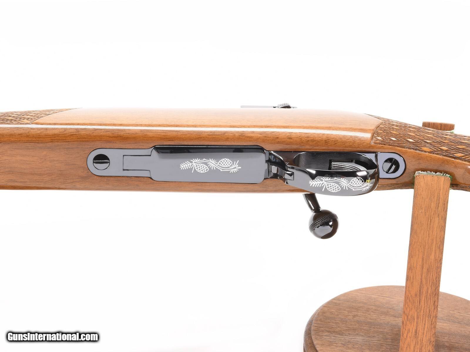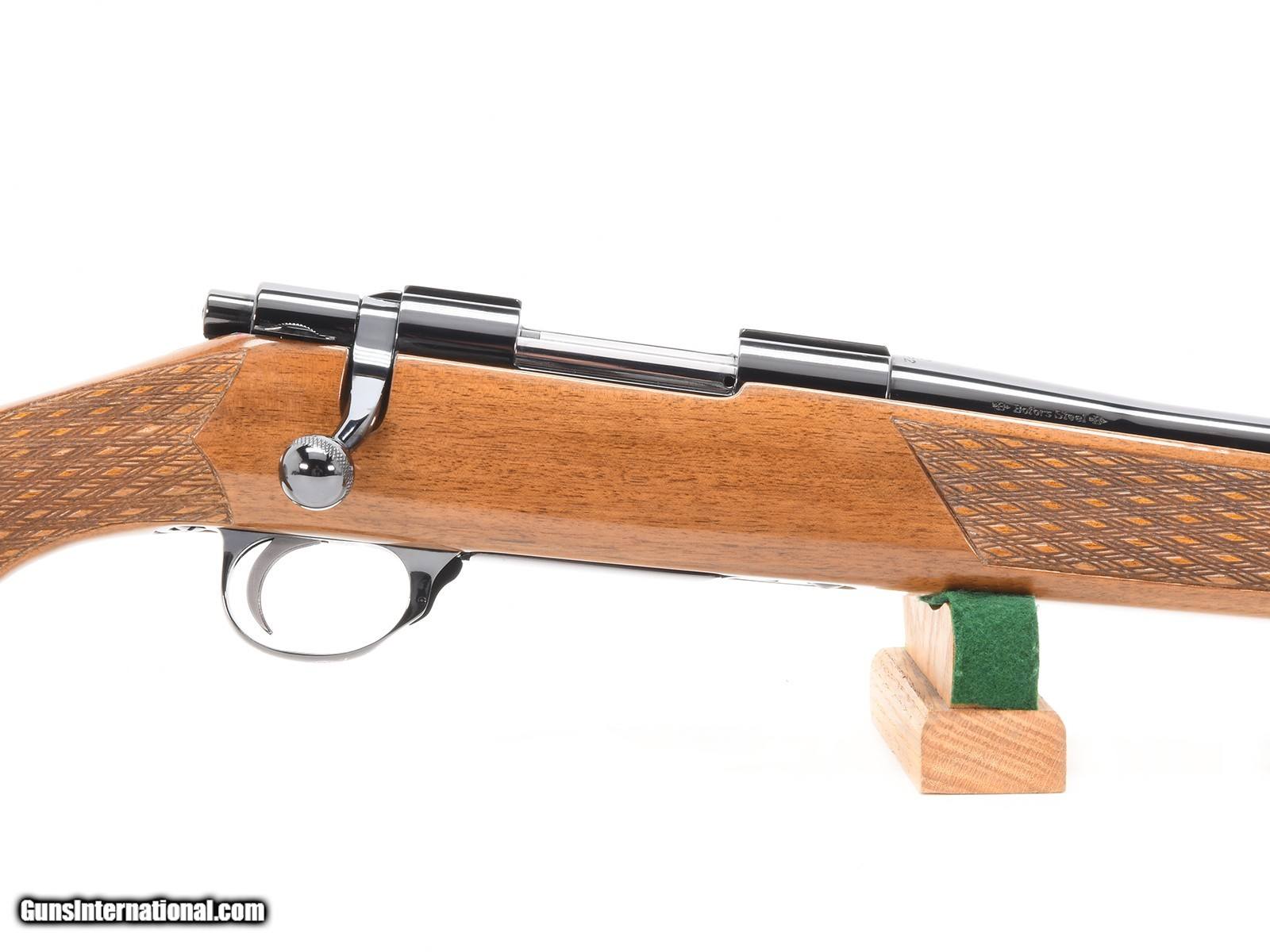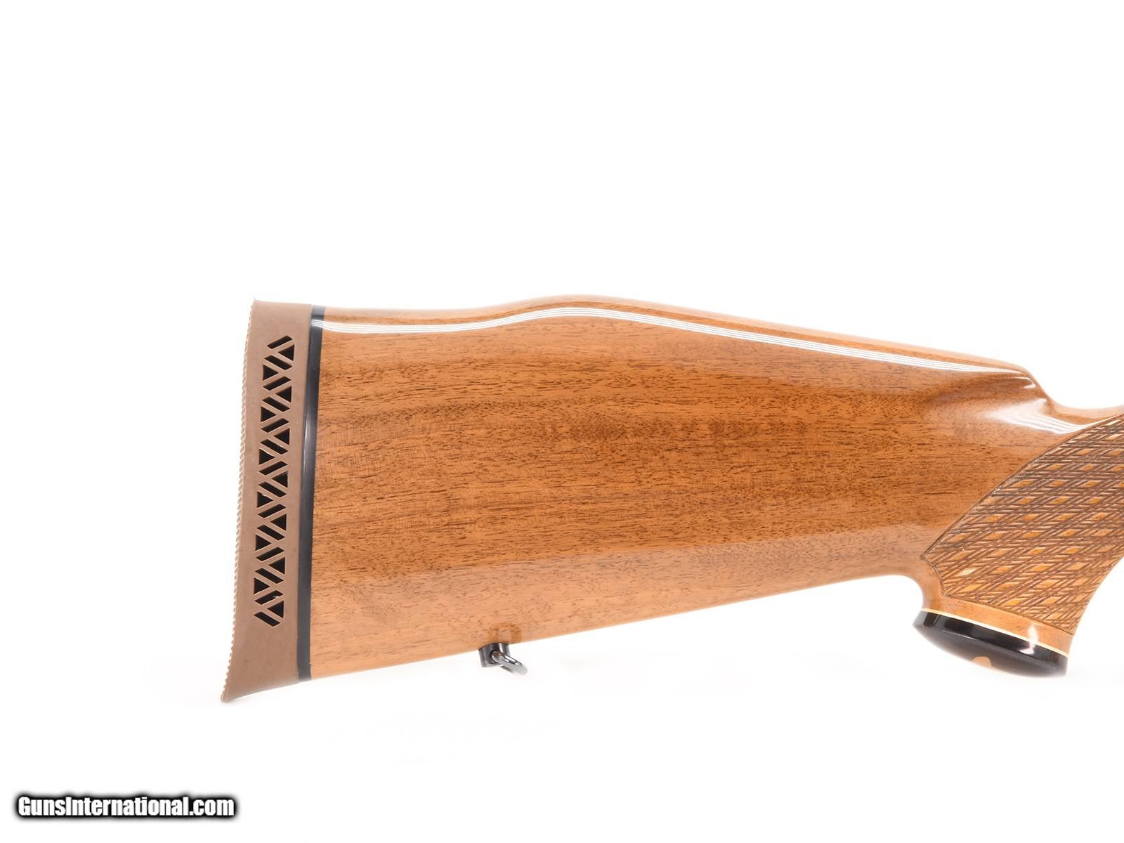Description: This Sako L461 Deluxe .222 Remington Magnum is an outstanding example of Sako’s craftsmanship, featuring the highly sought-after Bofors Steel barrel. Built in Finland during the company’s finest production years, this rifle represents the perfect balance of form, function, and workmanship. The Deluxe variant features a beautifully figured walnut stock with Sako’s signature high-gloss finish, detailed checkering, and contrasting rosewood fore-end tip and grip cap. Every element reflects the care and precision of Sako’s traditional hand-finishing methods. The rifle remains in pristine condition, showing little to no evidence of use. The metal retains its deep, polished blue finish, and the Bofors Steel stamping remains sharp and clear. The bore is mirror-bright, and the action operates smoothly with the precision that has made the L461 action legendary among shooters and collectors. This is a opportunity to acquire a collector-grade Sako L461 Deluxe in one of the most desirable configurations. Perfect for the enthusiast seeking an early, Bofors-marked example in exceptional original condition. Characteristics: