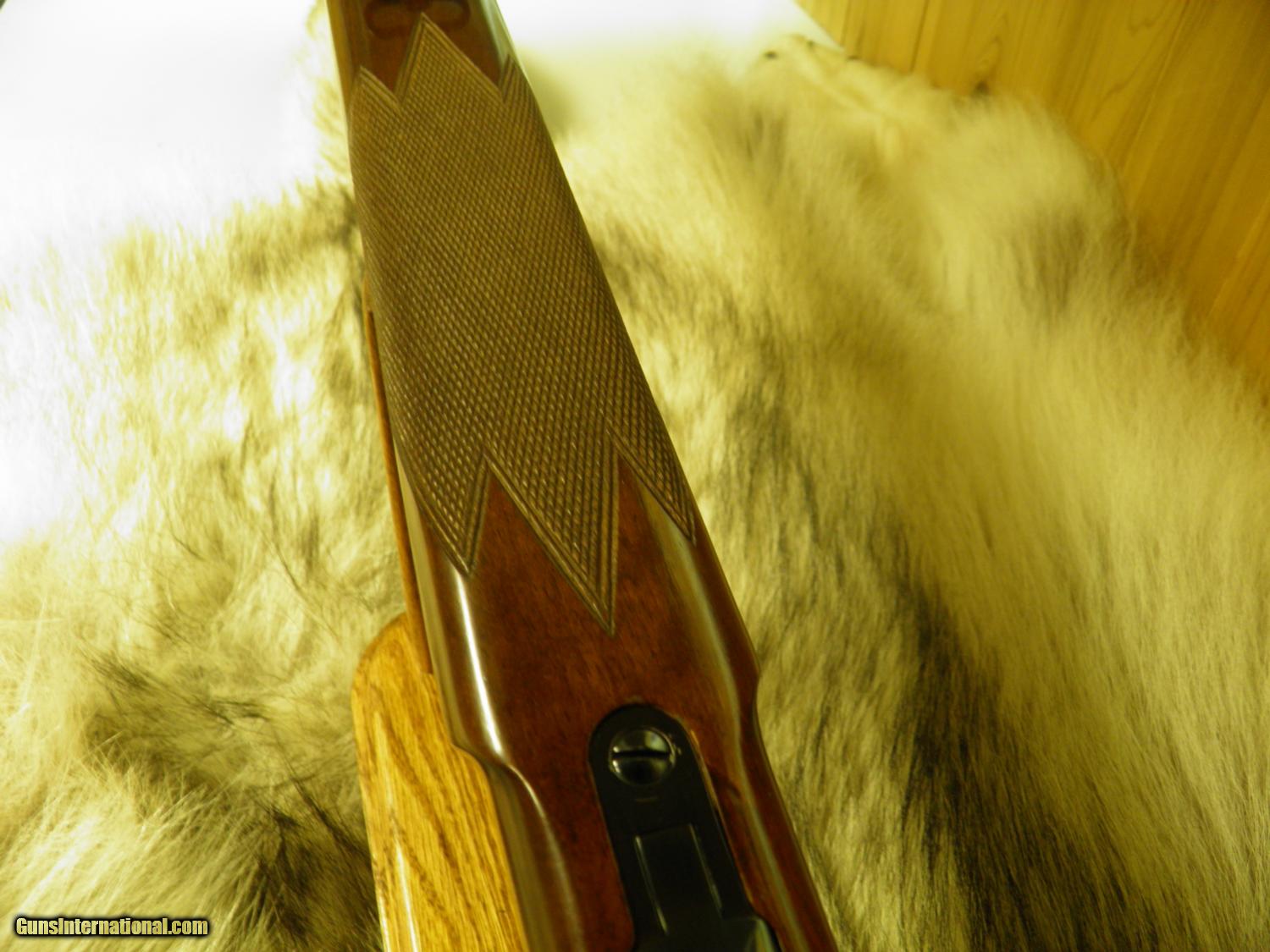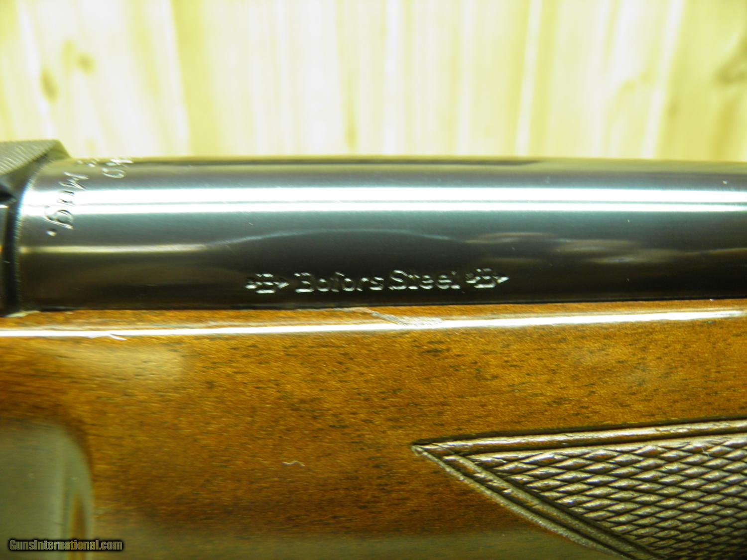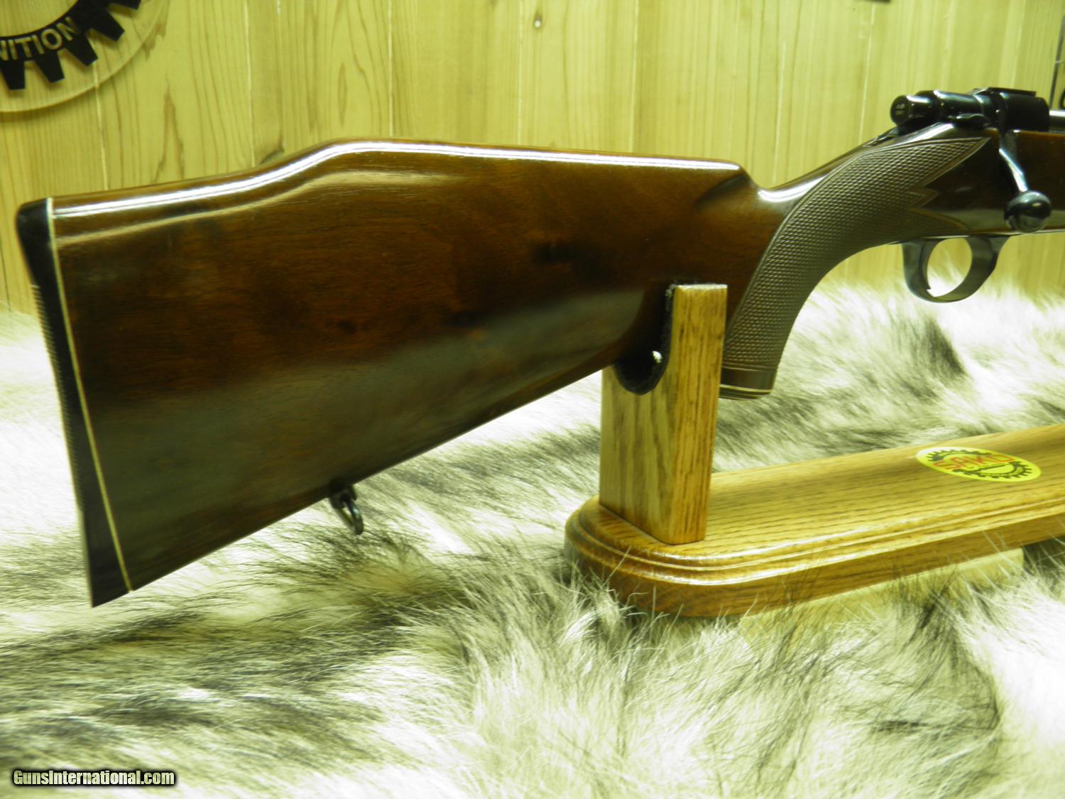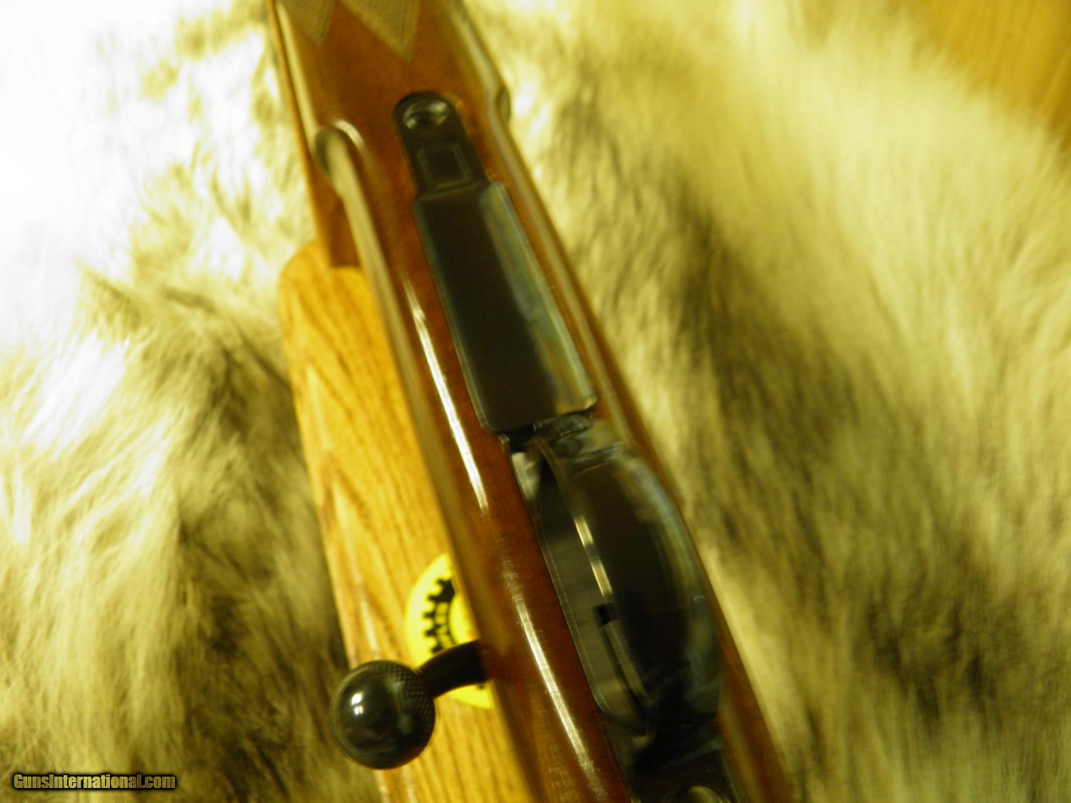 Description: SAKO L461 VIXEN CAL: 222 REMINGTON MAGNUM HEAVY BARREL MAF: 1964, BARREL LENGTH 23 1/2" WITH A 1 - 14" TWIST, BARREL STAMPED "BOFORS STEEL", APPROX: 8 1/4 LBS, OVERALL LENGTH 42 1/2", LENGTH OF PULL 13 1/2", MAGAZINE CAPACITY 5 ROUNDS, CRISP TRIGGER THATS ADJUSTABLE DOWN TO 2 1/2 LBS, RECEIVER HAS DOVETAIL INTEGRAL RAIL MOUNTS FOR SCOPE RING MOUNTING, STEEL TRIGGER GUARD WITH HINDGED FLOOR-PLATE FOR QUICK UNLOADING, PISTOL GRIP EUROPEAN WALNUT STOCK, WITH MONTE-CARLO COMB WITH CHEECK-PIECE, WIDE BEAVERTAIL FOREND, HAND CHECKERED AND RICHLY FINISHED WOOD WITH ATTACHED SWIVELS, BOLT BODY AND BOLT GUIDE ARE HIGHLY POLISHED FOR SMOOTH AND EASE OPERATION. "CONDITION" BLUE 98.5%++, WOOD 98%++, A FEW VERY SMALL HANDLING MARKS, BORE BRIGHT AND CLEAN WITH SHARP PRONOUNCED RIFLING, RIFLE WAS VERY WELL MAINTAINED!!! SOLD |