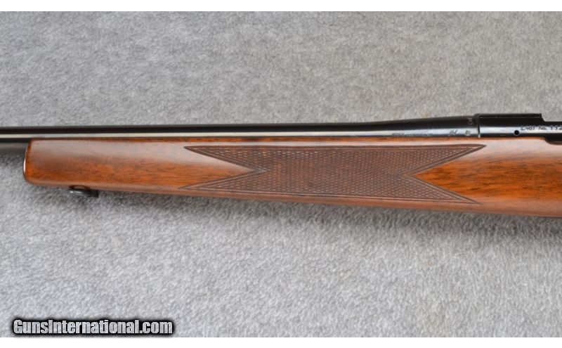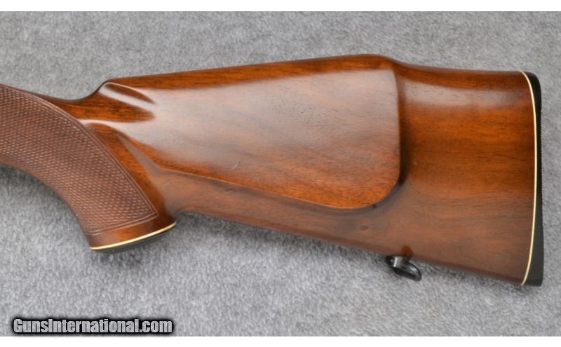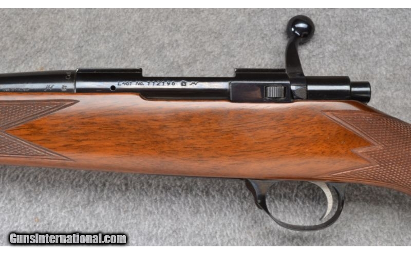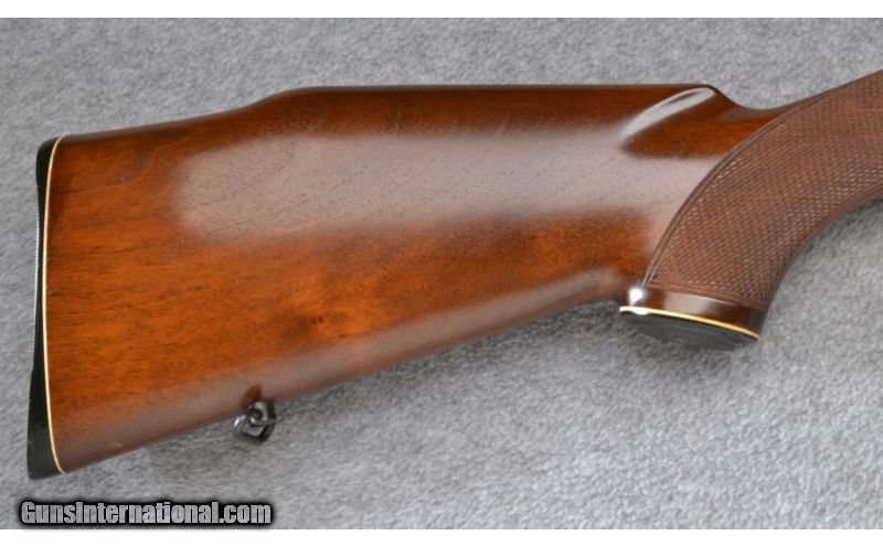 Description: Wood shows a few light use/storage marks. Blue and bore are excellent throughout. Front sight blade and sight hood are missing. Earlier "Pre-Garcia" model. SOLD Manufacturer: S/N 112XXX Caliber Info: .22 Rem. Mag. Metal Condition: Excellent Wood Condition: Very Good Bore Condition: Excellent Barrels: 23 1/2" "Bofors" Marker Triggers: Factory Stock: Checkered Walnut Pistol Grip with Black Cap Stock Dimensions: 13 5/8" LOP Fore End: Checkered Walnut Butt Pad: Black Plastic Weight: 6 1/4 LB Sights: Front Bead & Hood Missing Item Location: Wheeling, WV |