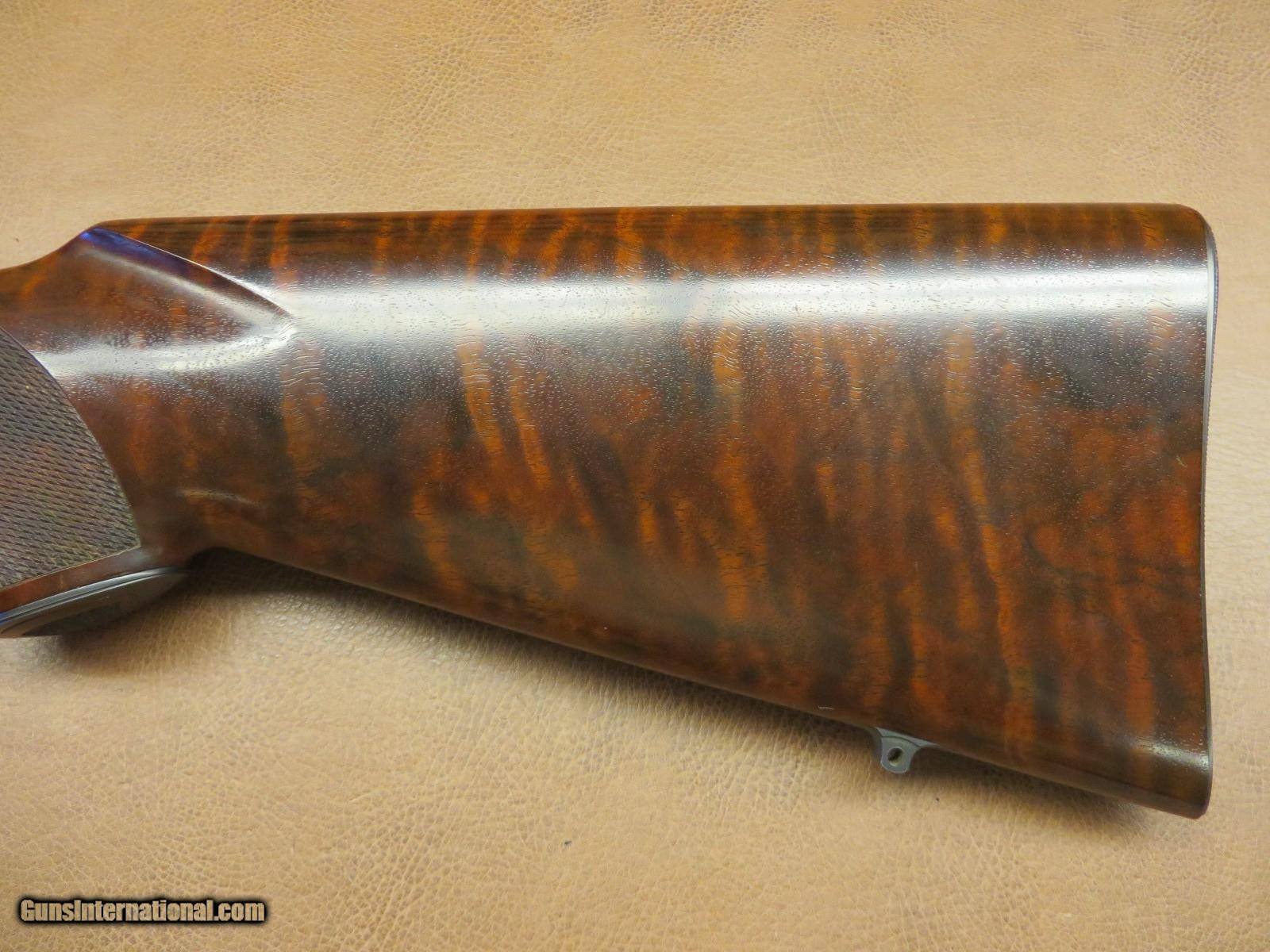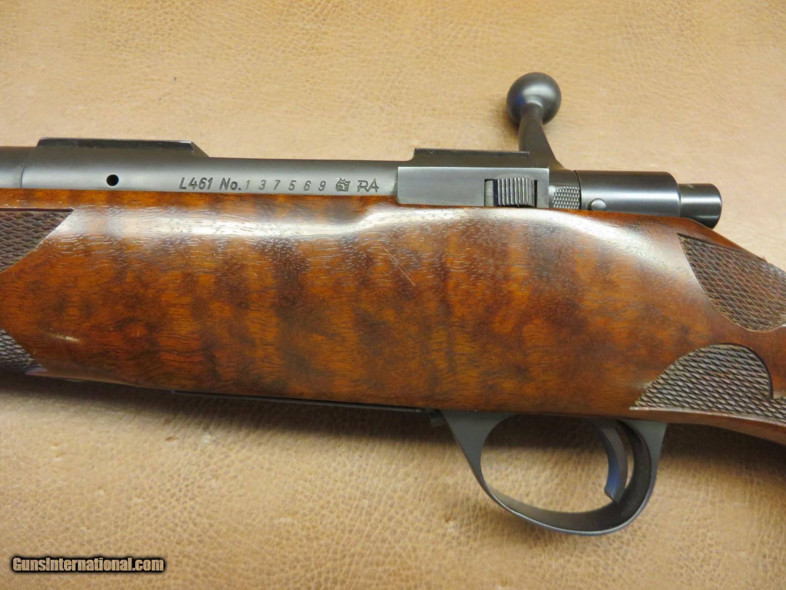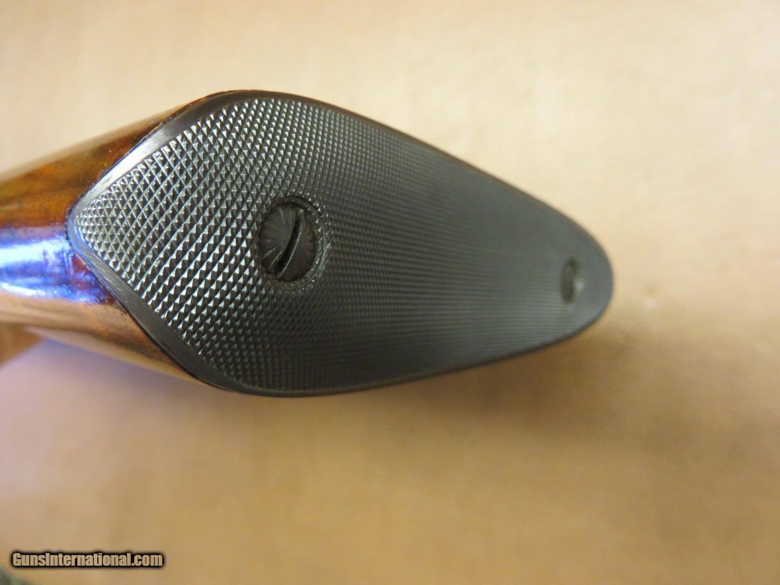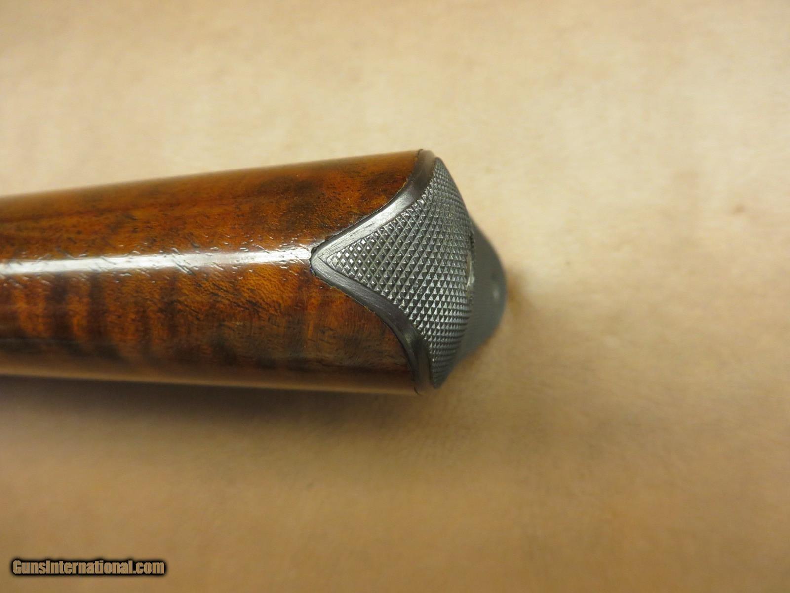 Description: .223 Remington has 23 1/2 inch barrel and dovetailed receiver for scope mounting. Serial number 137xxx. Reblued with a satin finish. Highly figured checkered walnut custom stock has inlet sling swivel studs, steel skeleton pistol grip cap, and checkered steel butt plate. All in excellent condition. SOLD |