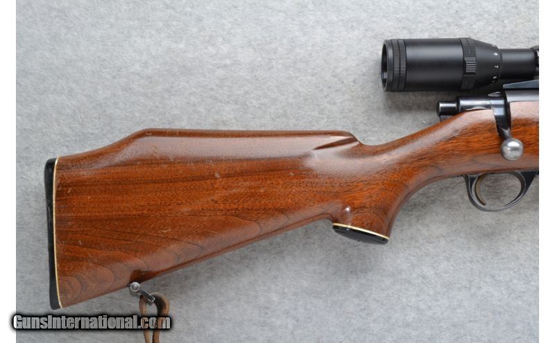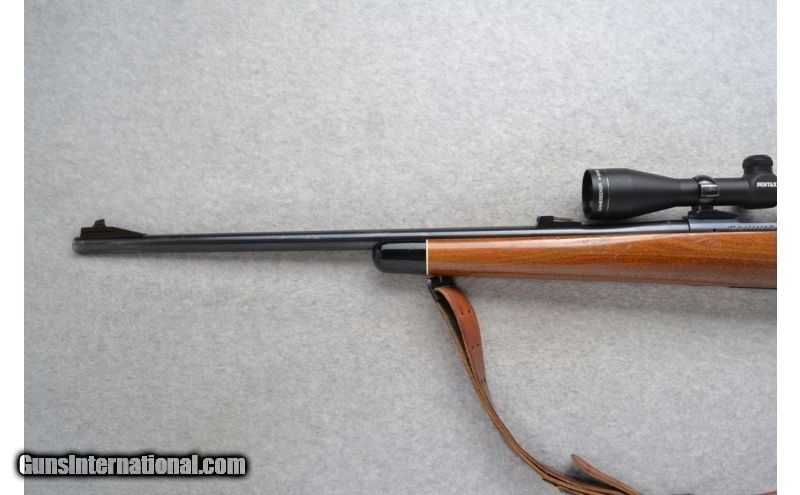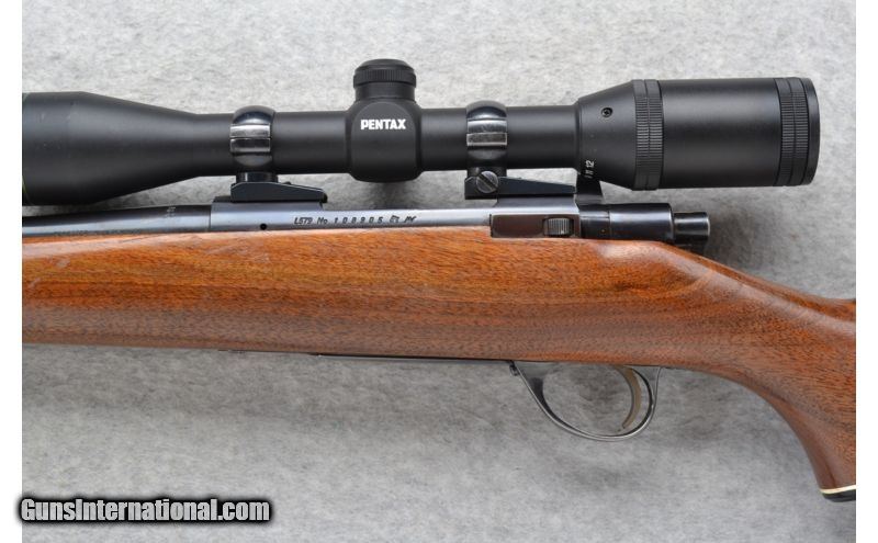 Description: This Sako Model L579 Forester is a right hand bolt action that comes in .243 Win. Cal. It is outfitted with a Pentax 4-12x40 Scope and has a front blade sight. This gun is in overall good condition but does have the appearance of having been used some. SOLD Caliber Info: .243 Win. Chambers: Hinged floorplate. Metal Condition: Good. Shows some light wear, use and handling marks. Wood Condition: Good with multiple handling marks. Light wear. Bore Condition: Very good. Barrels: 23 inches. Triggers: Grooved. Stock: Smooth grip walnut pistol grip with a raised cheekpiece and black cap. Stock Dimensions: LOP 13 5/8 inches. Fore End: Smooth grip walnut with a black tip. Butt Pad: Horizontal grooved black plate. Weight: 9 lbs. 1 oz. with scope attached. Sights: Pentax Gameseeker 4-12x40 Scope. Raised blade front. Extras: Leather Sling. Item Location: Richfield, WI |