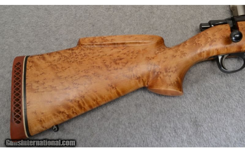 Description: SOLD Caliber Info: 6MM REM Metal Condition: Finish strong on action, thin on barrel. Wood Condition: Light handling and use marks with a crack at the wrist (difficult to photograph). Bore Condition: Strong Rifling. Barrels: 24 Stock: Birds Eye Maple. Weight: 8.6 LB Item Location: Mitchell, SD |