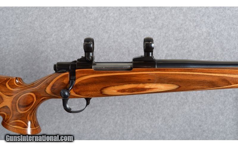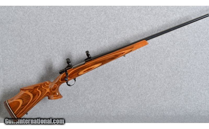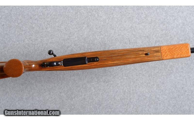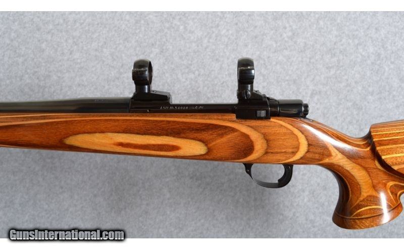 Description: Sako Model L579 Custom Varmint Rifle in .22-250 Remington. Features a 26" medium weighed barrel and a custom laminated varmint stock with roll-over cheekpiece, palm swell, wide/flat bottom forend with forend tip and grip cap. The laminates are of 1/8" width dark wood and 1/32" width of light wood, making for a striking laminated stock compared to most modern factory laminate stocks today. The stock really stands out amongst the crowd! SOLD Manufacturer: Action manufactured from the early 1960s to 1971. Where the stock design speaks to the 1960s and early to mid. 1970s. Caliber Info: .22-250 Remington. Metal Condition: Very good condition, with a small few tiny marks. Wood Condition: Very good with just a few small marks. There is some edge nicks on the front end of the grip cap. Bore Condition: Very good bore. Barrels: 26" Custom barrel of unknown manufacture. Triggers: Appears to be Sako trigger with a wide trigger shoe attached. Stock: Custom laminated varmint stock. Stock Dimensions: 13 1/4" Length of pull. Fore End: Wide flat bottom forend. Butt Pad: Pachmayr White Line recoil pad. Weight: 9 Lbs. 14 Oz. Sights: Redfield rings on unmarked bases fitted to the Sako integral wedged bases. Item Location: Boise, ID |